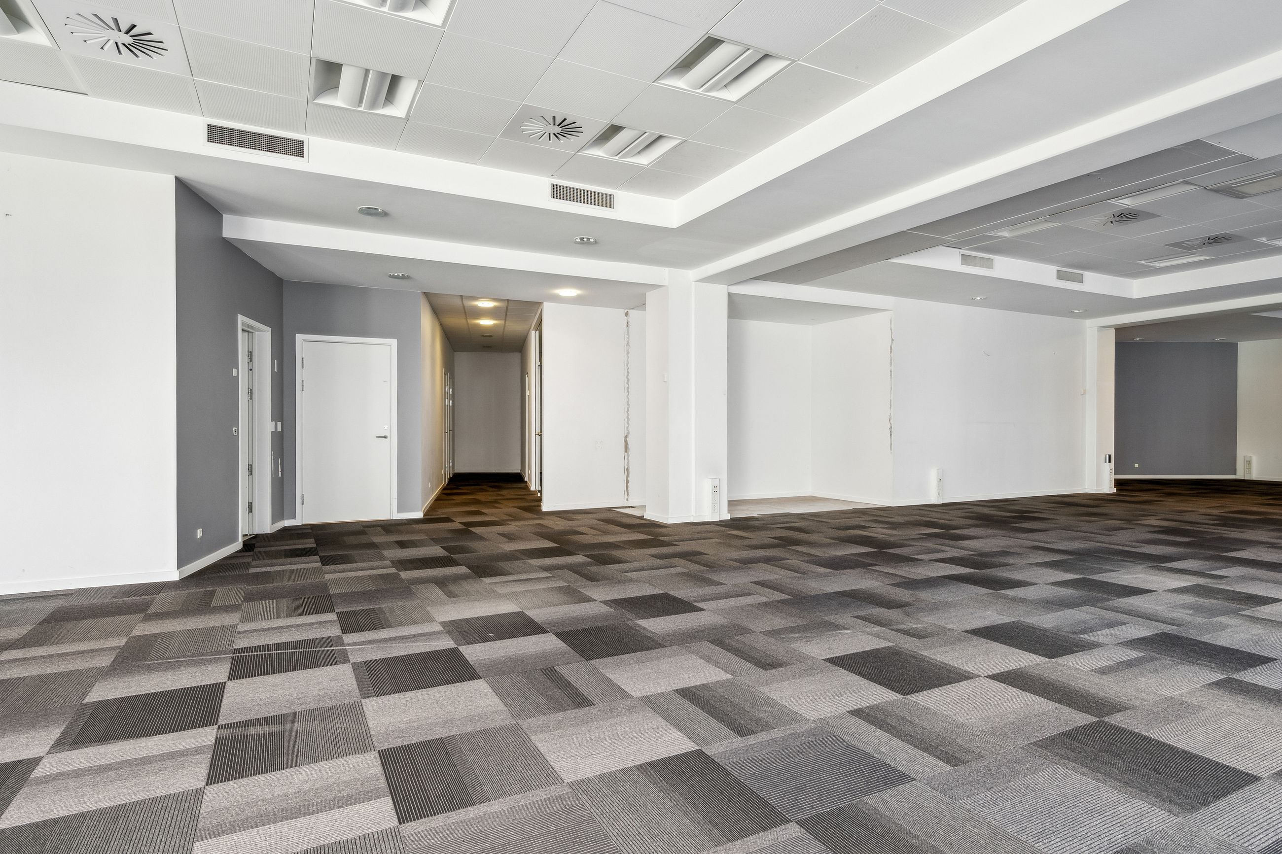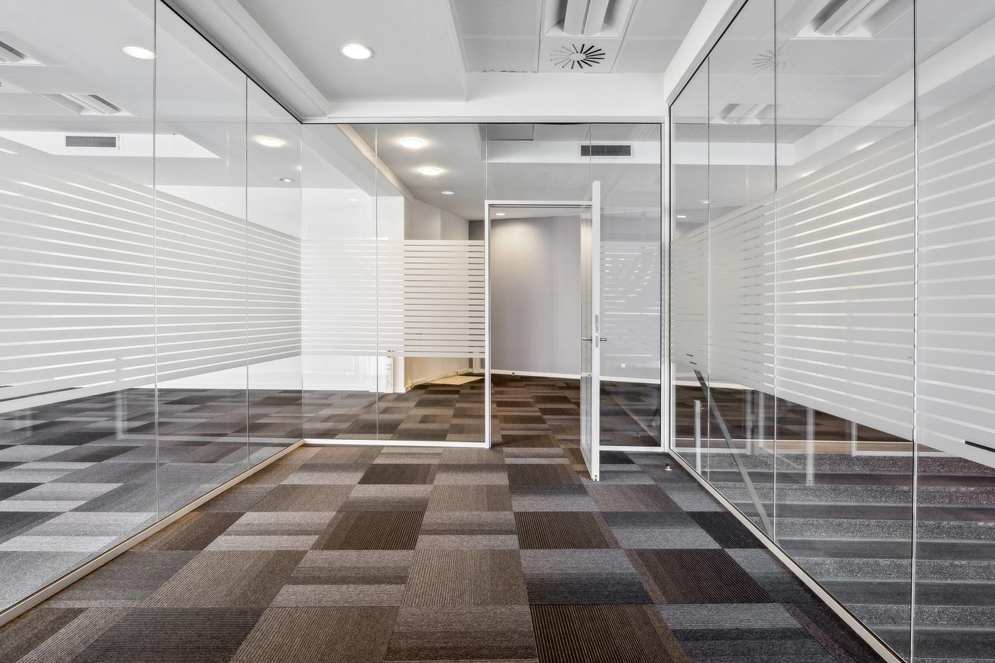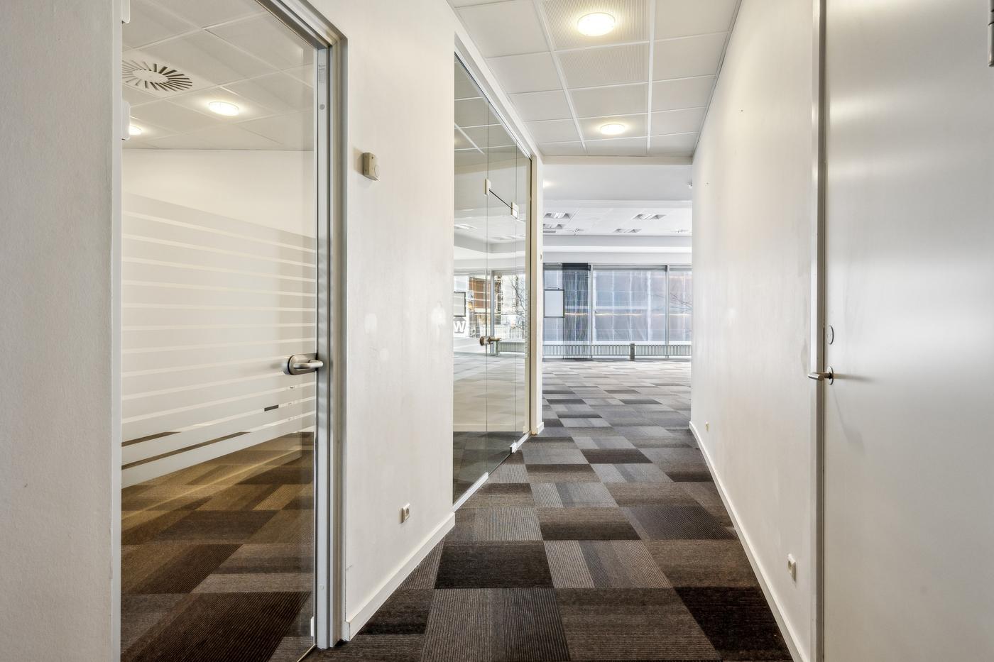 Indretningen rummer en god og effektiv balance mellem åbent storrumskontor og separate mødelokaler, som giver fleksibilitet i den daglige arbejdsgang. Dertil kommer en privat kantine, arkivrum og toiletfaciliteter.