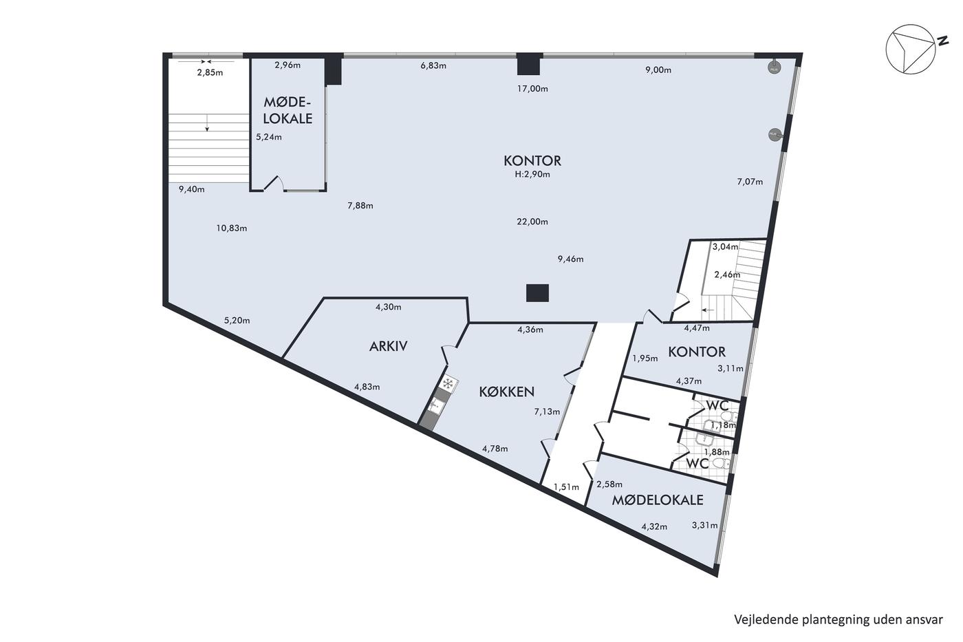 Kan anvendes til kontor, showroom, klinik eller lign.