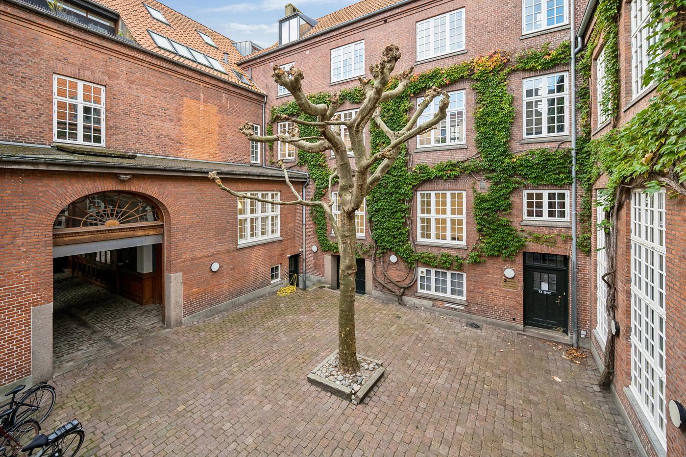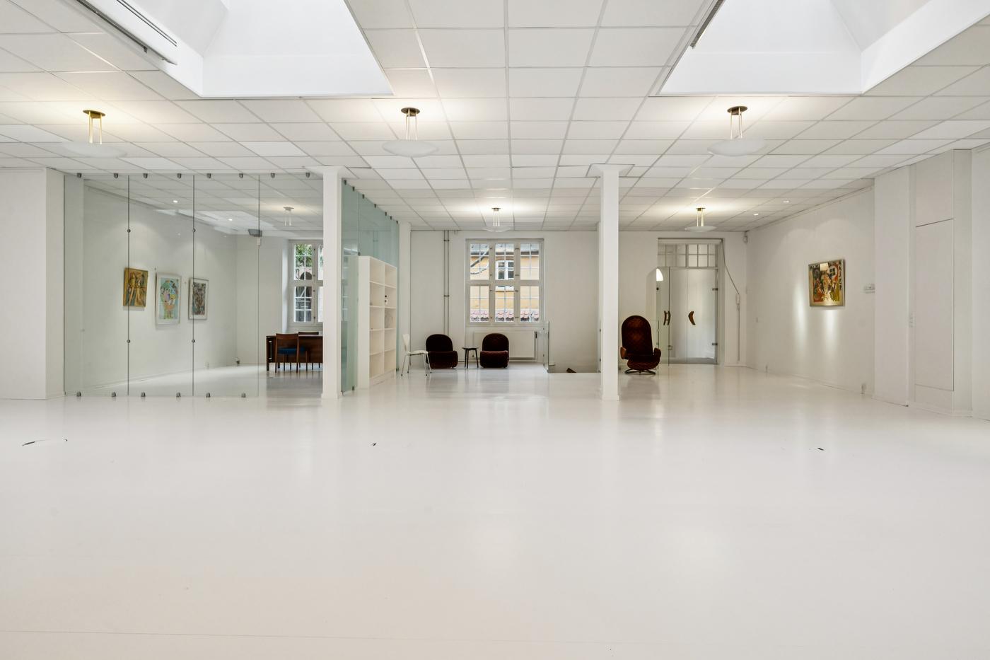 Beliggende i en historisk ejendom, der tidligere husede Jyllands Posten før udflytningen til Viby, finder man kvadratmeterne fordelt på i alt 245 rummelige kvm. Her får man muligheden for at drage nytte af ejendommens svundne dage samtidigt med, at man kan skabe sin helt egen historie. Du træder ind i lokalerne gennem et eget indgangsparti fra en smuk port. Det første, du møder, er lokalernes unikke lysindfald. Store vinduespartier modtager dagslyset fra den brostensbelagte gård, der omkranses af ejendommens historiske bygninger. Hertil kommer centralt placerede ovenlysvinduer, der fylder rummet med et naturligt og behageligt lys.