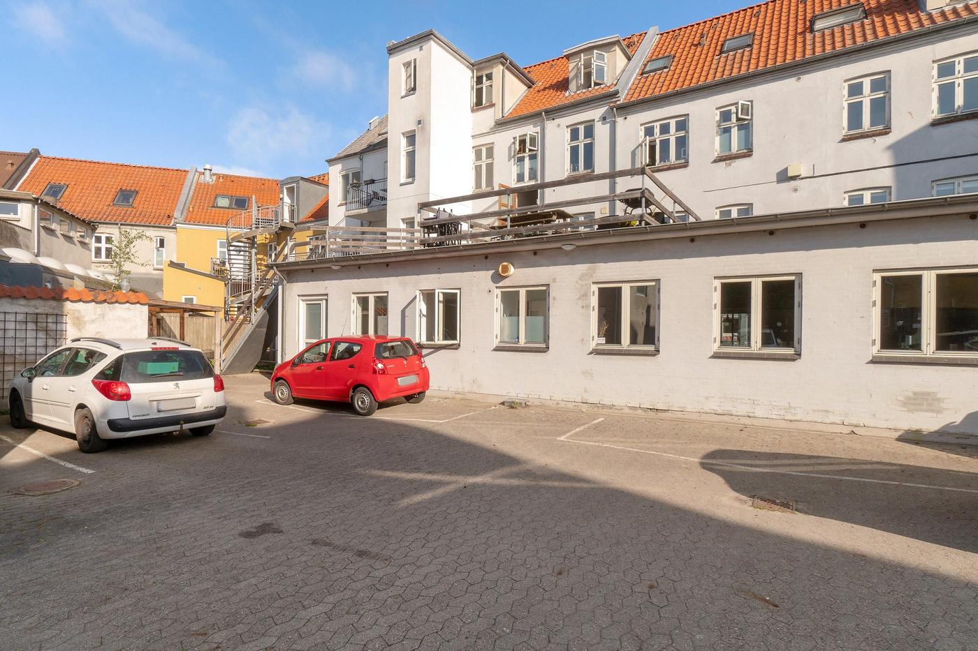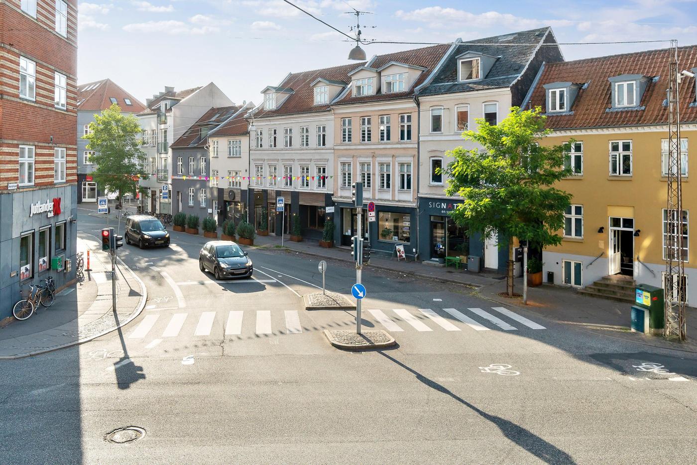 Ejendommen er attraktiv beliggende med flot facade mod Jægergårdsgade og med kort afstand til krydset mod Frederiks Allé. Området er kendetegnet ved et stort udvalg af restaurationer, specialforretninger, atelierer samt attraktive boliger mm.