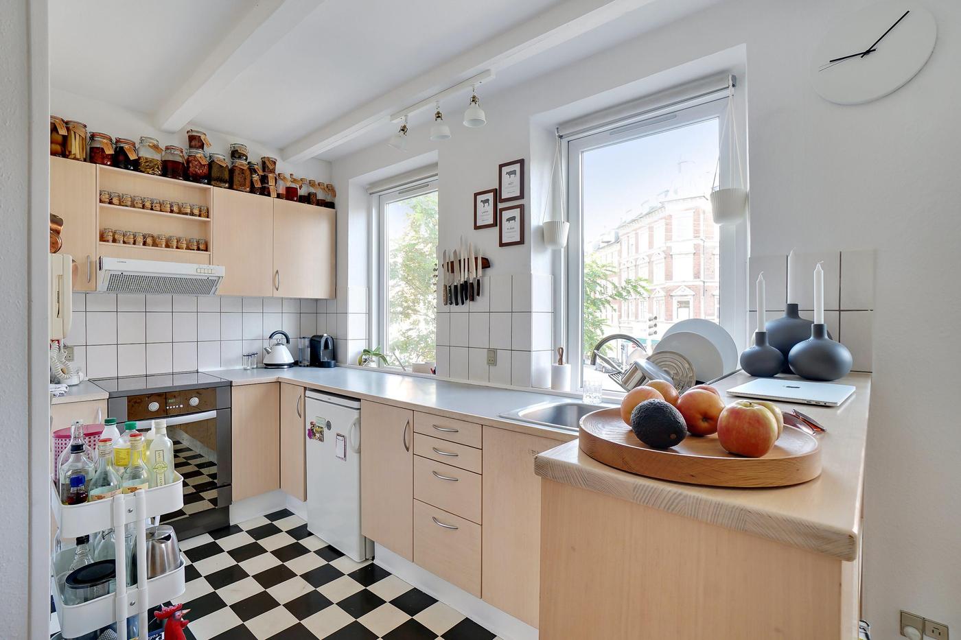 Køkken og bad er i nogle af lejlighederne af lidt ældre dato, men grundlæggende både velfungerende og nydelige. Alle lejligheder har adgang til tagterrasse - heraf 3 lejligheder til egen tagterrasse. Desuden har lejlighederne adgang til fælles vaskerum i kælder.