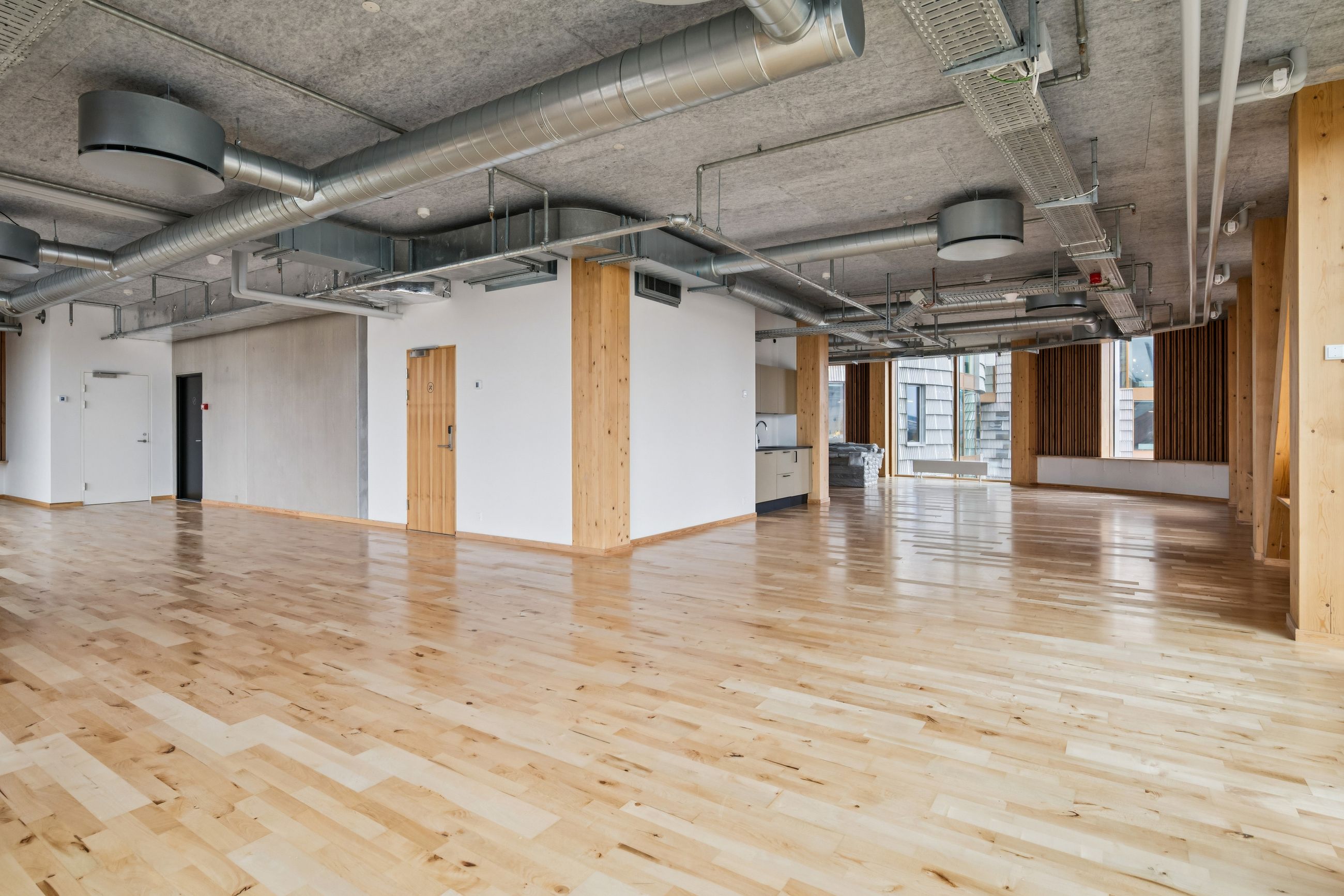 Som lejer i TRÆ får I adgang til fællesfaciliteter udover det sædvanlige. Frokosten indtages i den store fælles kantine på 7. og 8. sal. Herfra der er direkte udgang til den store fælles tagterrasse, som udover frokosten kan bruges til firmaevents i et afslappet loungemiljø med udsigt over byen og vandet.