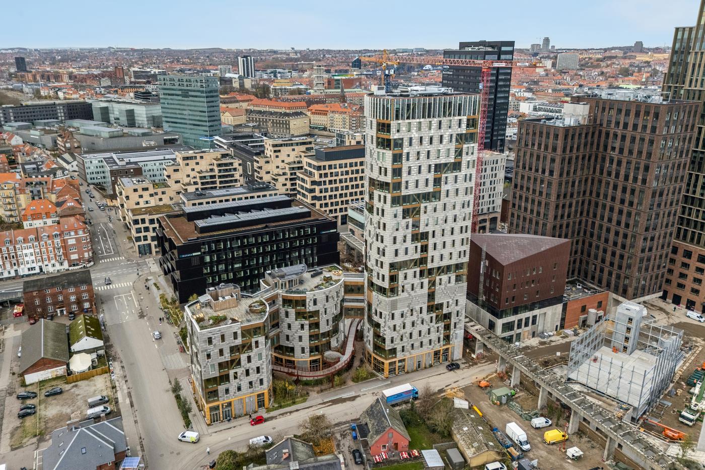 TRÆ er fordelt på tre bygninger, hvoraf den ene med sine 78 meter er Danmarks højeste træhus.