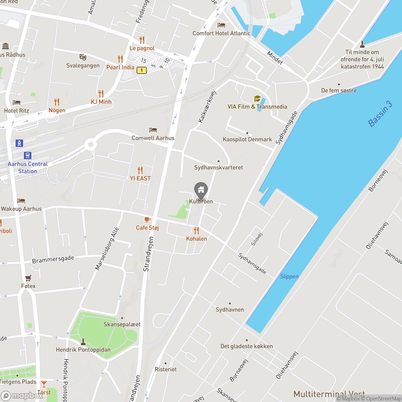 Med sin placering i hjertet af Sydhavnen ligger TRÆ supercentralt. Du har Aarhus Hovedbanegård, rutebilstationen og det helt centrale Aarhus inden for 1 kilometer. Du har fem minutter i bil til Molslinjen og 10 minutter til motorvejen. Og med Kulkransporet får du bymidten og banegården lige om hjørnet.