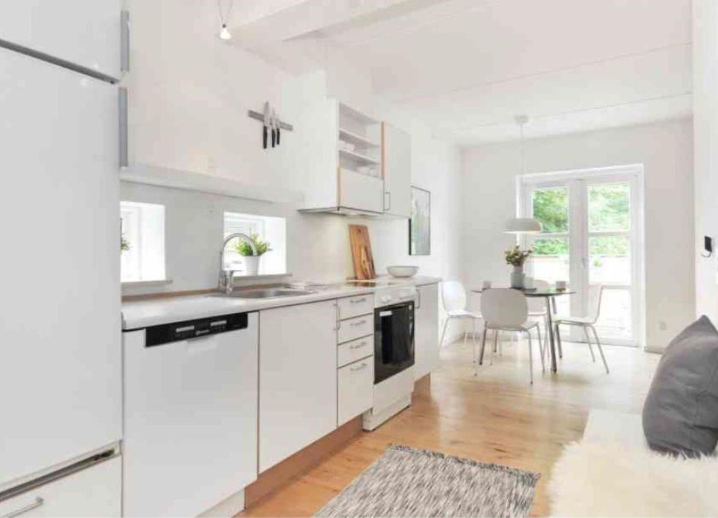 Ejendommen: Ejendommen er opført i 2001 og opdelt i ejerlejligheder. Da ejendommen er opført efter den 31.12.1991, betyder dette, at der lovligt kan opkræves markedsleje for lejlighederne. Der findes elevator i ejendommen, således at ældre eller dårligt gående også kan benytte lejemålene. Der er separate forbrugsmålere til alle lejligheder. Køkken samt bad fremstår lyst og pænt. Lejlighederne henvender sig til par eller enlige, dog kan de også indrettes som delelejligheder ved opsætning af en væg. Der er adgang til mindre altan, som vender ud mod haven. Sælgerne bebor ejendommen i dag men fraflytter ved salg.