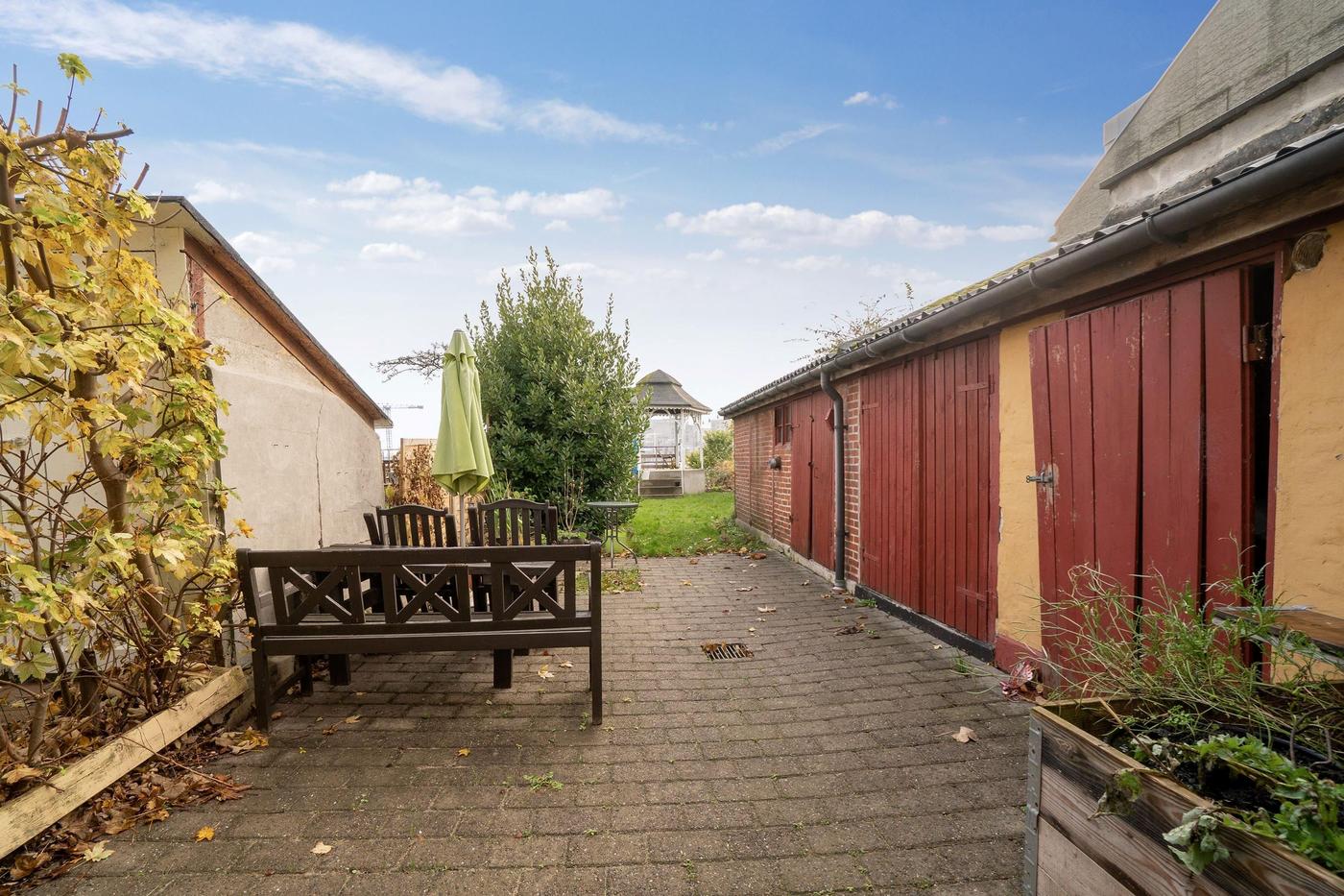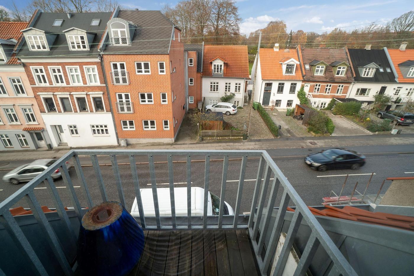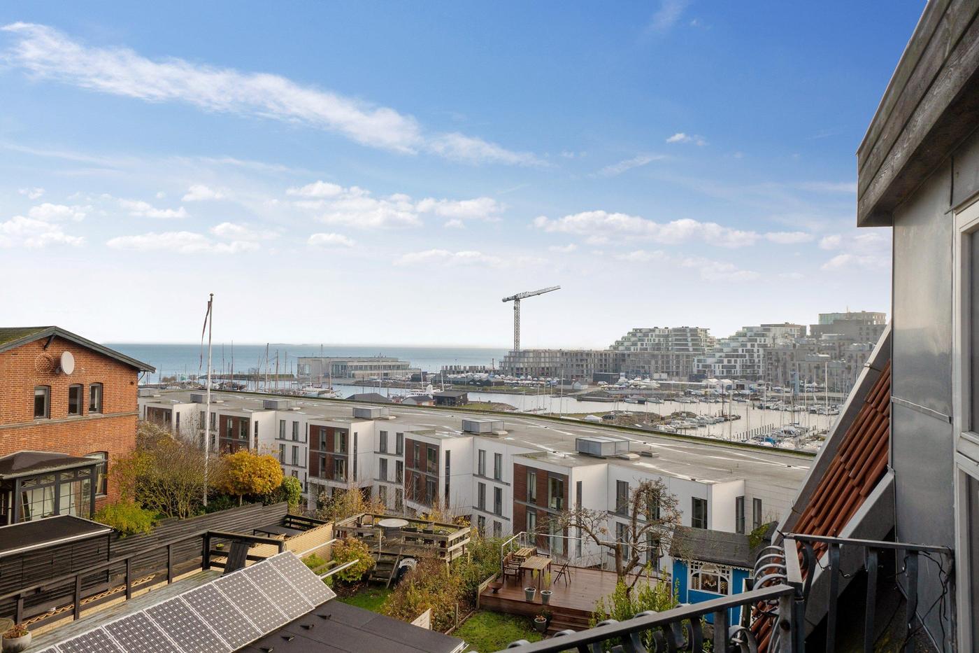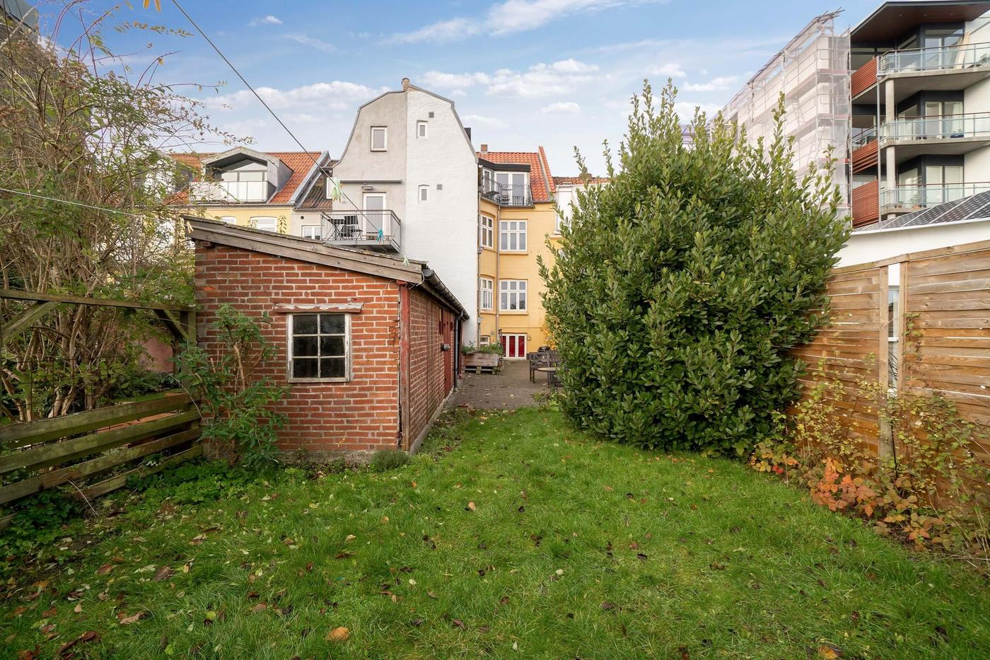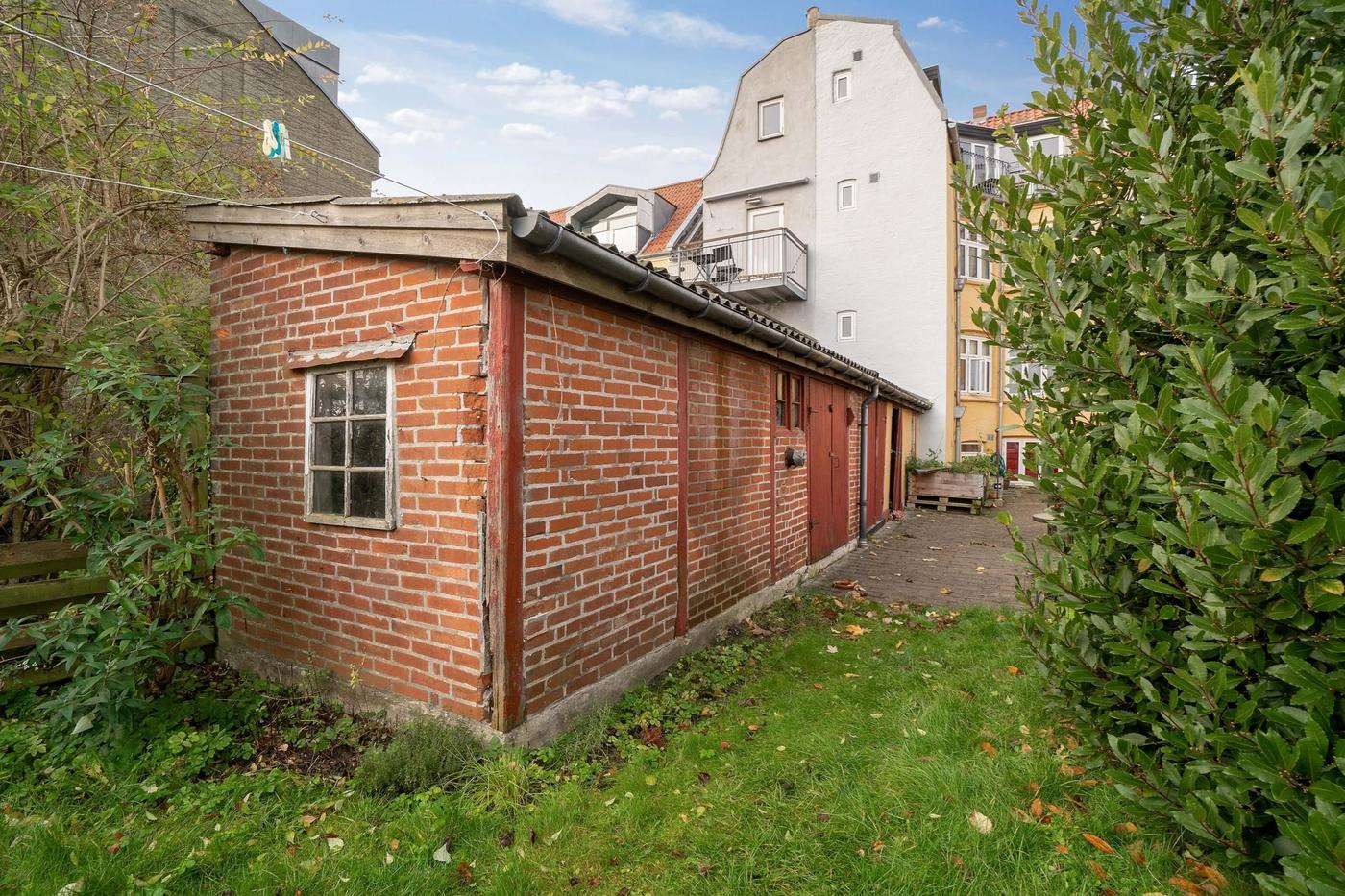 EJENDOMMEN: Charmerende ejendom med 4 boliger, en dejlig baghave med udhuse samt et idyllisk havehus. Fra de øverste lejligheder og haven er der smuk udsigt over Aarhus Bugt og Aarhus Ø.