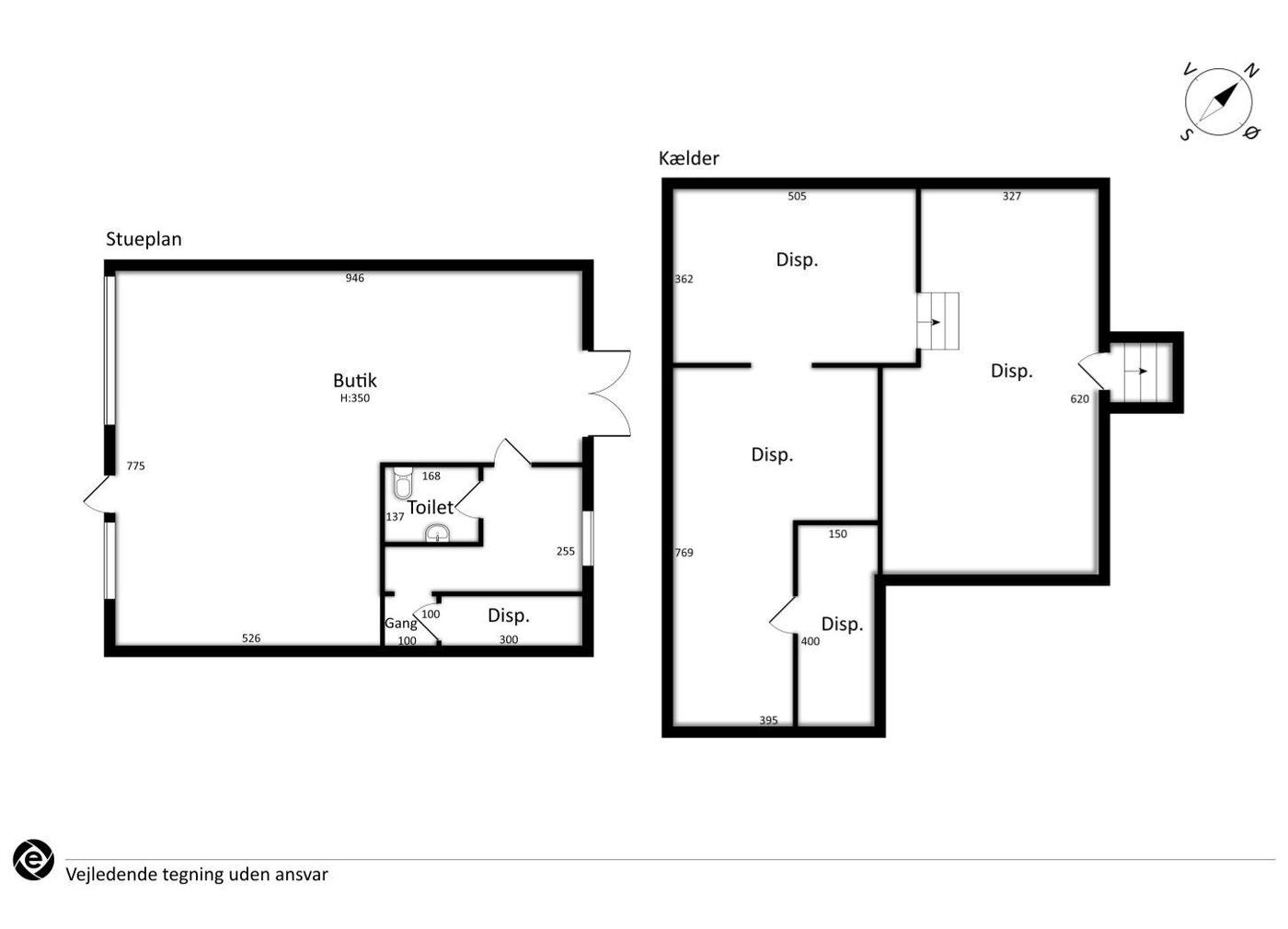 I kælderetagen er der god mulighed for varelager, opbevaring mv.