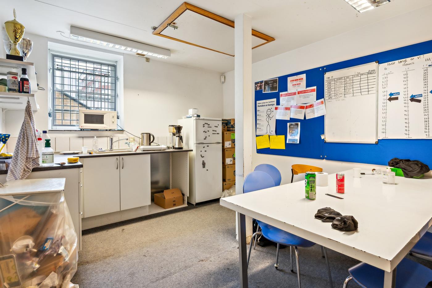 Til lejemålet er der ligeledes godt med lagerplads, et mindre kontor samt personalefaciliteter. Der er også en varelift, som stadig kan anvendes eller som evt. kan udskiftes til en nyere model.