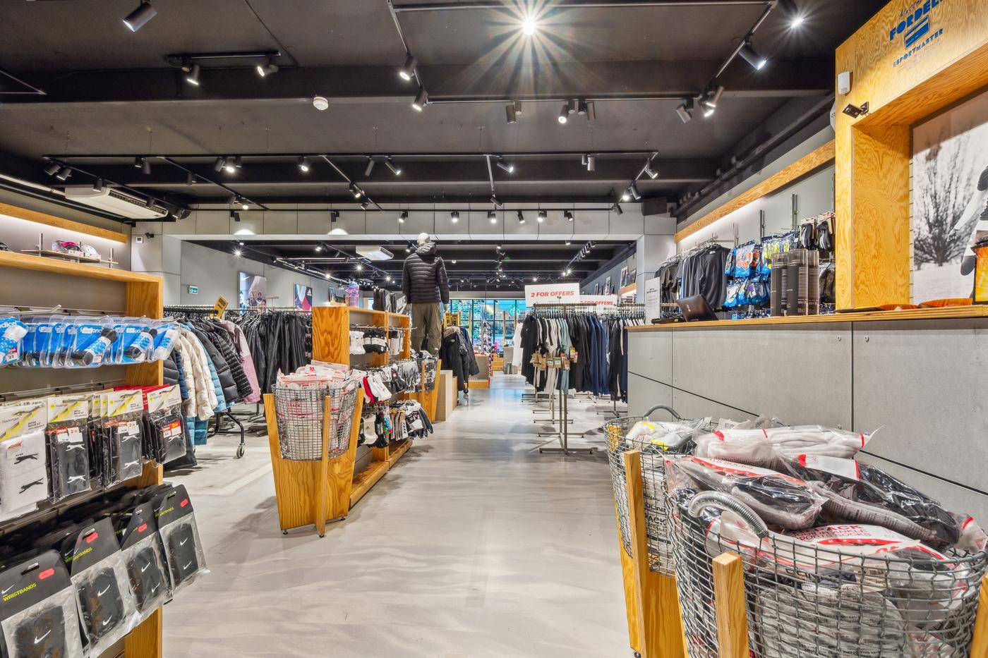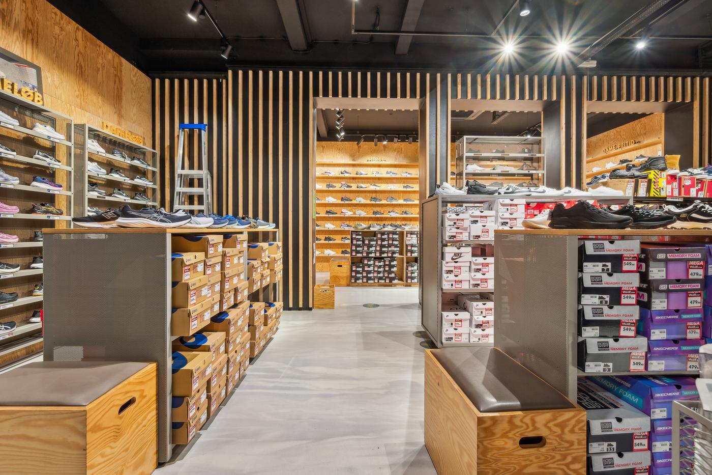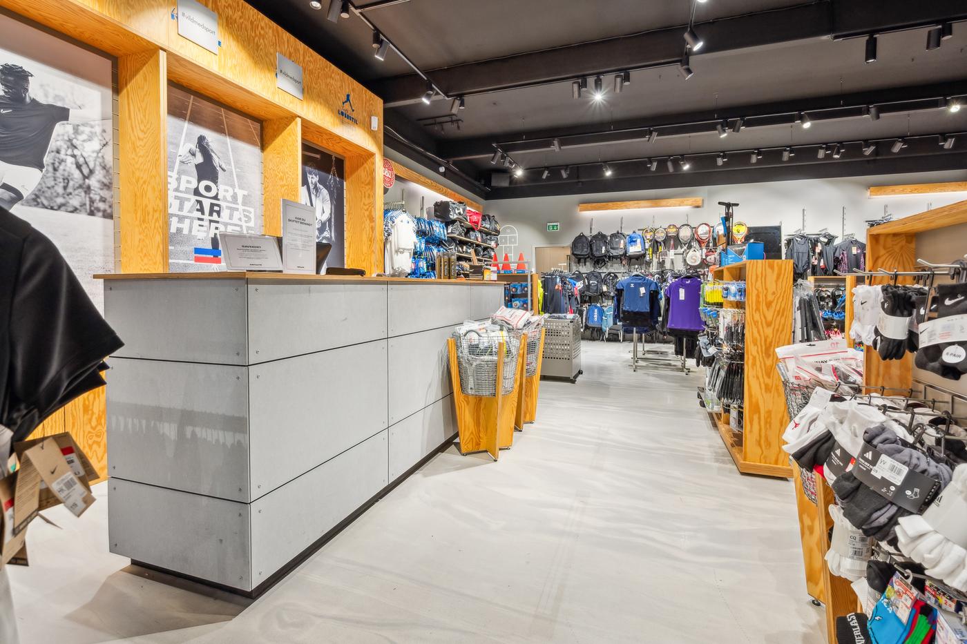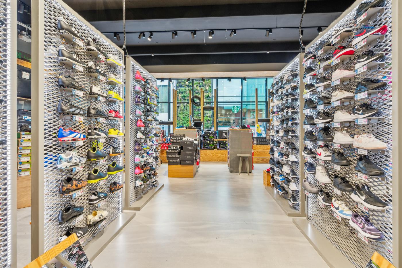 Butikken har en markant facade med store glaspartier, der giver maksimal synlighed mod gaden og inviterer til kundestrøm.