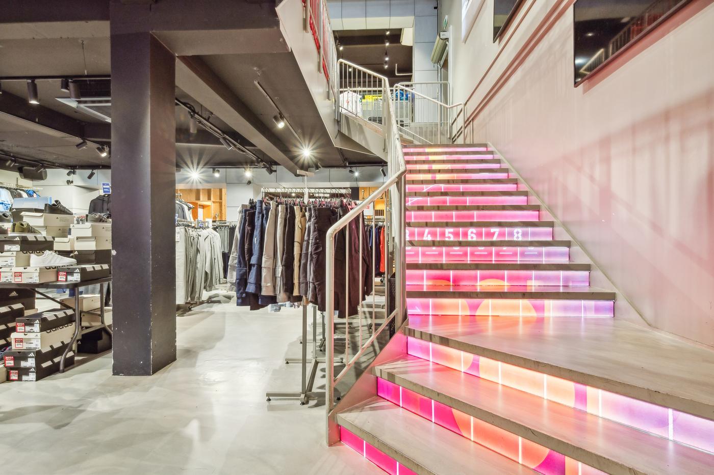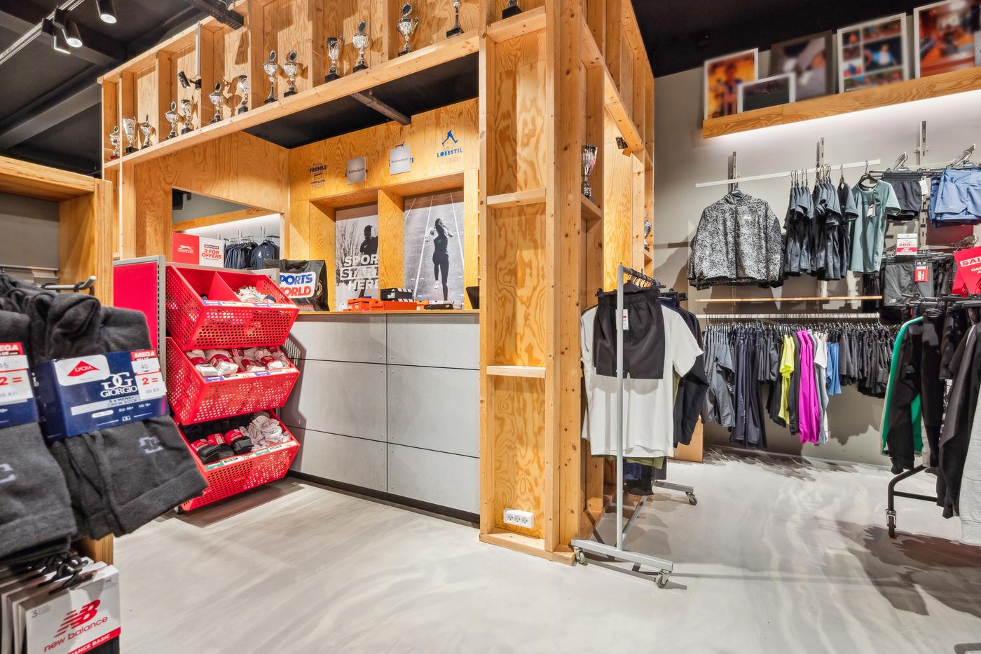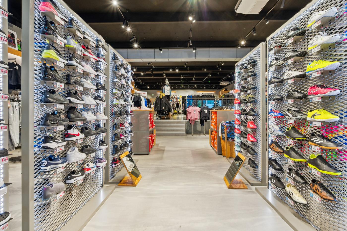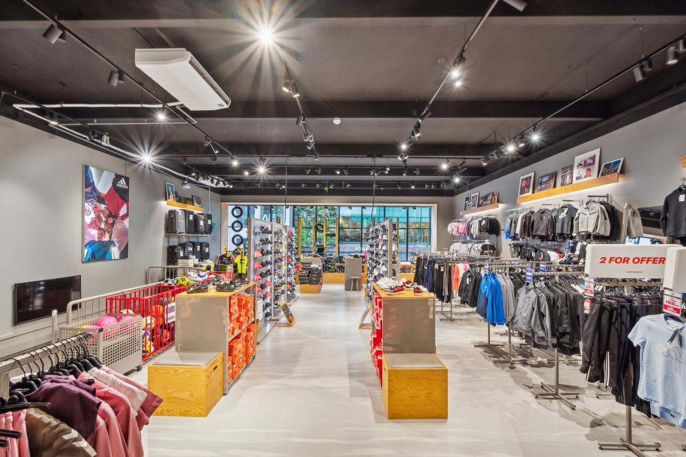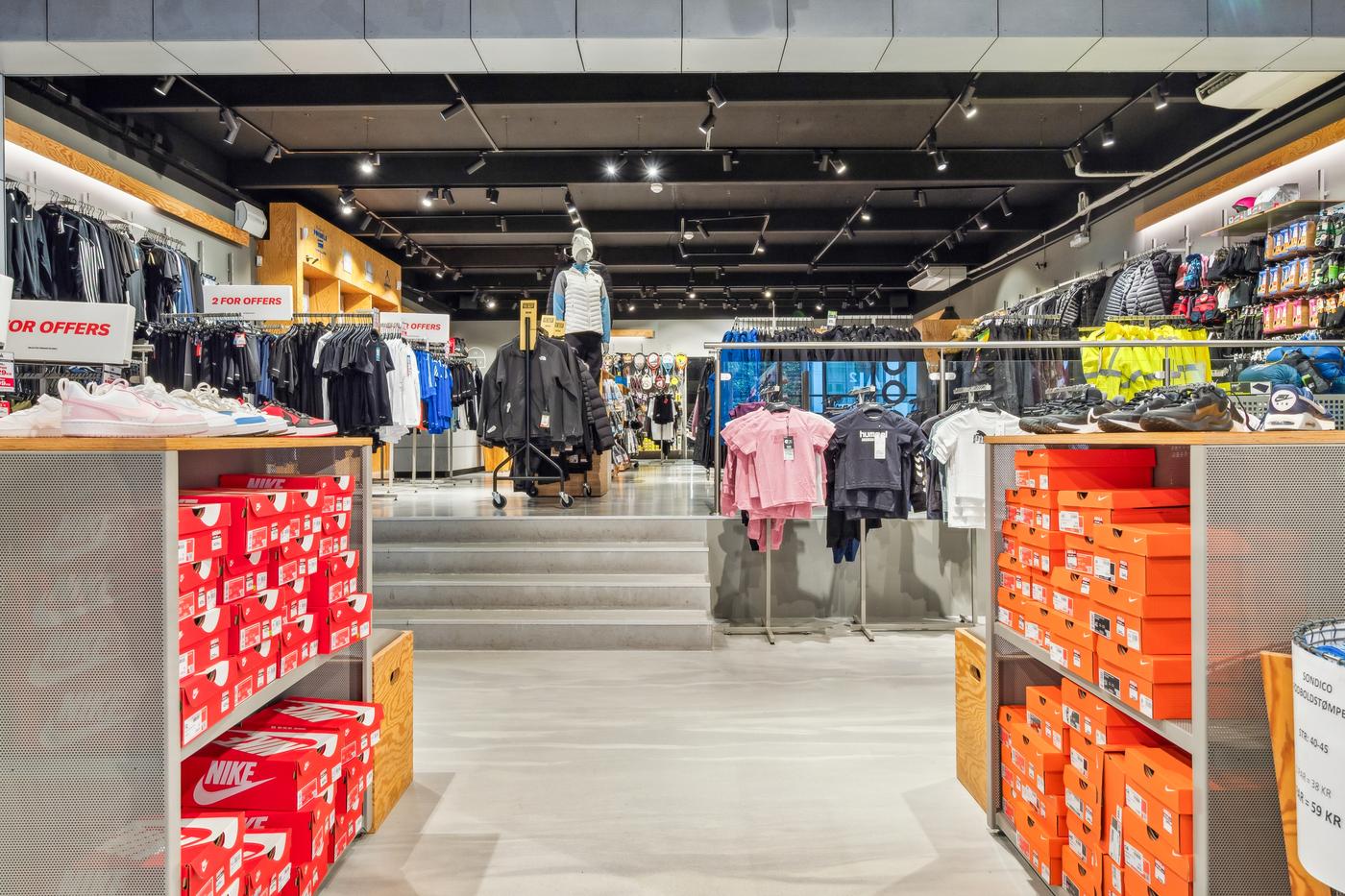 Butikken har en markant facade med store glaspartier, der giver maksimal synlighed mod gaden og inviterer til kundestrøm.