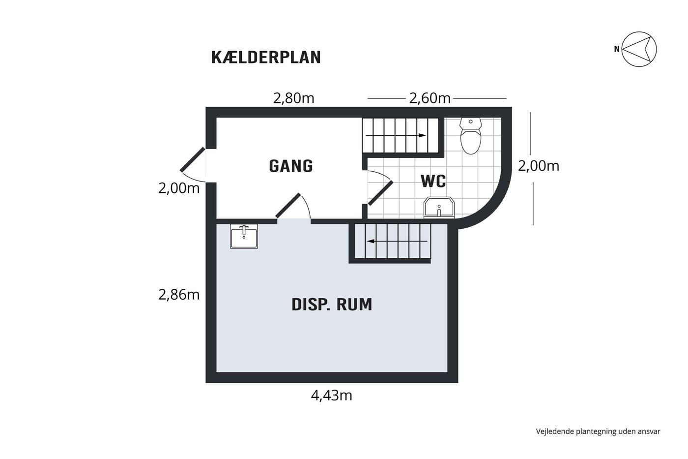 I kælderen findes disponibelt rum der p.t. benyttes til kontor.