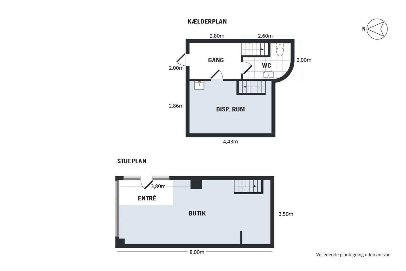 Der er ca. 30 m² regulært butiksareal med god eksponering mod gågaden.
