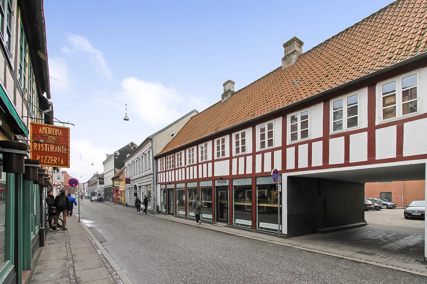 Ejendommen er beliggende i Vestergade som er én af byens ældste gader kendt for mange hyggelige cafeer og spisesteder. Her er du midt i byens pulserende liv og har kort gåafstand til alt hvad Aarhus byder på af shopping, kulturliv, byparker mv. Samtidig tilbyder ejendommen en sjælden kombination af roligt beliggende boliger, solvendt opholdsareal og ikke mindst egen parkering.