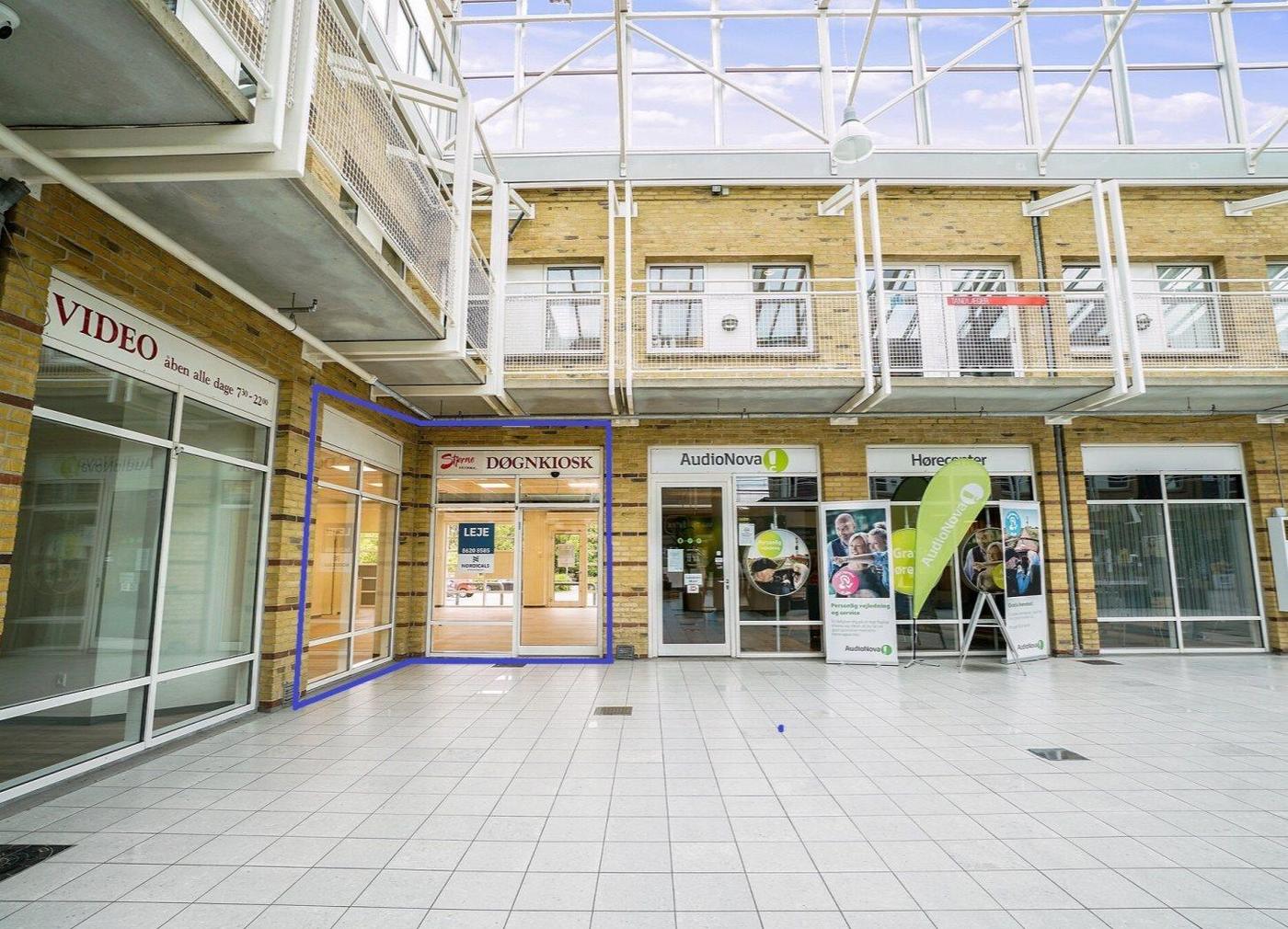 Butikken ligger med Matas som nabo og er derudover placeret lige ved indgangen til Føtex. Føtex er det store trafikale samlingspunkt i centret.