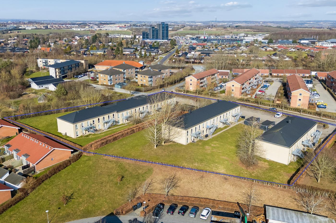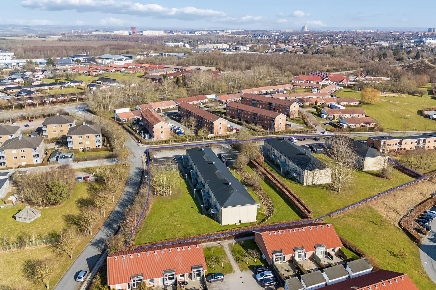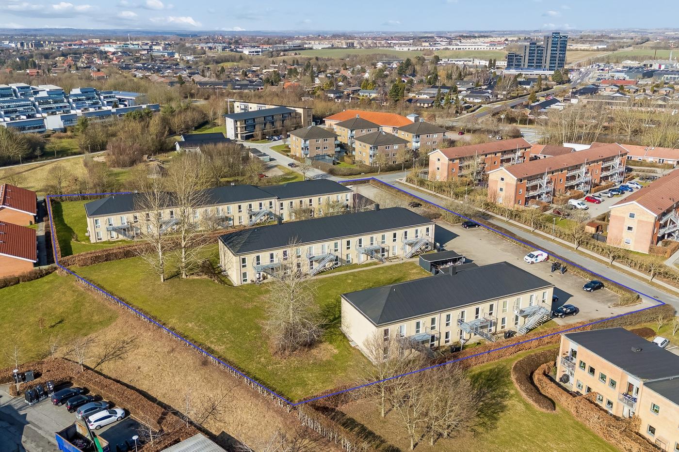 Ejendommen udgør et samlet boligkompleks bestående af 104 ejerlejligheder opført i tre ensartede bygningskroppe i to plan og med delvis kælder, og som en moderne og velstruktureret bebyggelse med fokus på funktionalitet, god drift og attraktiv beliggenhed i den vestlige del af Aarhus. Lejlighederne er opbygget i ensartede og gennemførte materialer, hvor driftssikkerhed og høj udlejningsvenlighed har været centrale hensyn. Bebyggelsen fremstår nutidig, veldrevet og velegnet både til investering og fortsat udlejning.