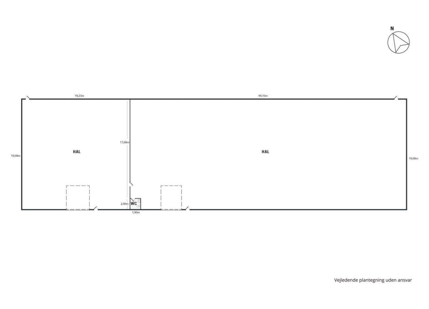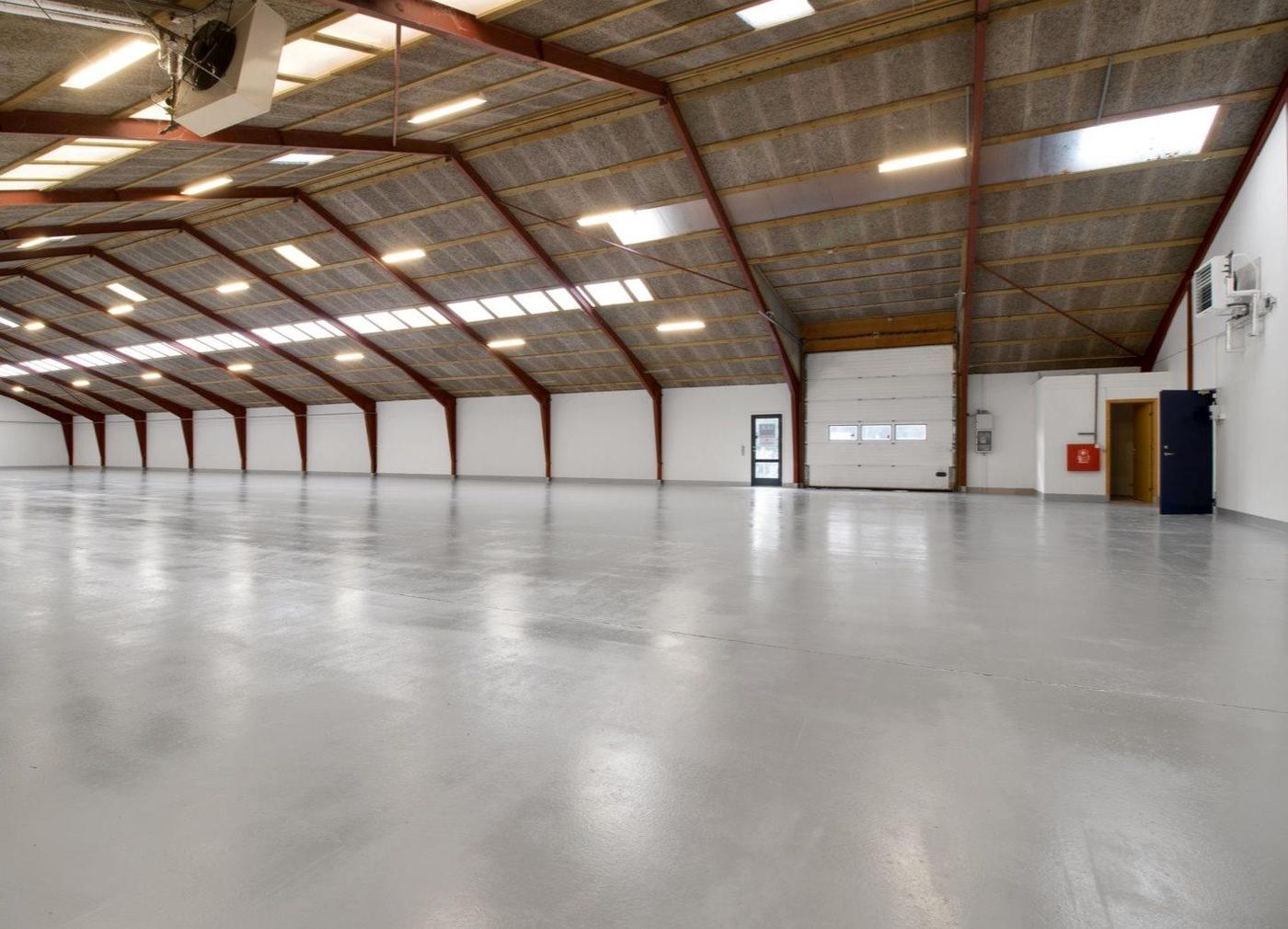 Ejendommen består af 2 sammenhængende haller, velegnet til lager/værksted/showroom. Den ene hal er på ca. 1.000 m² og den anden på ca. 400 m². Begge haller er med egen port og indgangsdør. Loftshøjde er 3,9 - 6,2 m.