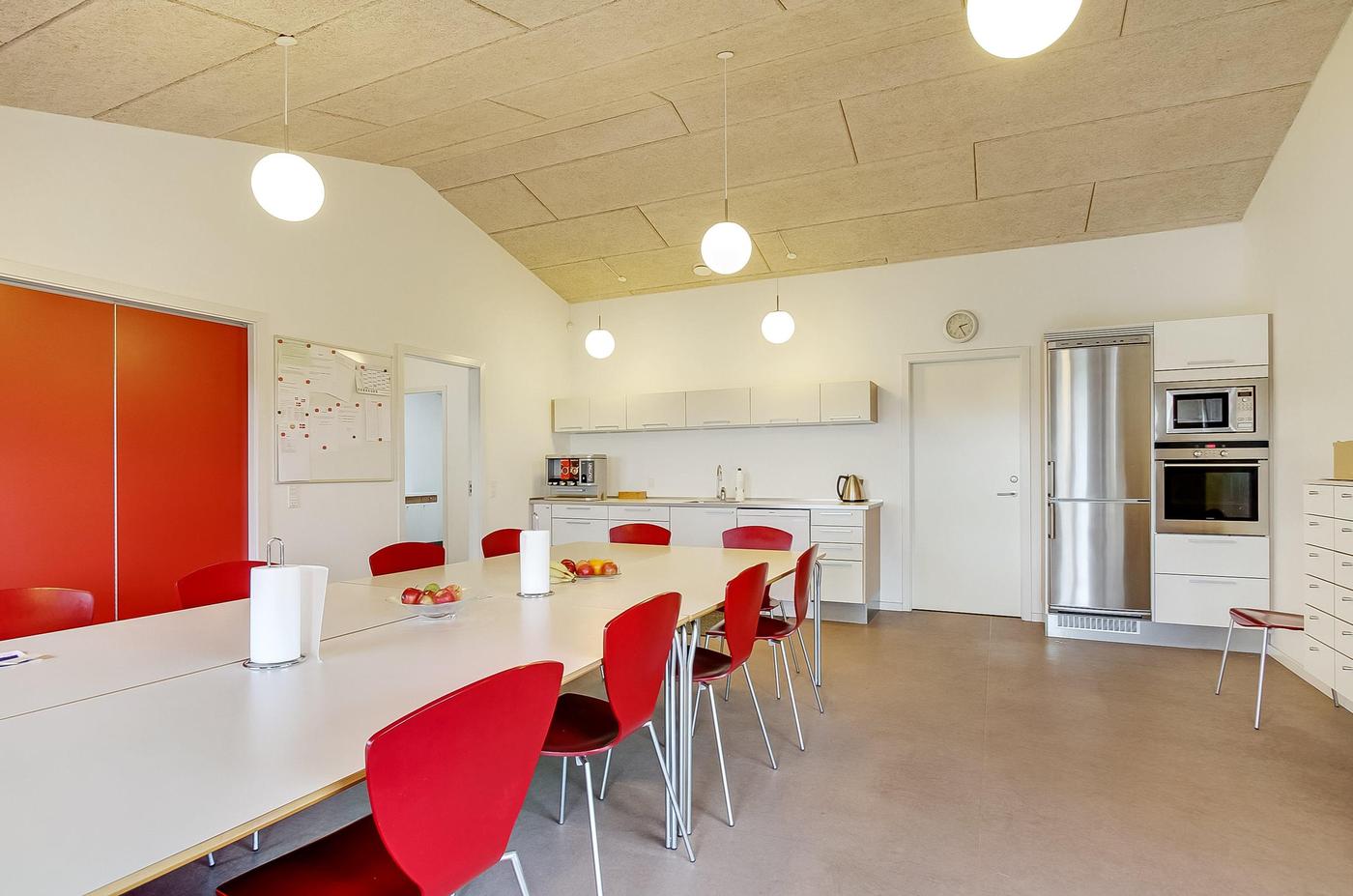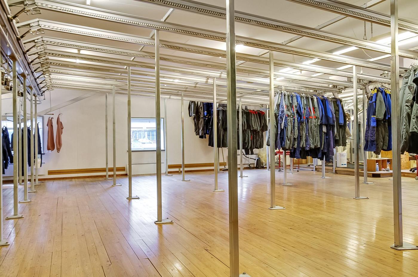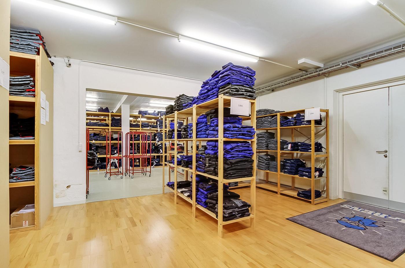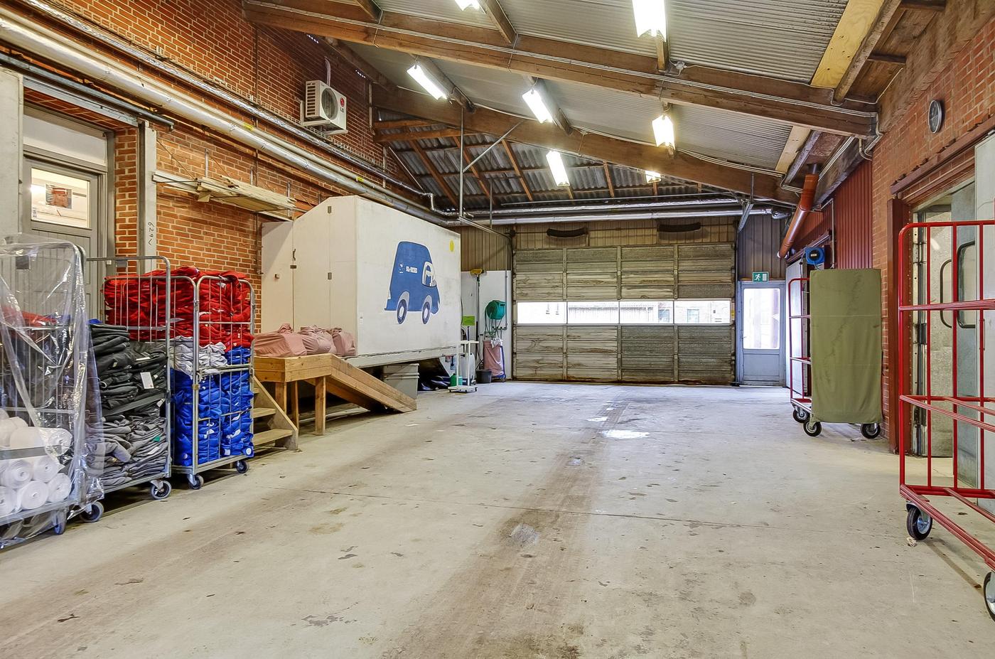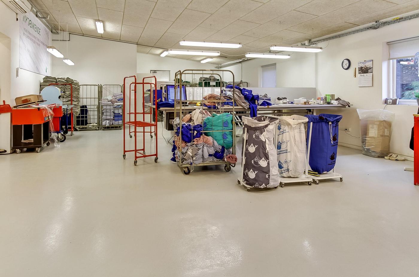 Derudover er der et fint produktions-/lagerareal på ca. 700 m², der i dag anvendes til renseri af tøj samt lagerforhold til tøjet. Gulvet i bygningen er af træ eller beton og er opvarmet og har gode lysindfald. Arealerne vil kunne anvendes til mange andre formål, blandt andet til undervisning og finproduktion.