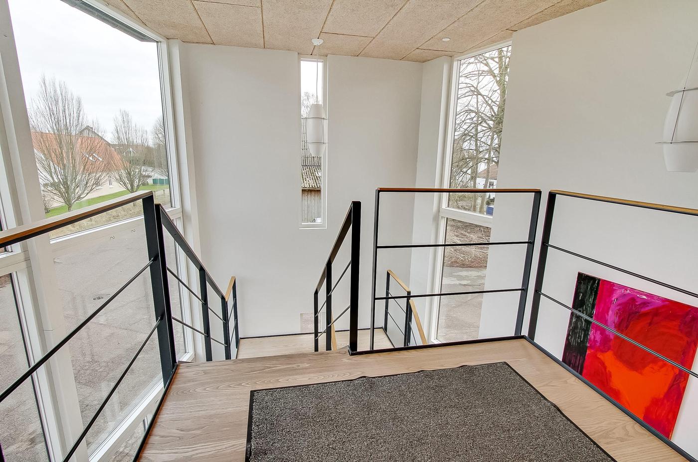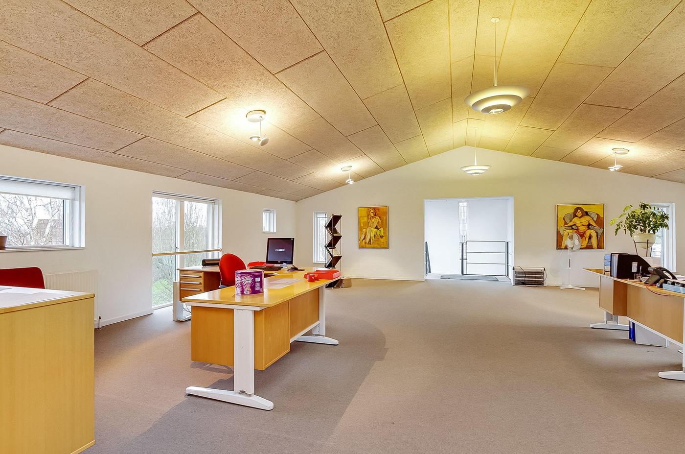 Første sal, der er på næsten 400 m², er indrettet med tæppebelægning, troltex på loftet samt ovenlys. Der er et stort åbent kontor, mødelokale, flere mindre kontorer, kantine og toiletforhold.