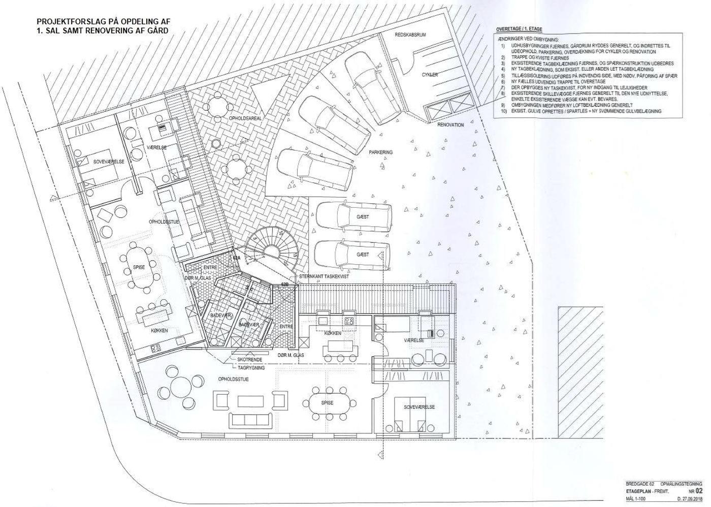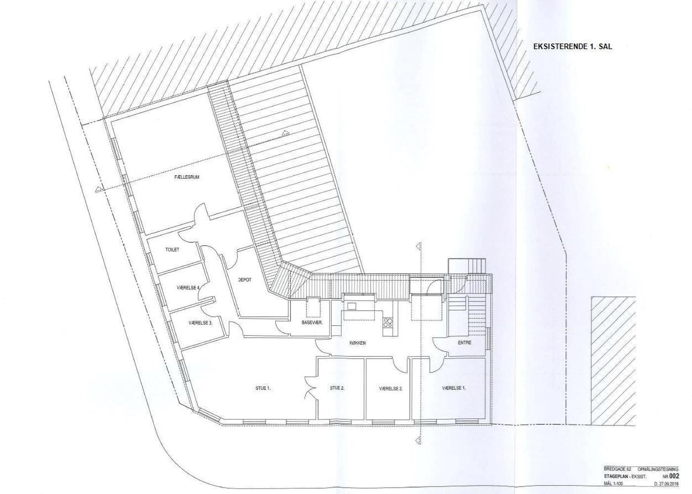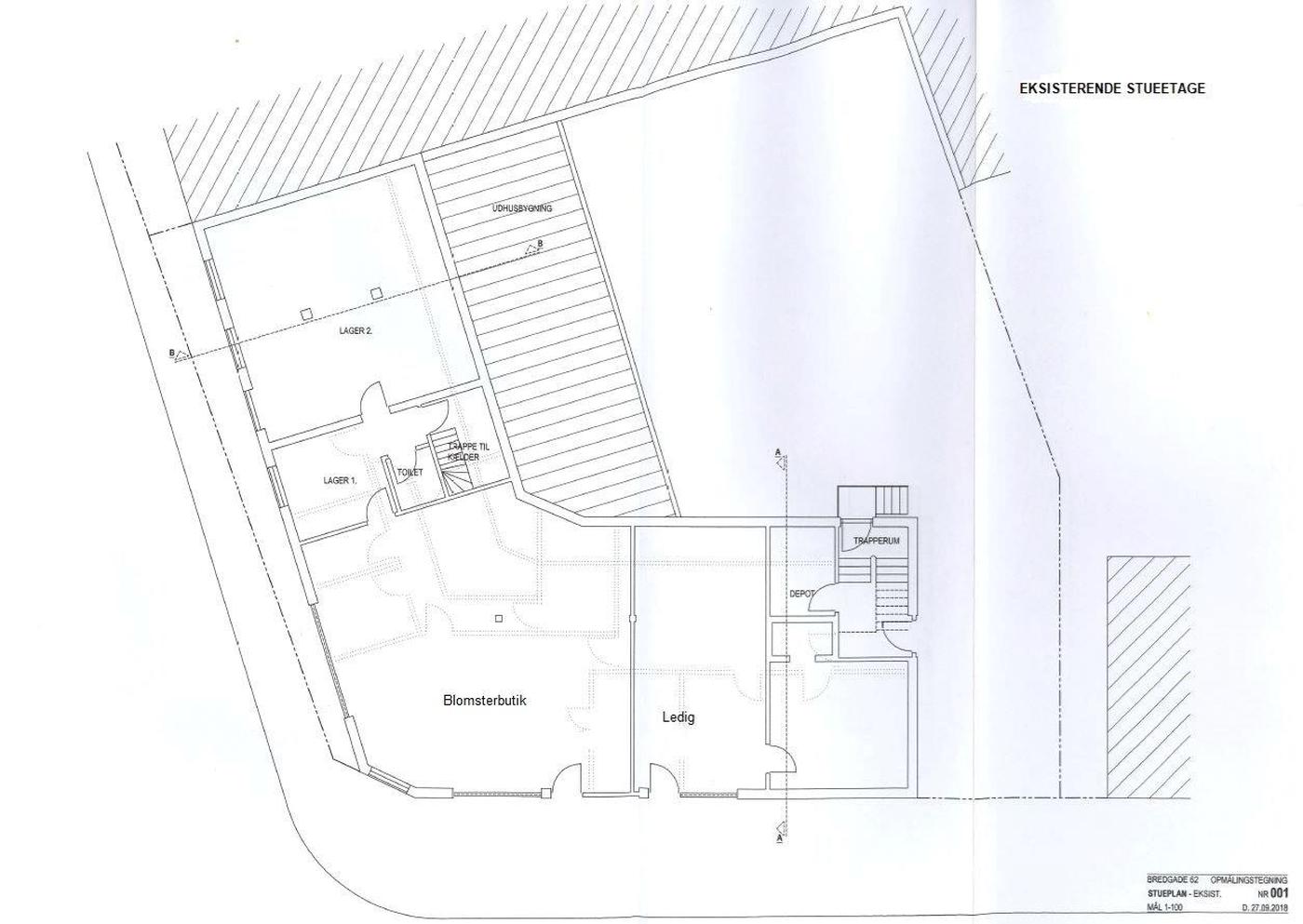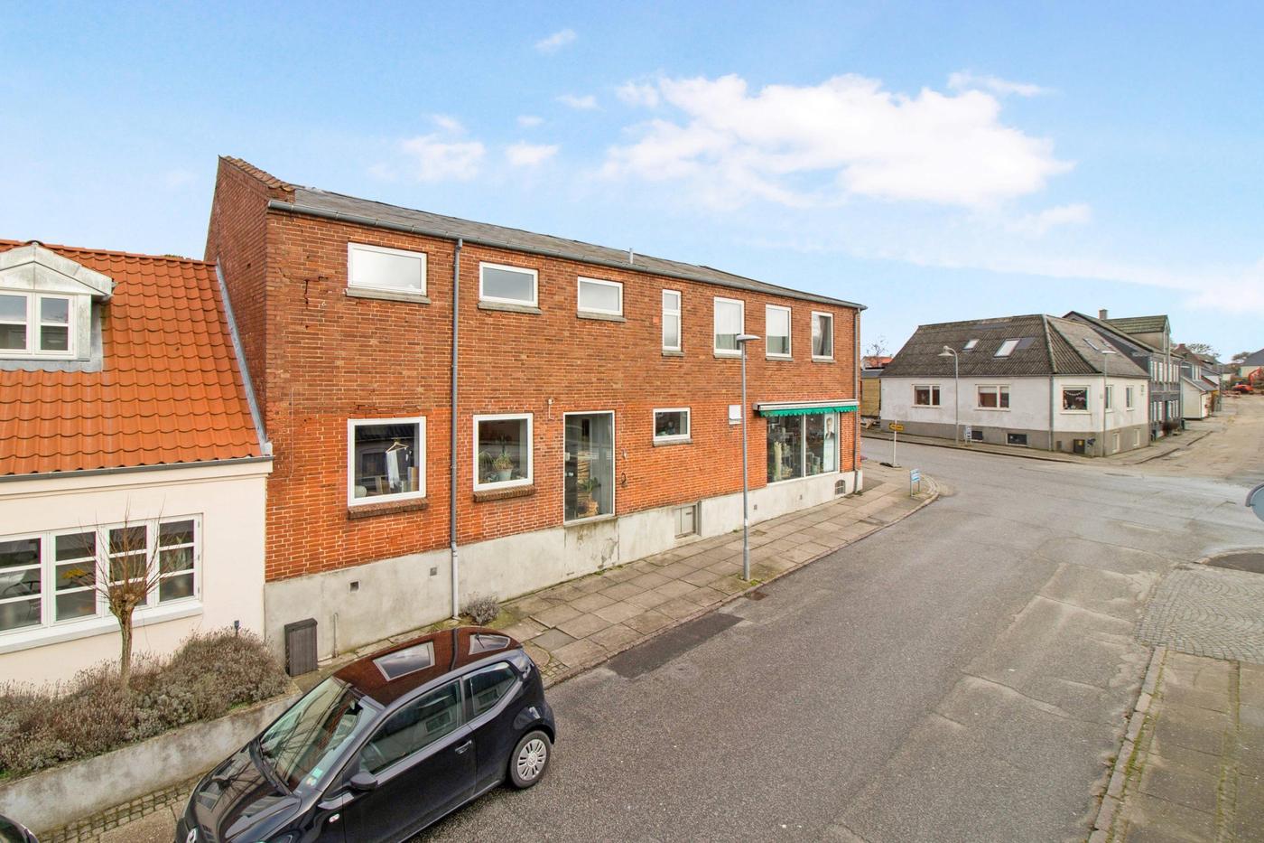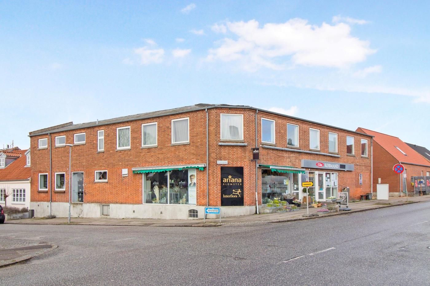 Beskrivelse Ejendommen er en bolig- og erhvervsejendom. Ejendommen er opført i 1895 og ombygget i 1985. Ejendommen indeholder i alt 3 lejemål. Stueetagen er opdelt i 2 erhvervslejemål, henholdsvis en blomsterforretning på 140 m² og en kiosk (ledig) på 149 m². Begge erhvervslejemål ligger med synlig facade til Bredgade og har nydt godt af den gode placering i en årrække. 1. salen indeholder en stor lejlighed på 154 m² til beboelse (ledig) Mulighed for opdeling til flere lejligheder. Se tegninger.