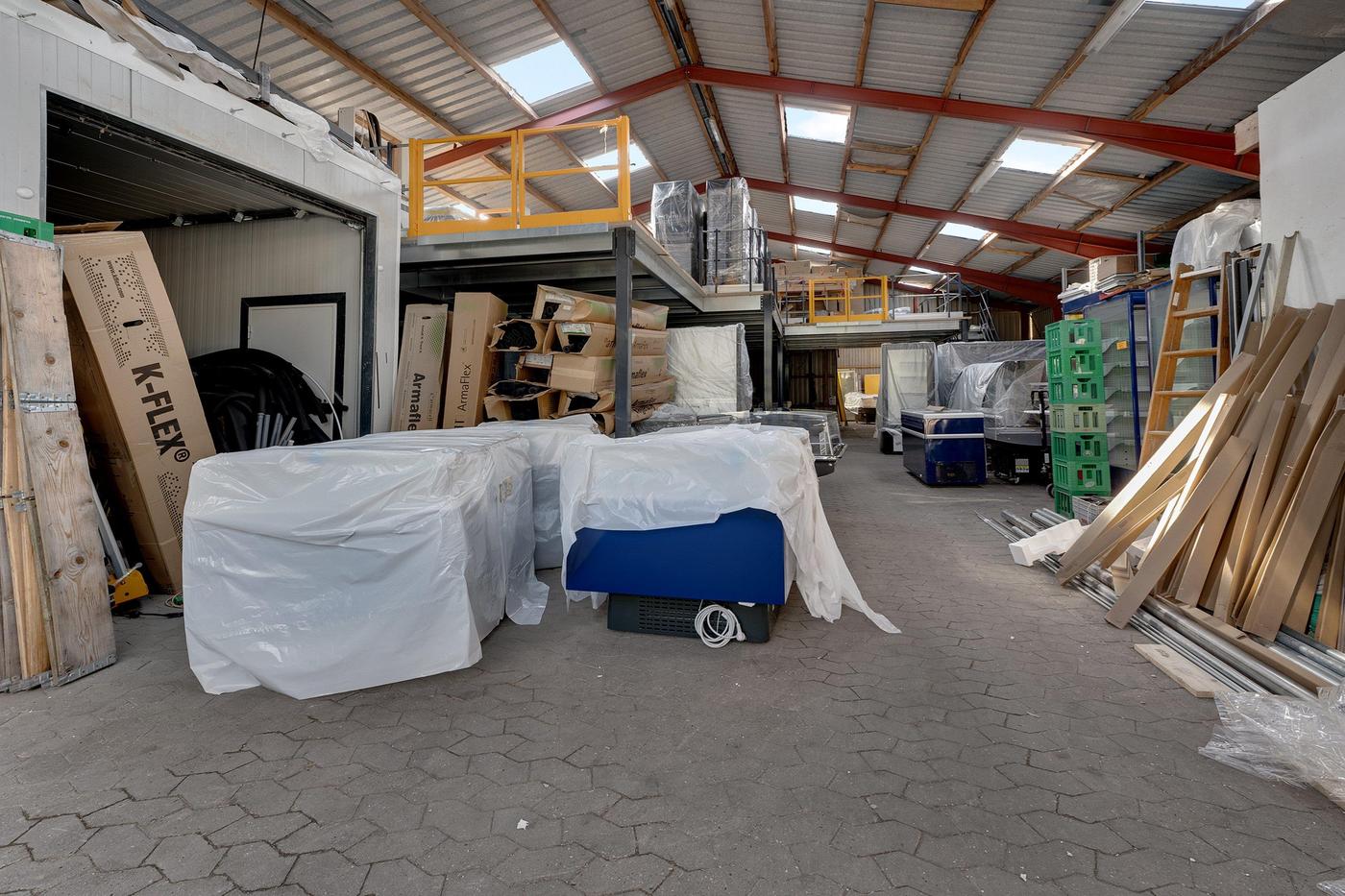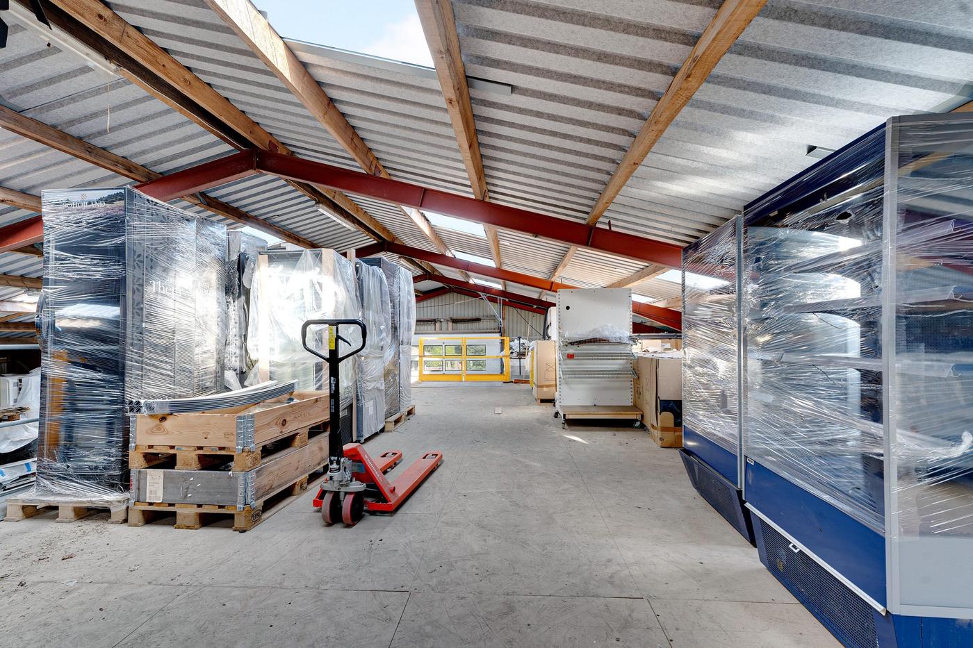 Koldhal på ca. 466 m² opført i 1993 og tilbygget i 1997. Ydervægge i profilerede stålplader. Gulvbelægning er SF-sten. Nyt ståltag med ovenlysvinduer, udhæng og tagrender fra 2022. Der er ca. 4 m bred port i gavl. Hallen er opdelt i 2 enheder på hhv. ca. 340 m² og 126 m².