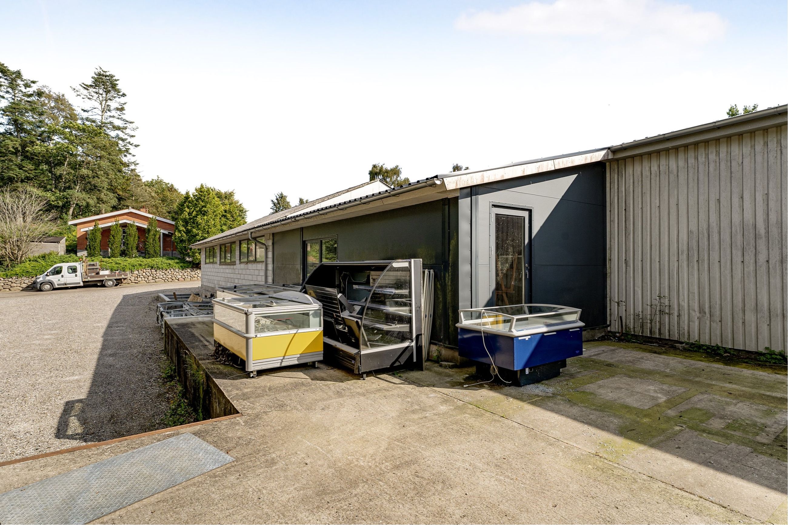 Der er rampe til aflæsning ved siden af bygningen.