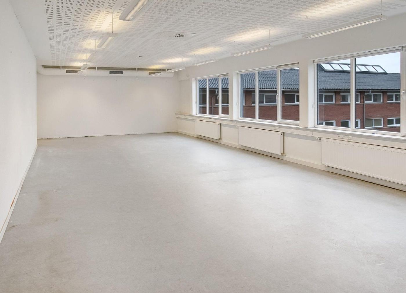 Lejemålet er beliggende på 1. sal og har selvstændig indgang. Arealerne er disponeret med et større, åbent kontorlandskab samt en række selvstændige kontorer og mødelokaler i varierende størrelse. Der er overvejende tale om lette skillevægge, hvilket gør indretningen fleksibel. Lejemålet er desuden forsynet med et te-køkken samt toiletfaciliteter.