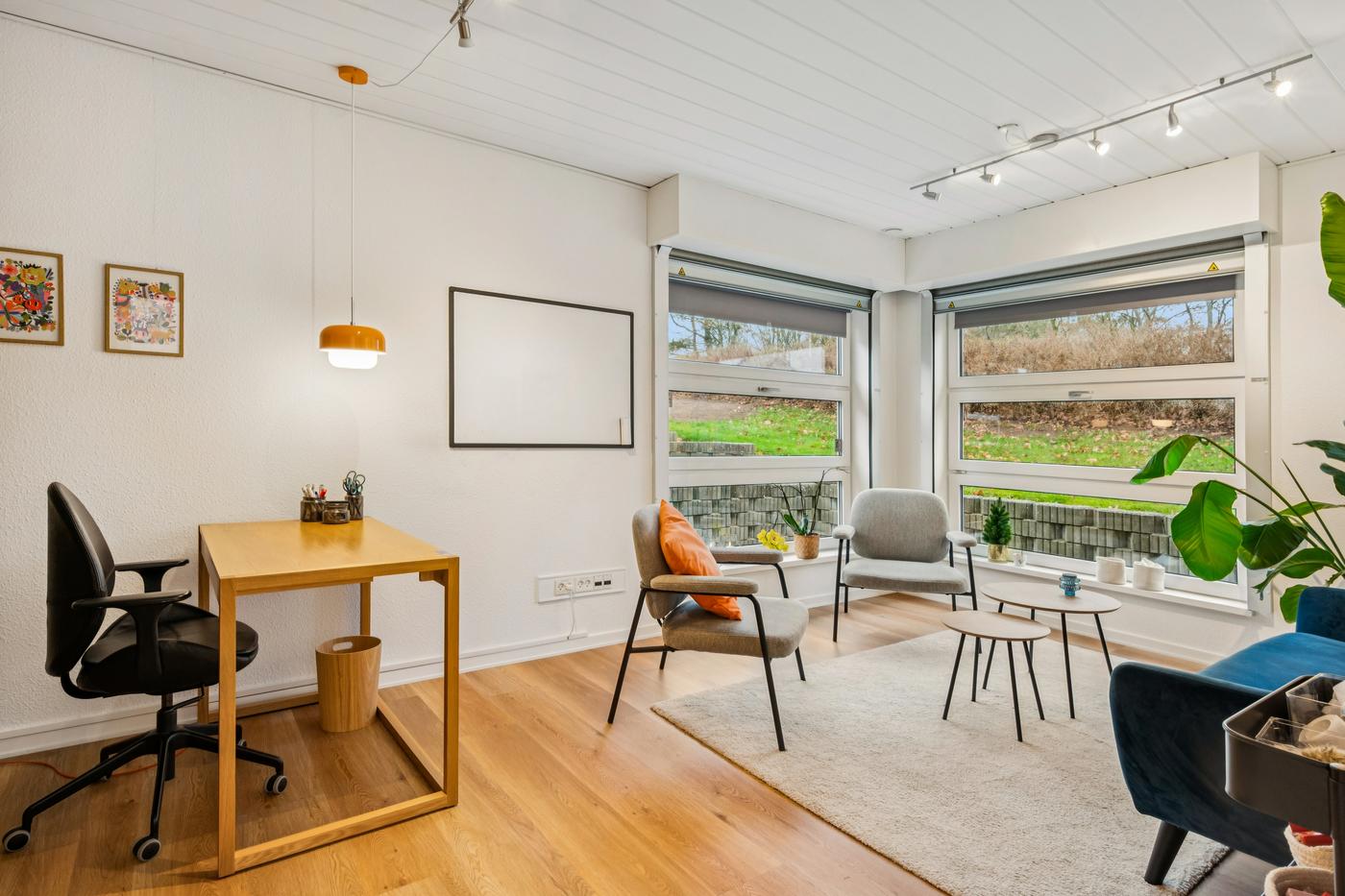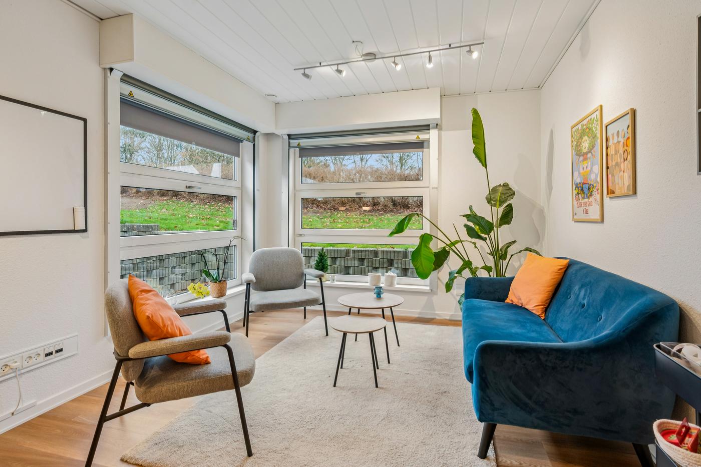 På Bogøvej 15 i Hinnerup udbydes denne velindrettede kontorejendom, der i dag fungerer som et moderne kontorfællesskab.
