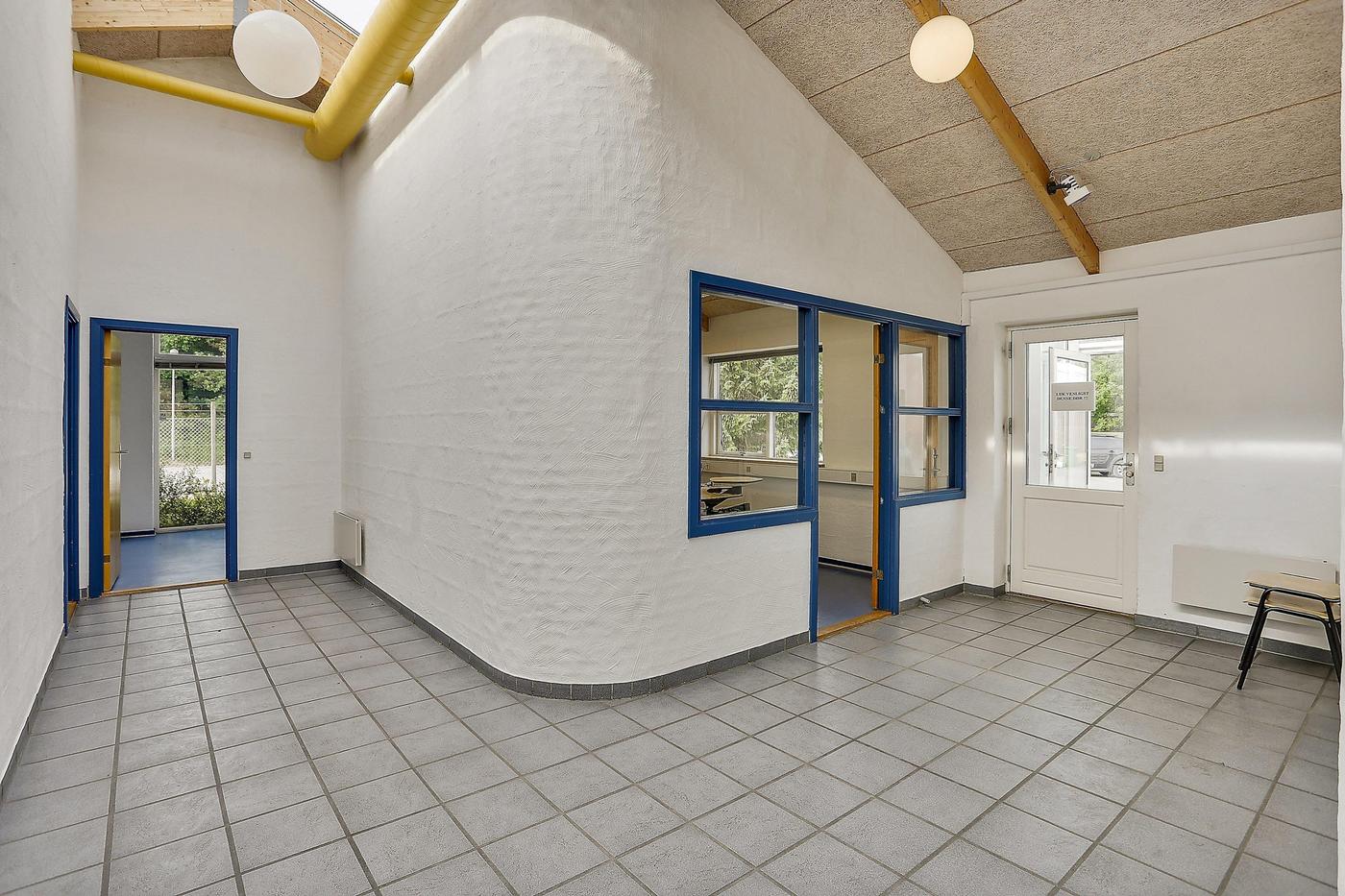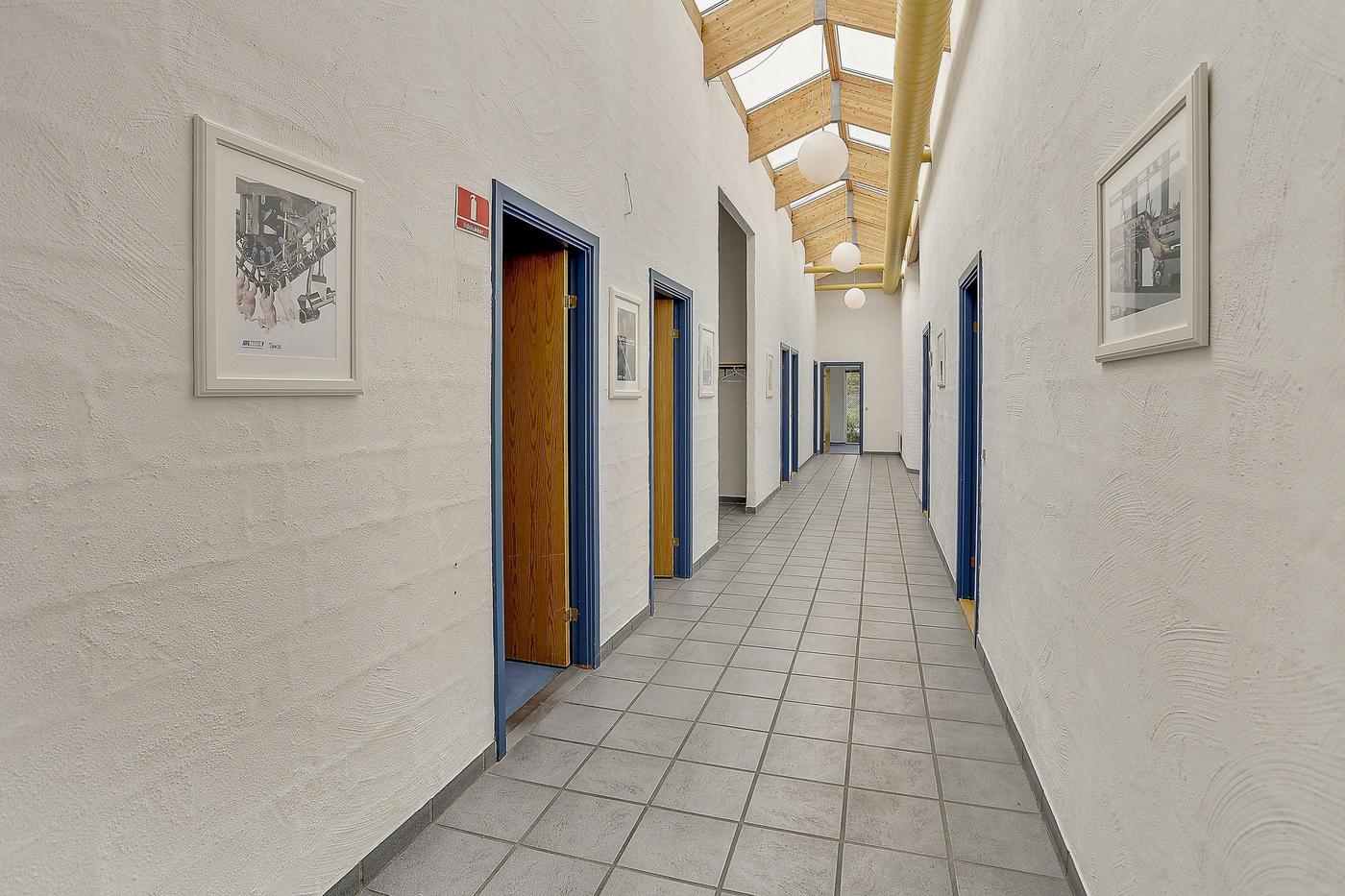 Kontordelen indeholder kontorer, kantine, møderum og toilet/omklædningsforhold. De indvendige vægge er i mursten, og der er ovenlys.