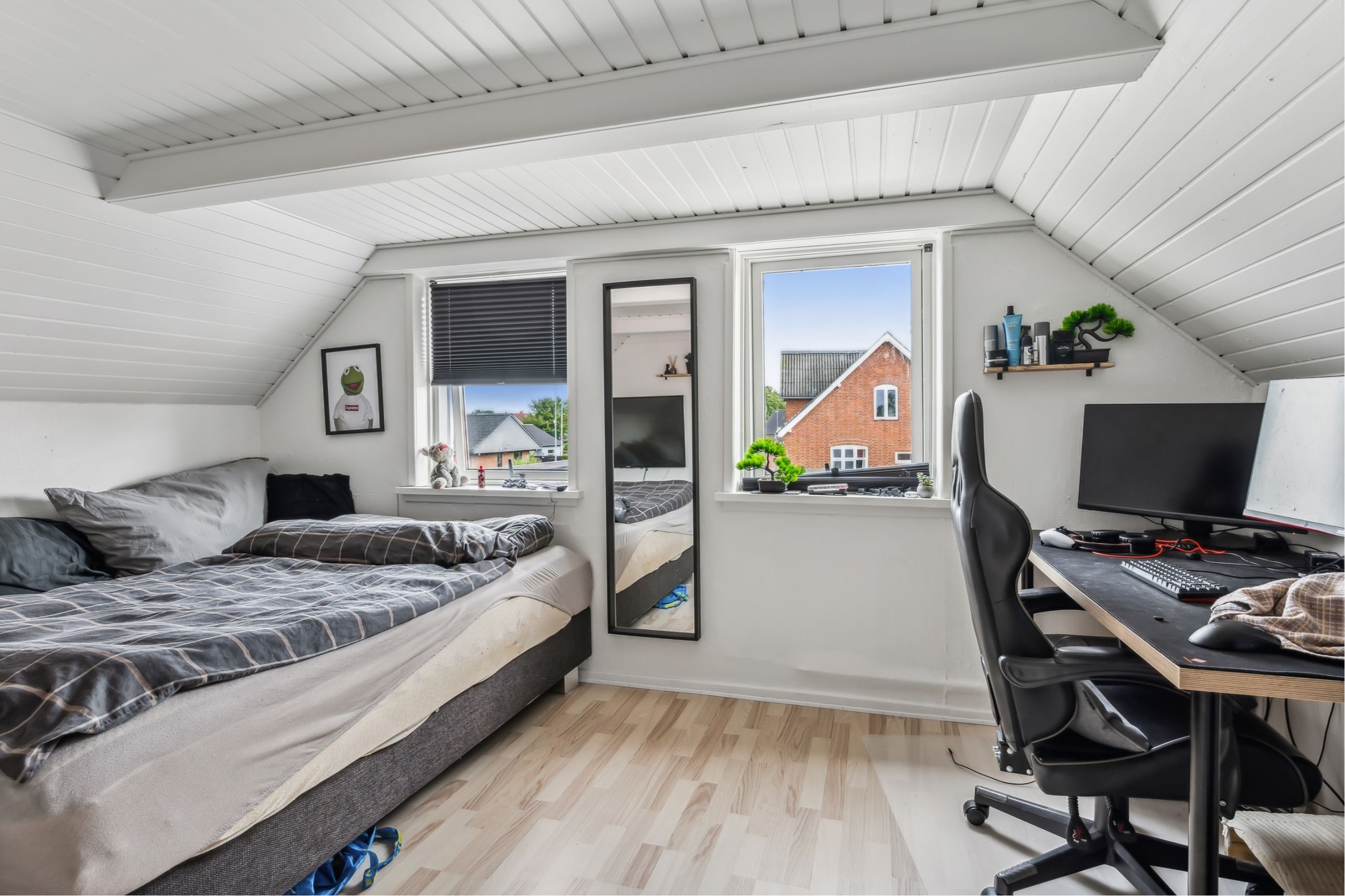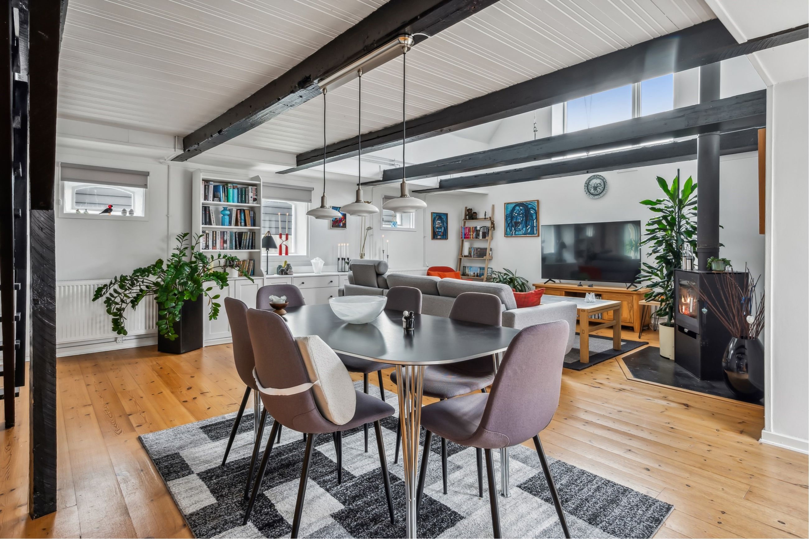 Parcelvej 1A: Stor lejlighed på 136m² bolig, med bl.a. stort køkken/alrum og en lækker stue med loft til kip. Her er også egen terrasse og disponibelt rum i kælderen (15m²).