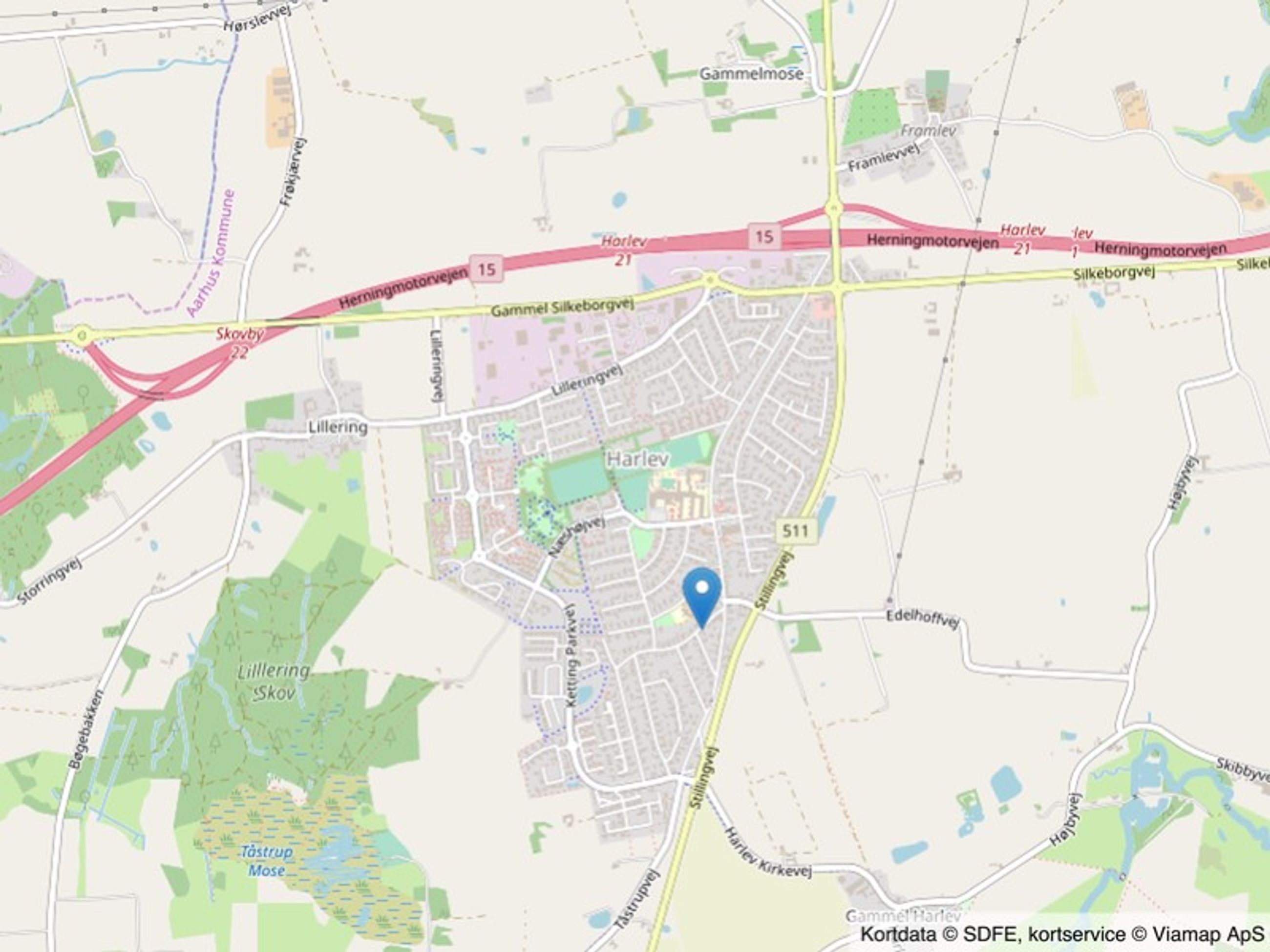 OMRÅDET: Centralt beliggende i Harlev, med gåafstand til alle byens faciliteter som bl.a. flere supermarkeder, et af Aarhus kommunes bedste idrætsanlæg med bl.a. svømmehal, idrætshal, tennisbaner mv.. Lige ved ejendommen går der bybusser til Aarhus C, og der er kun 1,5 km. til motorvejstilkørslen.