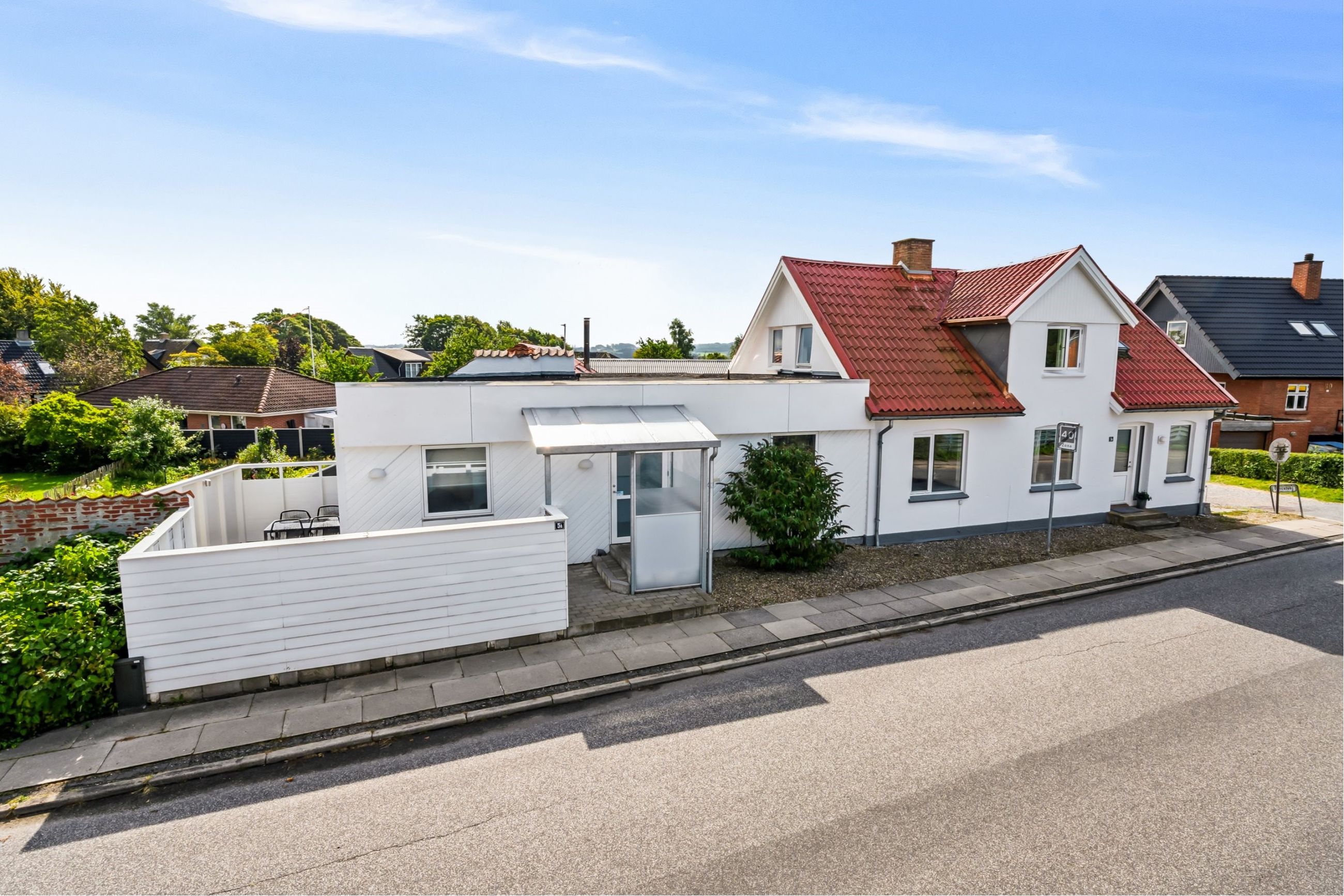 EJENDOMMEN: Ejendommen er ombygget og renoveret og fremstår således i rigtig flot stand. Her er godt parkeringsareal og en fin have med græs. Hver lejlighed har egen adresse.