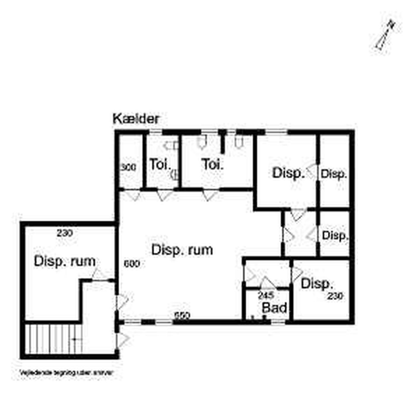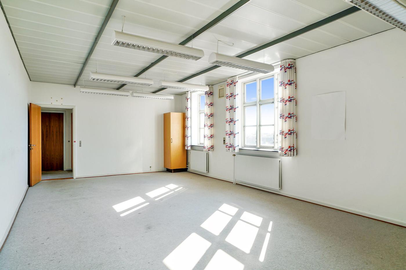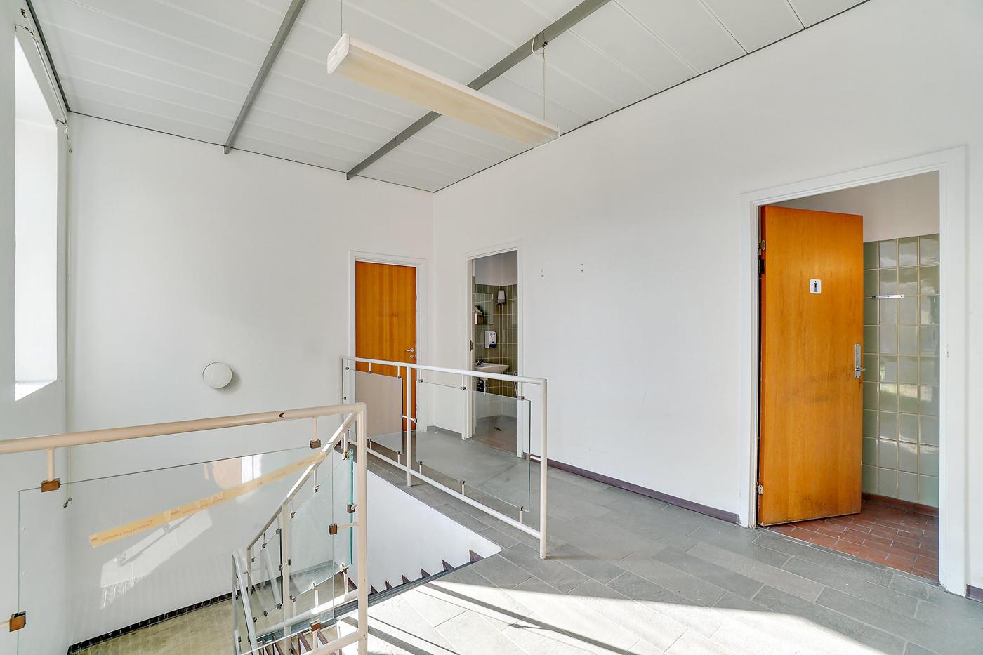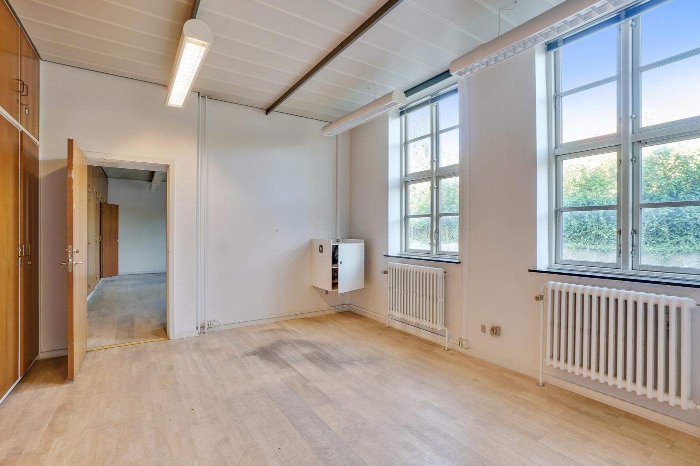 Der er kælder, stue og første sal samt loftrum i kontordelen. Kælderen er indrettet med ældre toiletter/badeforhold, fyrrum og flere opbevaringsrum samt et lille værksted. Der er krybekælder. Der er en udgang og 2 trappeopgange til stueetagen. Stueetagen har flere kontorer og et storrumskontor samt toiletforhold og adgang til lageret.