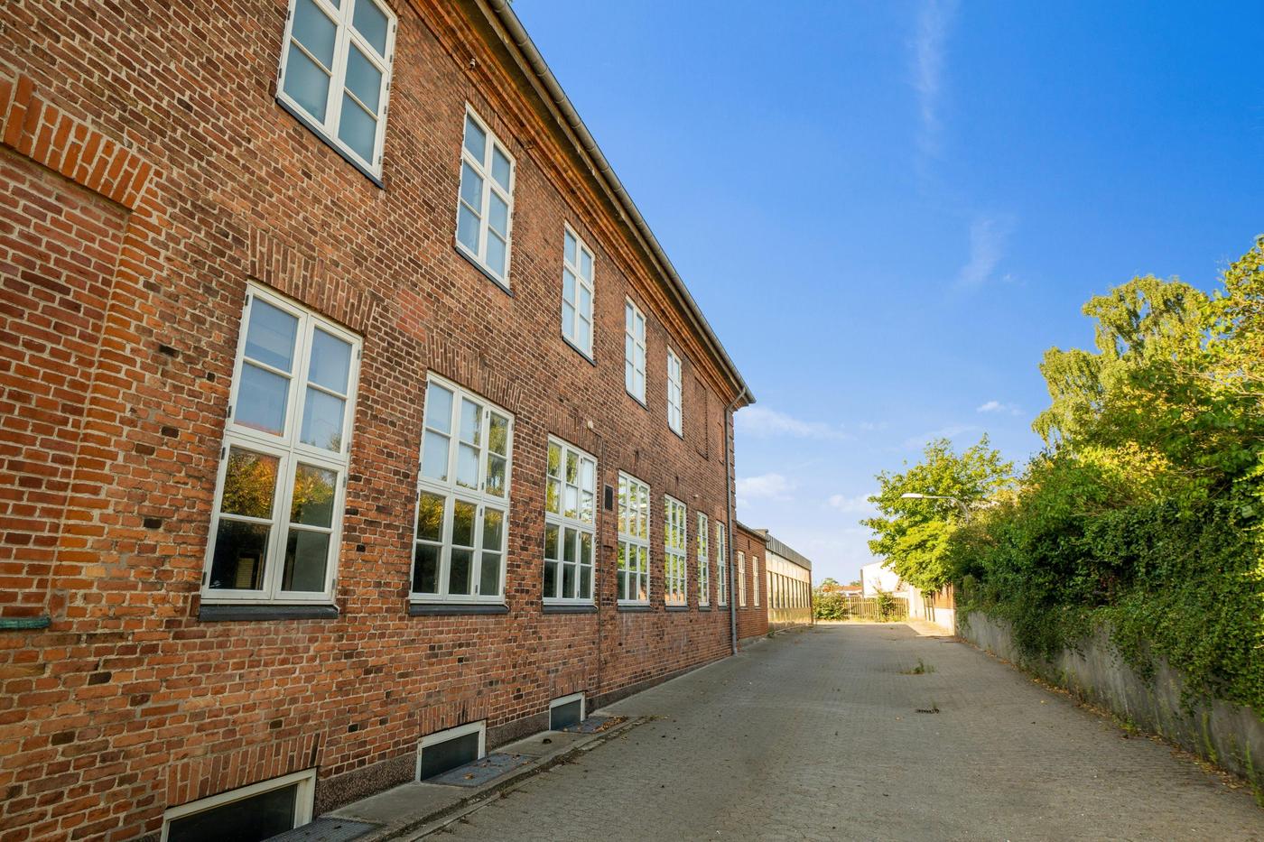 Udenomsarealer. Ved siden af kontorbygningen er der en fin aflåst gård til cykelparkering. Langs kontorbygningen på den anden side er der en bred indkørsel med aflåst port til lagerbygningen. Der er også god plads til parkering og oplagring ved lagerbygningen.