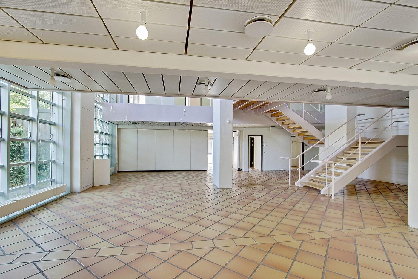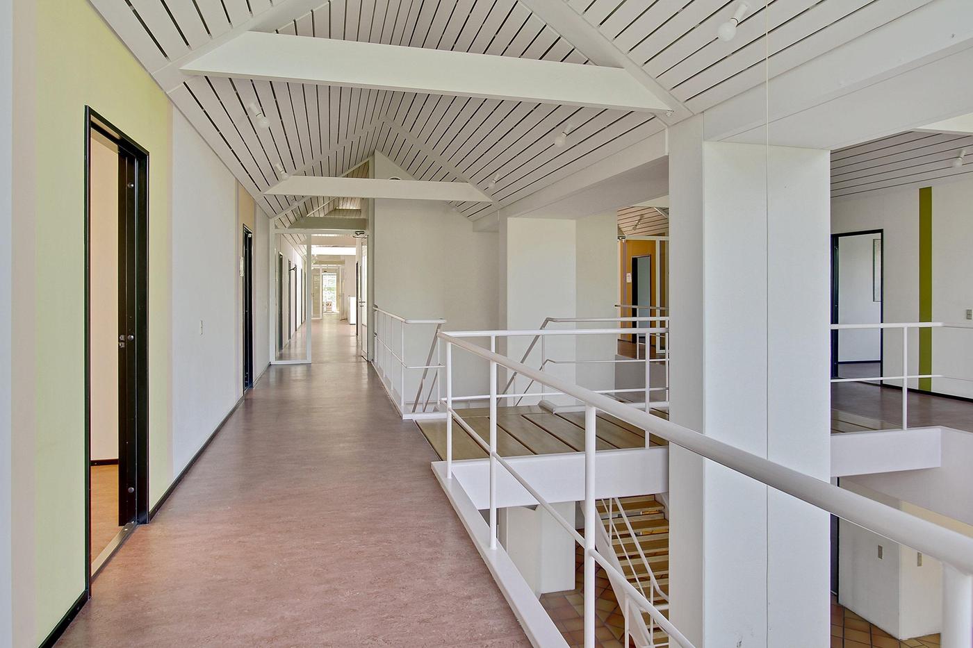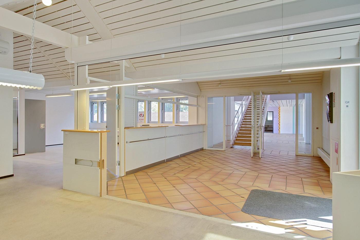 Stueetagen er indrettet som administrationsområde med kontorer i varierende størrelser, toiletforhold og trappeopgang samt nedgang til kælderen. Første sal er ligeledes indrettet med flere kontorer og toiletforhold. Gulvene er belagt med vinyl og der er installationskanaler langs vinduerne.