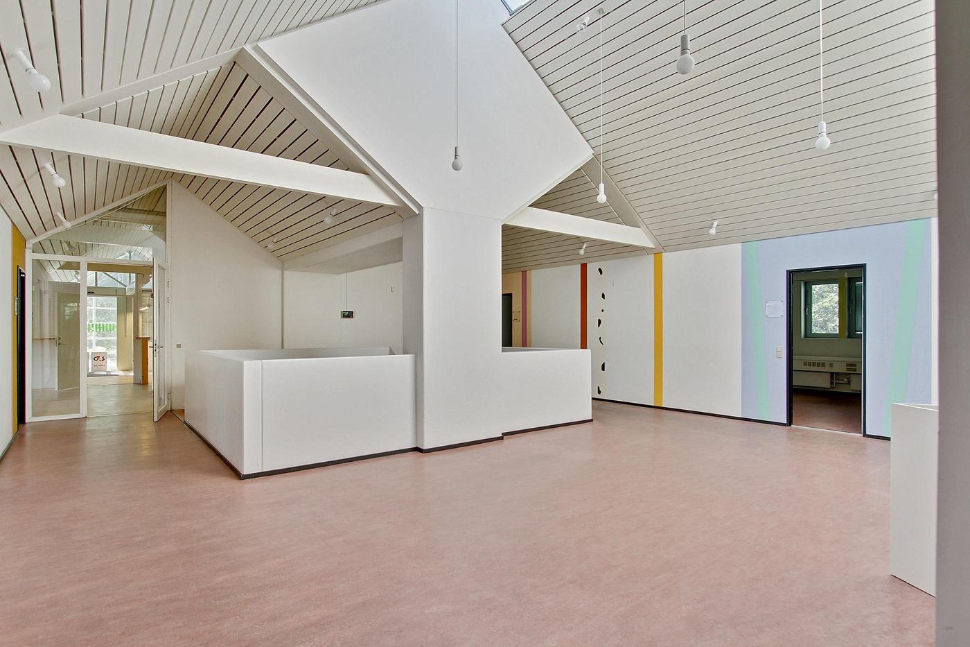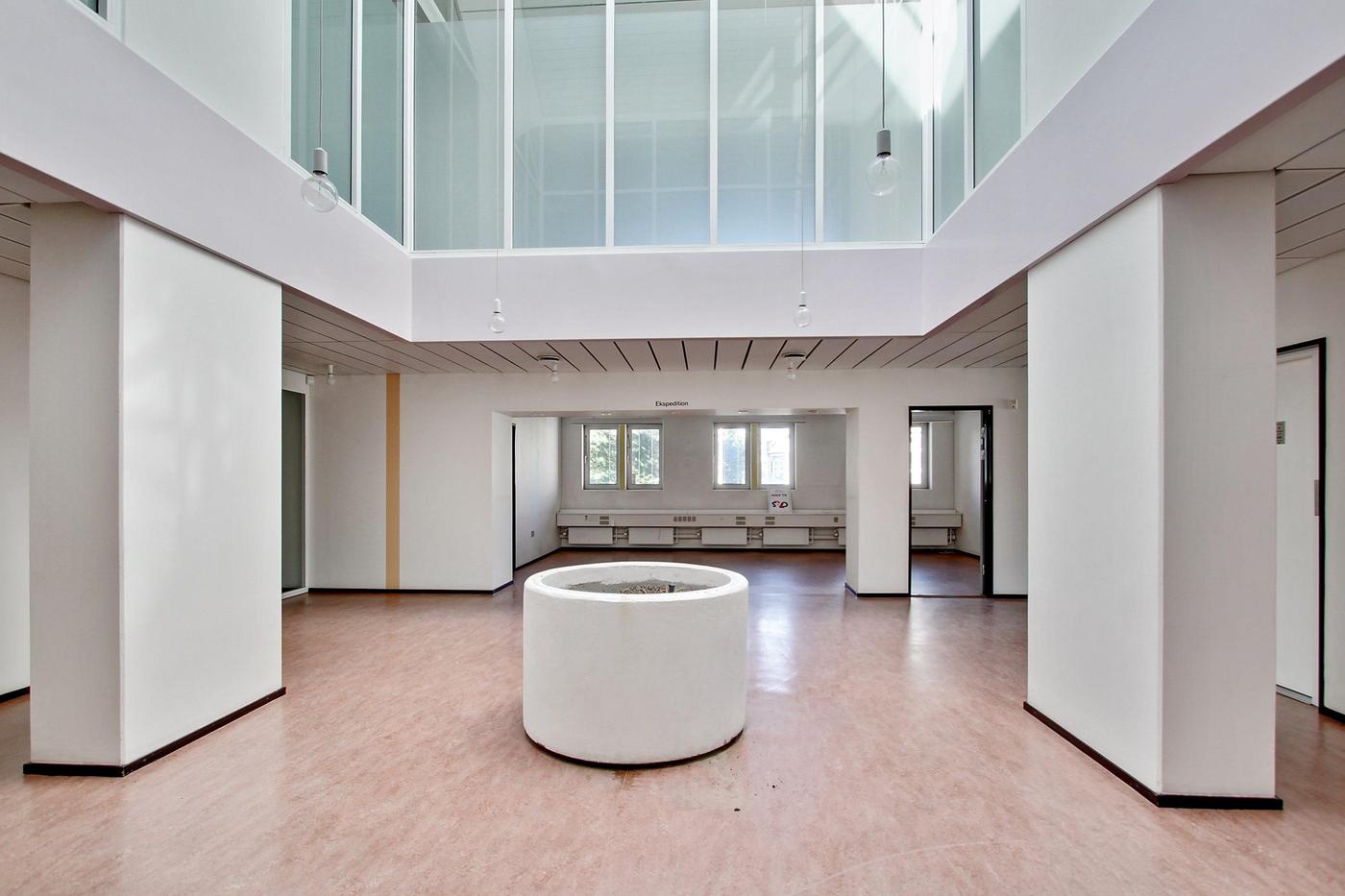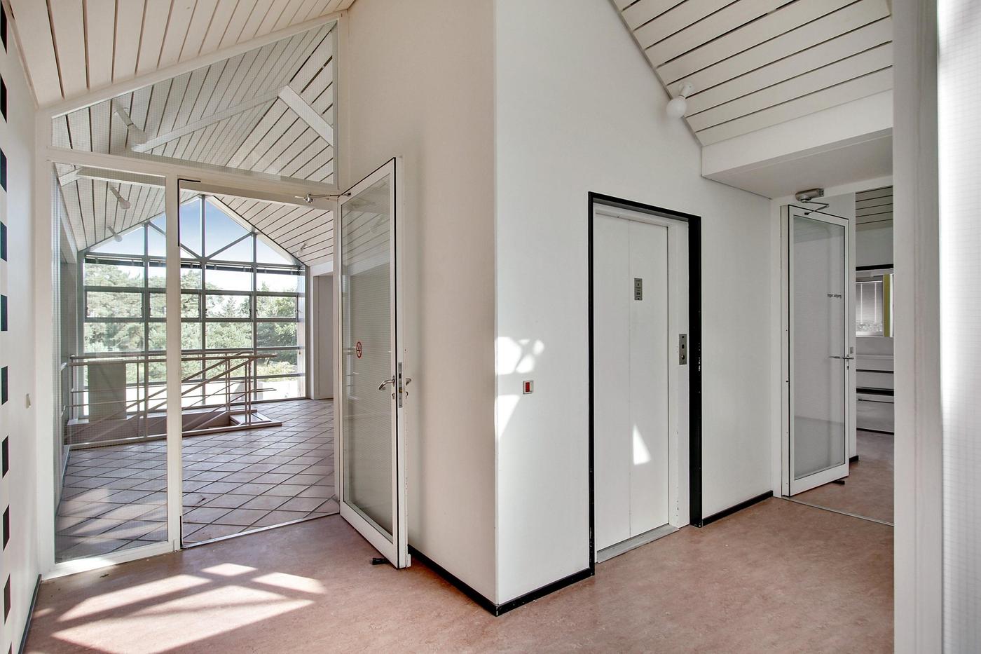 Stueetagen er indrettet som administrationsområde med kontorer i varierende størrelser, toiletforhold og trappeopgang samt nedgang til kælderen. Første sal er ligeledes indrettet med flere kontorer og toiletforhold. Gulvene er belagt med vinyl og der er installationskanaler langs vinduerne.