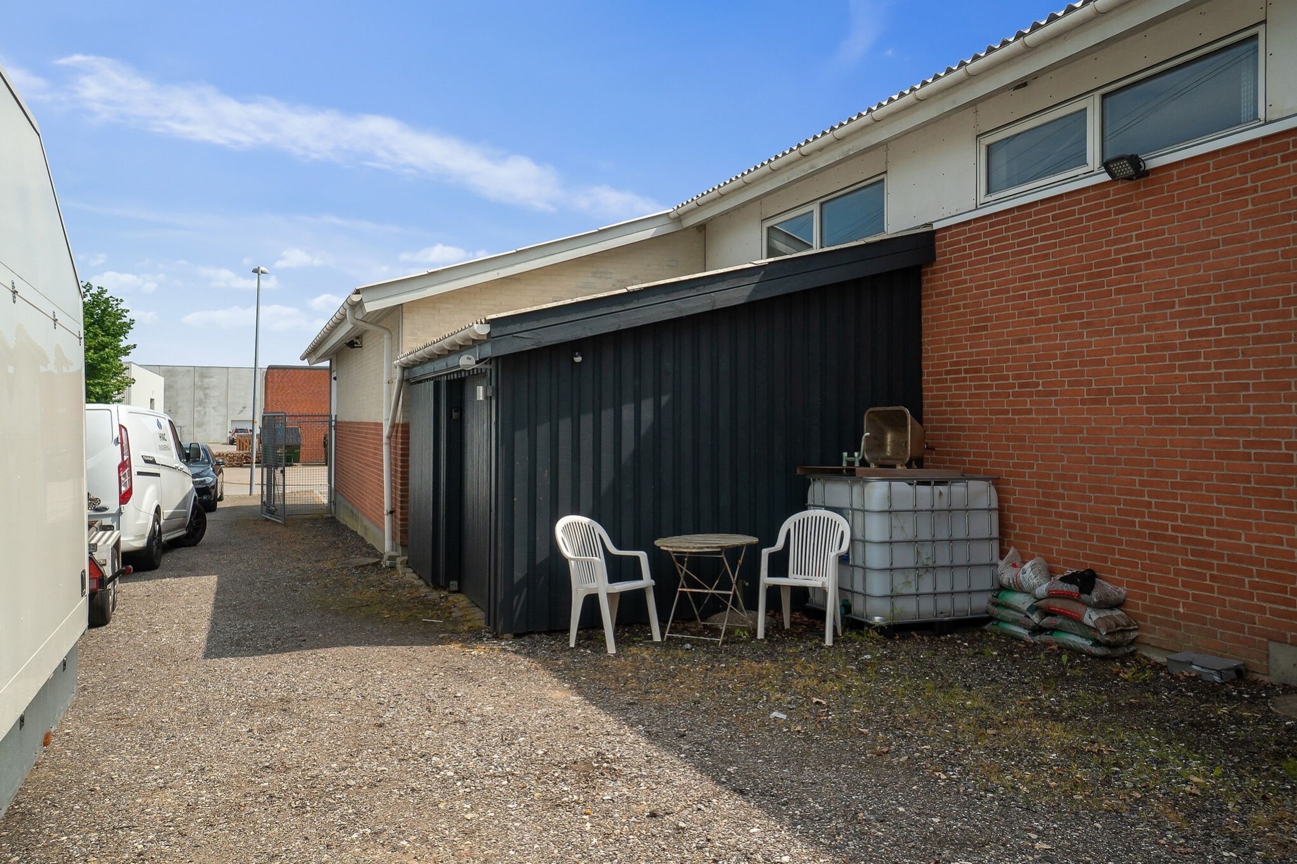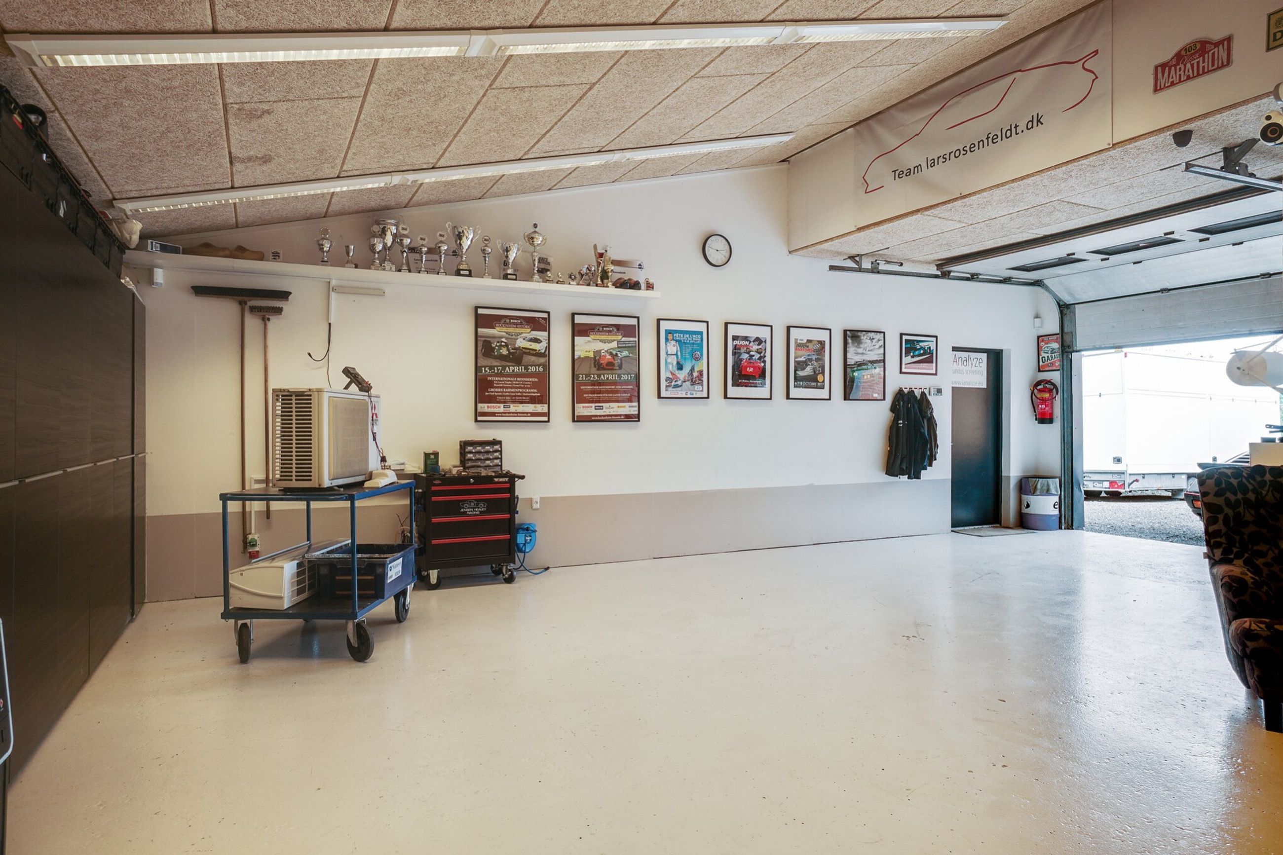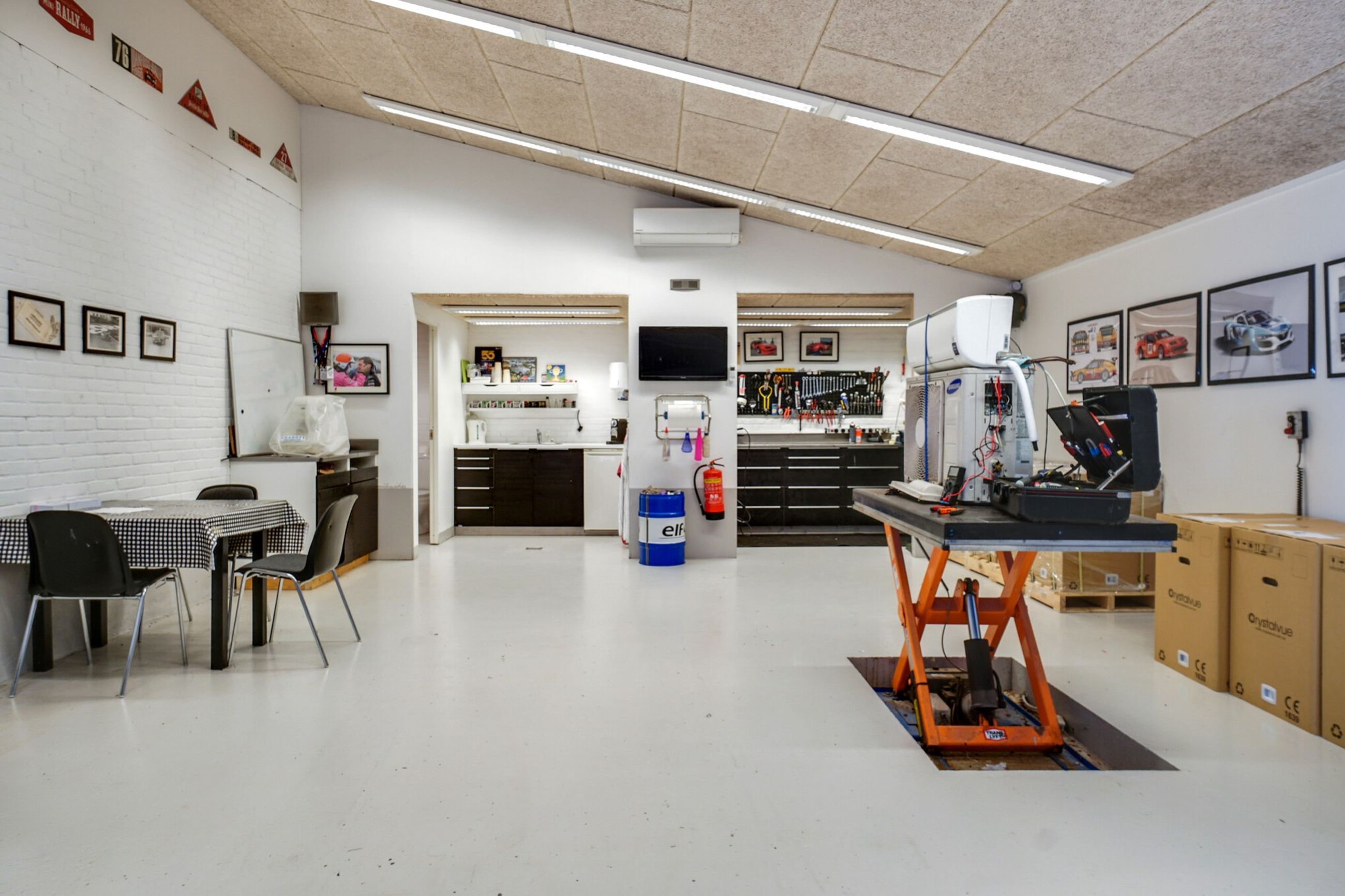 Ejendommen Erhvervsejerlejlighed med mange anvendelsesmuligheder. Perfekt for nethandel, håndværker, mindre produktion, værksted mv. Erhvervsarealet på 171 m² er primært fordelt på en stor garage med god lofthøjde samt et stort lokale - begge med egen portadgang. Her er endvidere te-køkken og toilet. Lokalet er opvarmet med varmepumpe, og er tilsluttet el, vand og kloak.