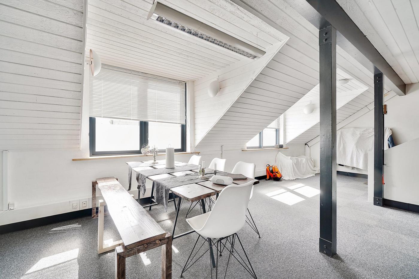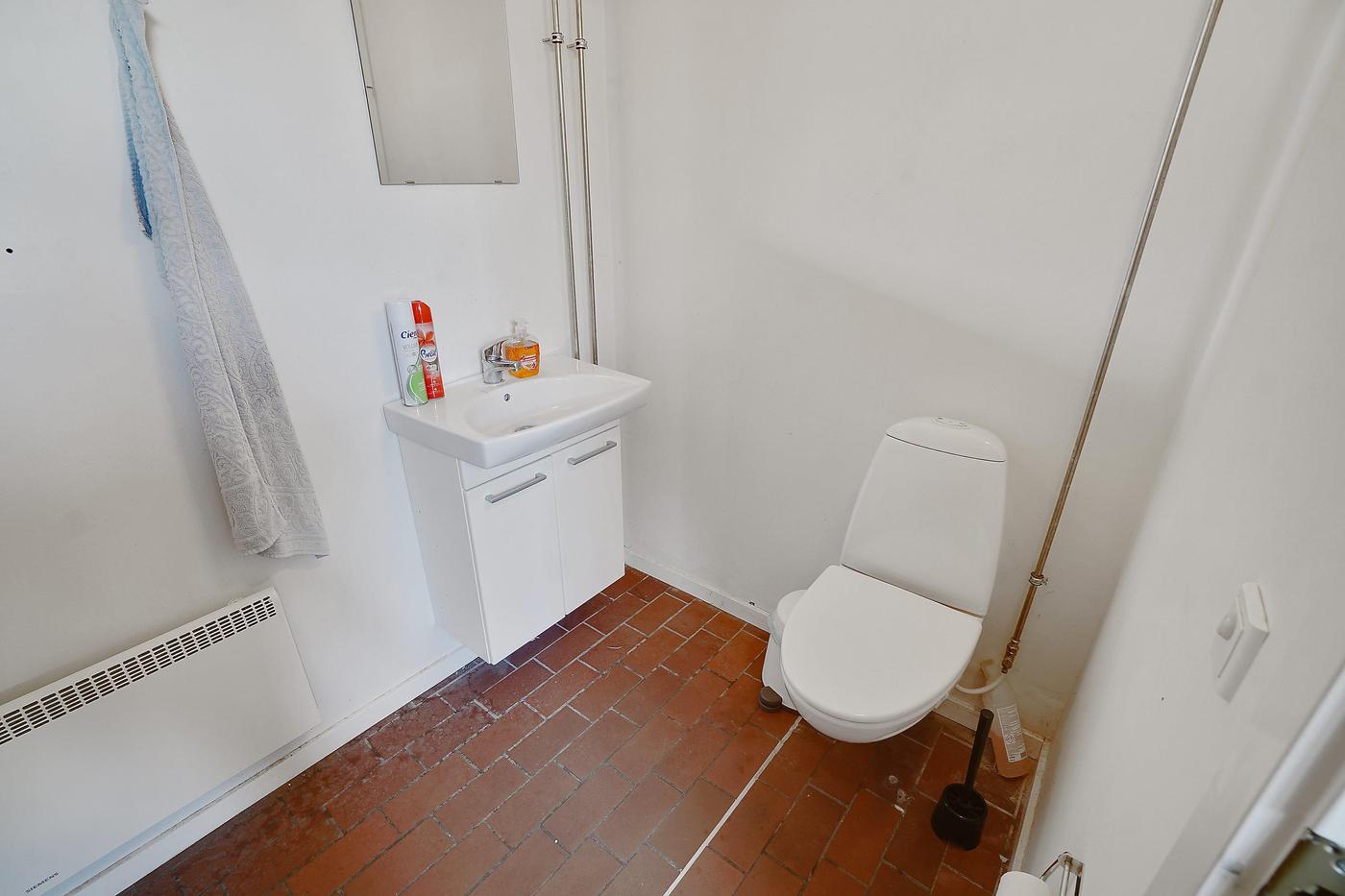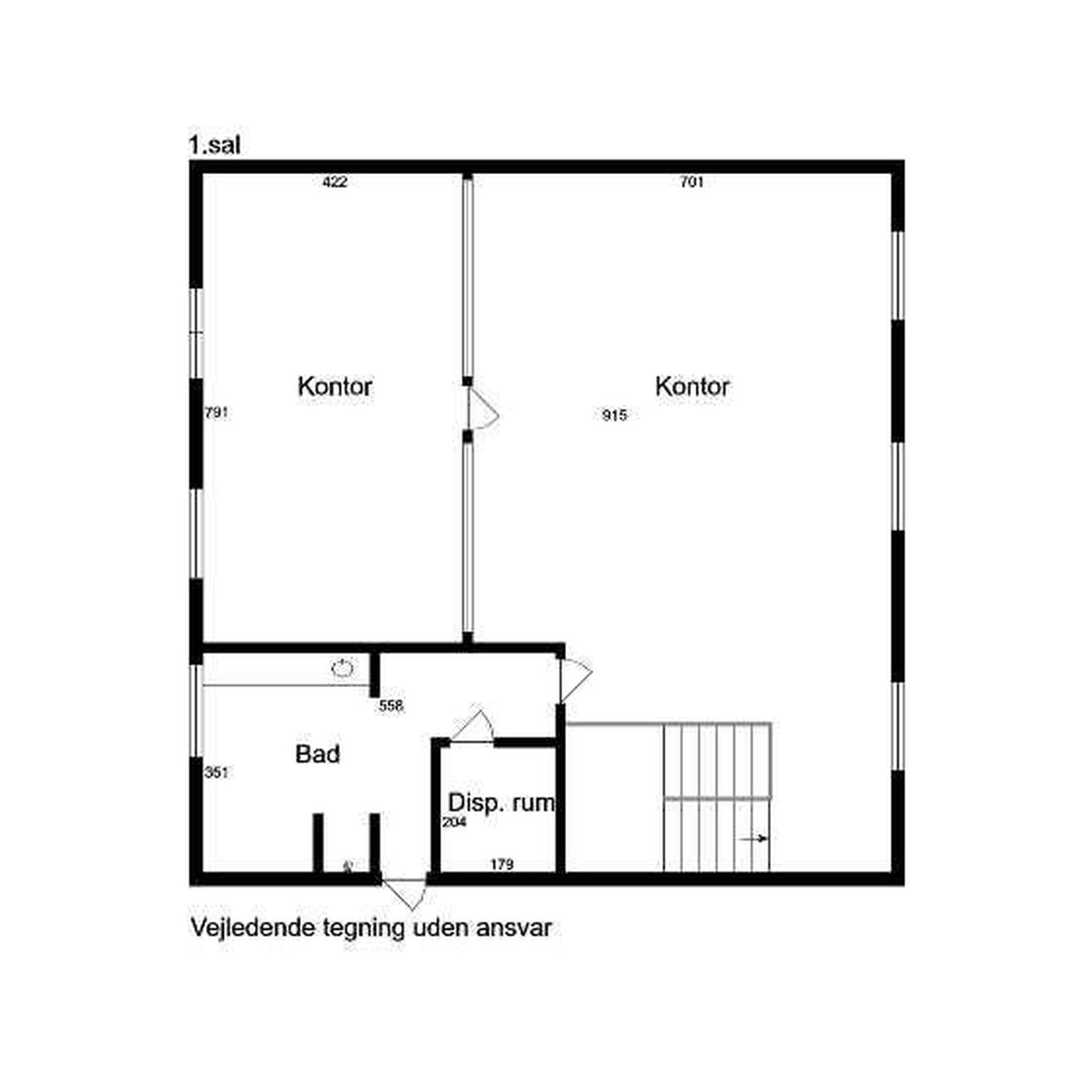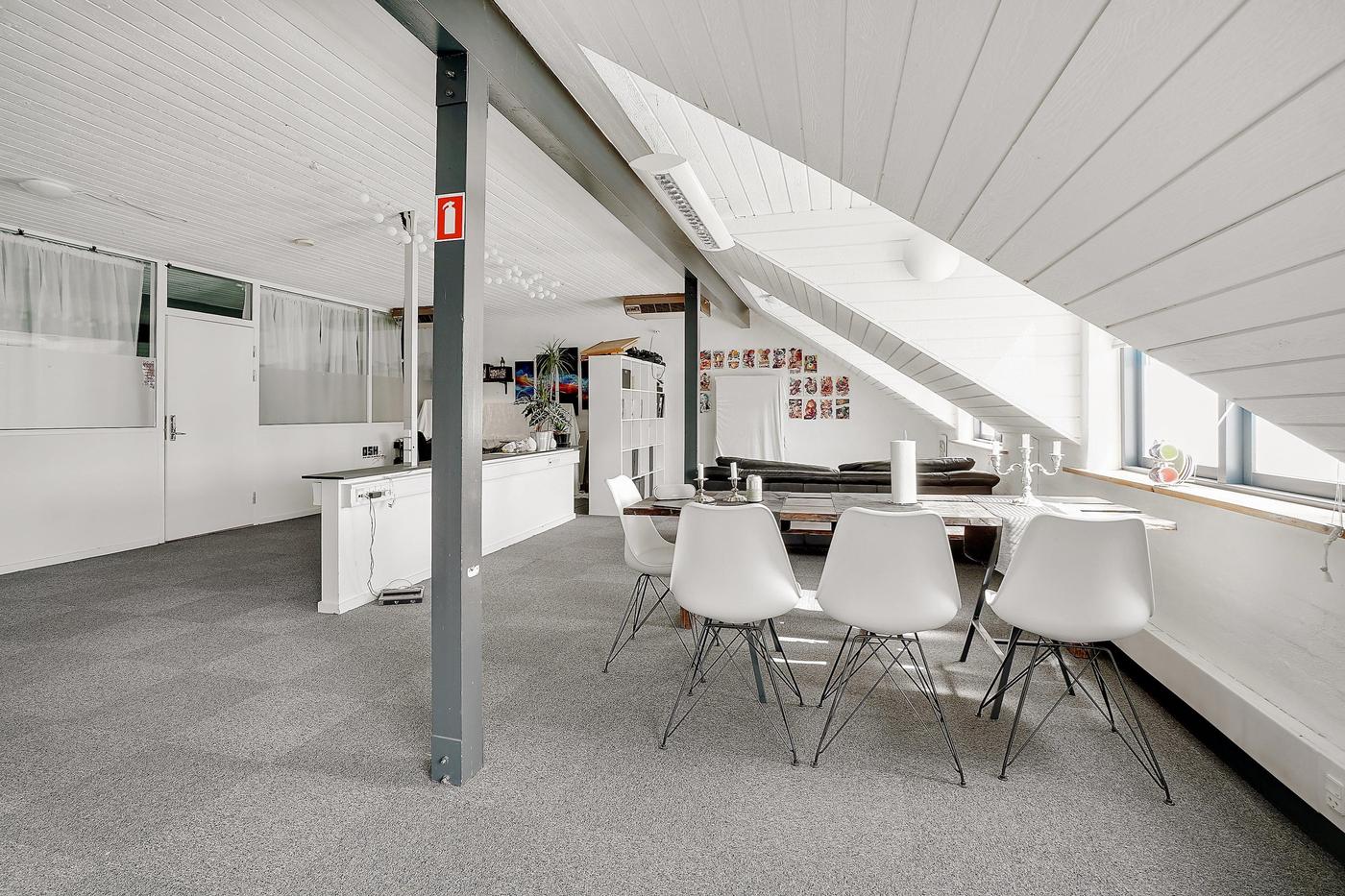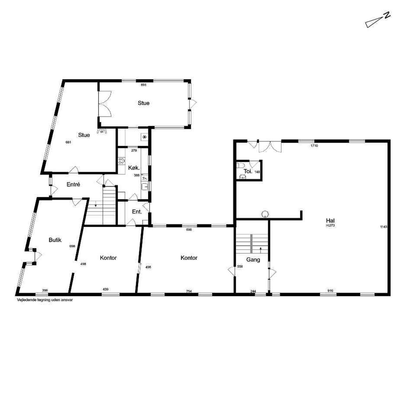 Beskrivelse Ejendommen har et bebygget areal på 375 m2 og indeholder en selvstændig bolig og et erhvervslejemål. Boligen er på 120 m2 og udlejet og erhvervsareal er på 472 m2 og også udlejet. Bygningen er opført i 1894 og tilbygget i 1979. Huset er opført i mursten og der er tegl på taget. Boligen indeholder stue/værelser, køkken og toiletforhold. Erhvervsdelen indeholder kontorareal som tidligere har været anvendt til butik samt et stort produktionsareal som i dag anvendes til trykkeri. Der er el-varme i produktionen og fjernvarme i kontorarealet. Loftet er beklædt med lyddæmpende plader med nedhængte lamper. Gulvet er belagt med fliser. Førstesalen er indrettet med mødelokaler og køkken og toilet forhold.