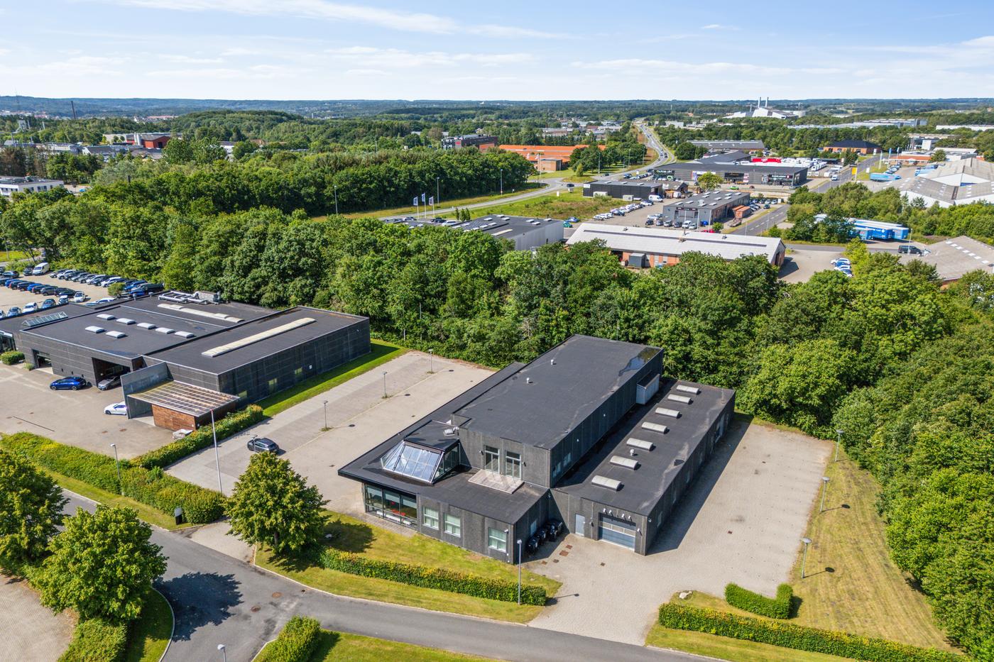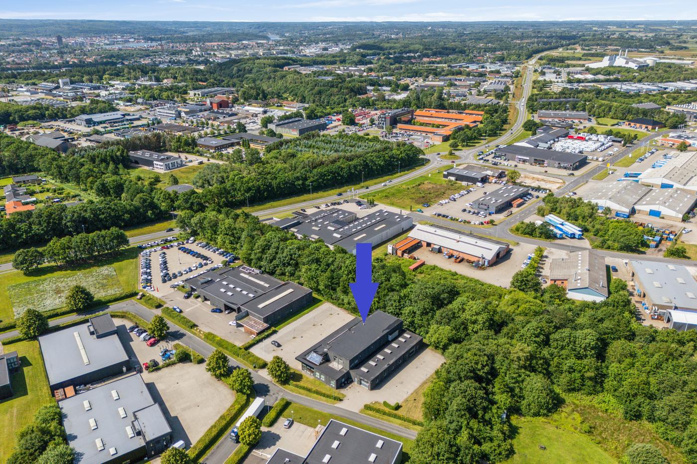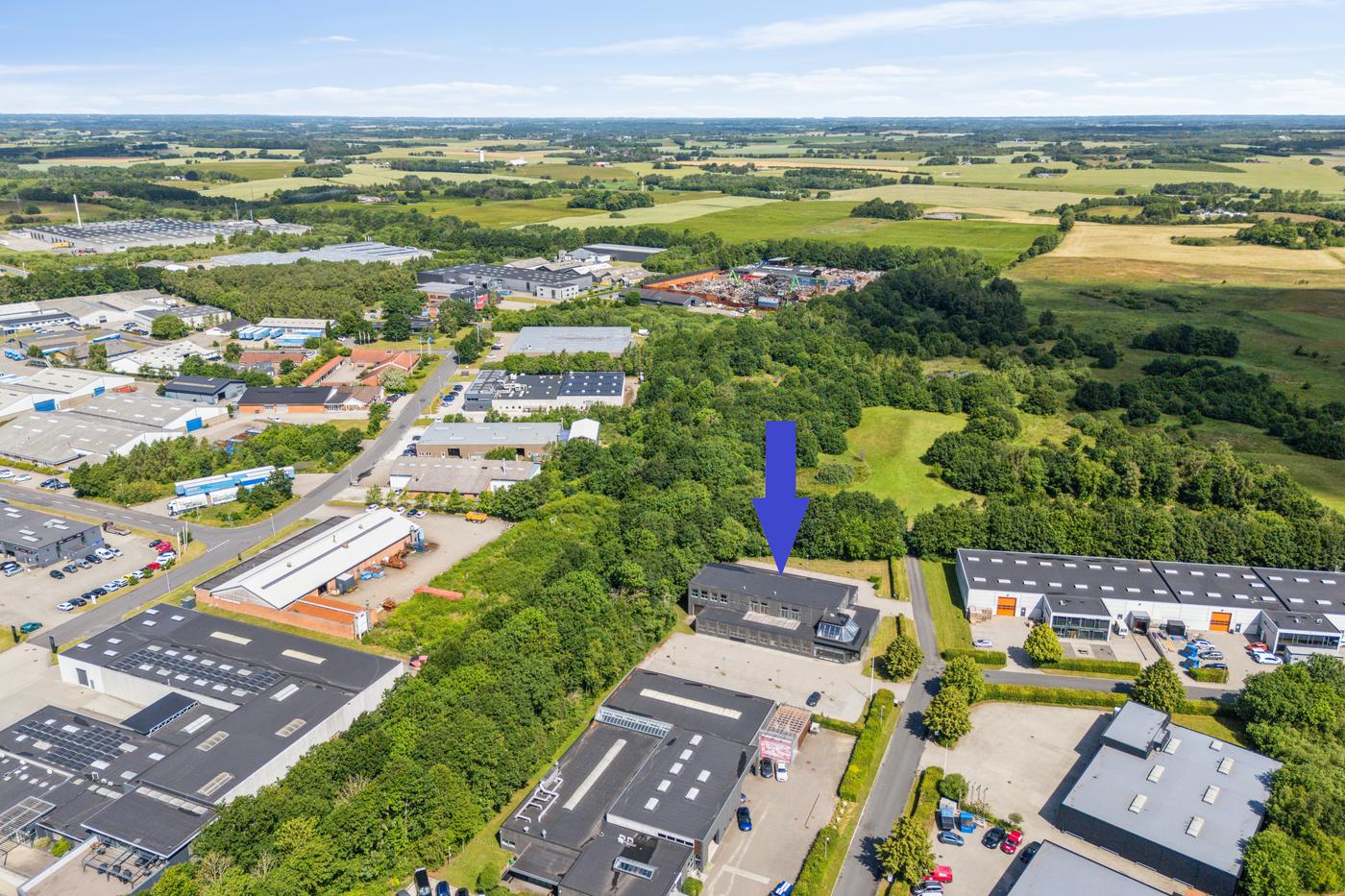 Silkeborg nord er et særdels attraktivt erhvervsområde, hvor de nærmeste naboer bl.a. omfatter: Sinus Installation, SCADA International, OL Beslag, Ahlsell, Nordic Sense, Kjellerup VVS, Oskars bud- og flytteforretning, Arepa, Norlys og mange flere. Med motorvejen kun få minutter væk er ejendommen nem at komme til for både personale og kunder. Ejendommen er beliggende på en blind vej, som støder op til grønne arealer, så beliggenheden er rolig. Et ideelt sted for kontor og handelsaktiviteter.