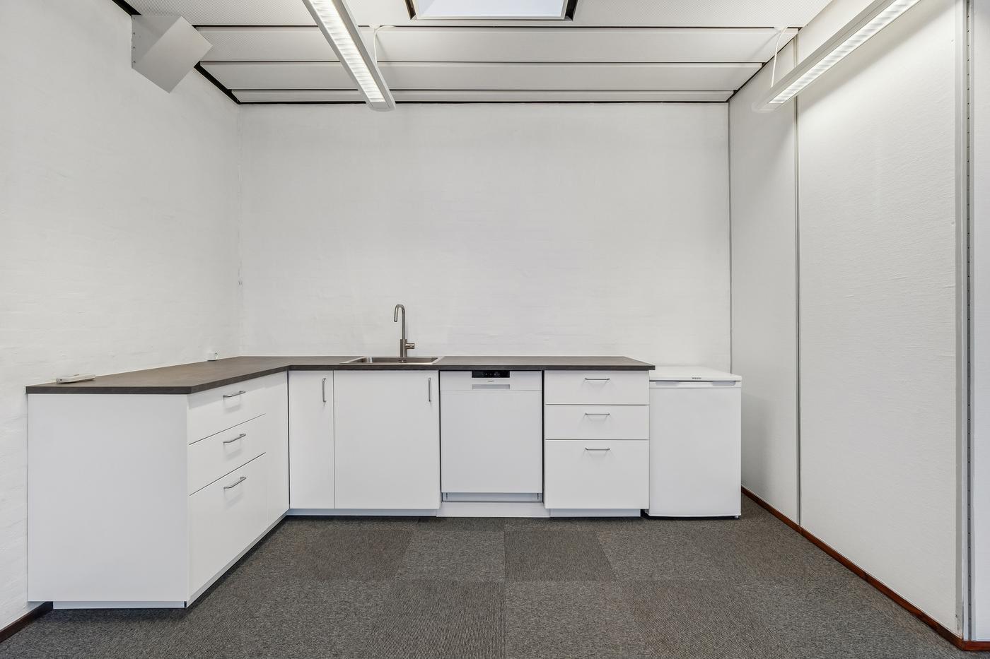Lejemålet er udstyret med både grundbelysning og ventilationsanlæg, hvilket sikrer et godt indeklima og en komfortabel arbejdsdag året rundt.