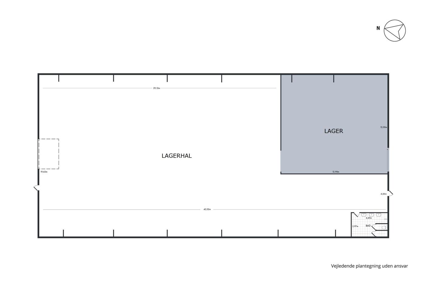 Helt regulær og opvarmet lagerhal på 864 m² med god vendeplads og gode adgangsforhold i Virklund, ca. 4 km syd for Silkeborg C.