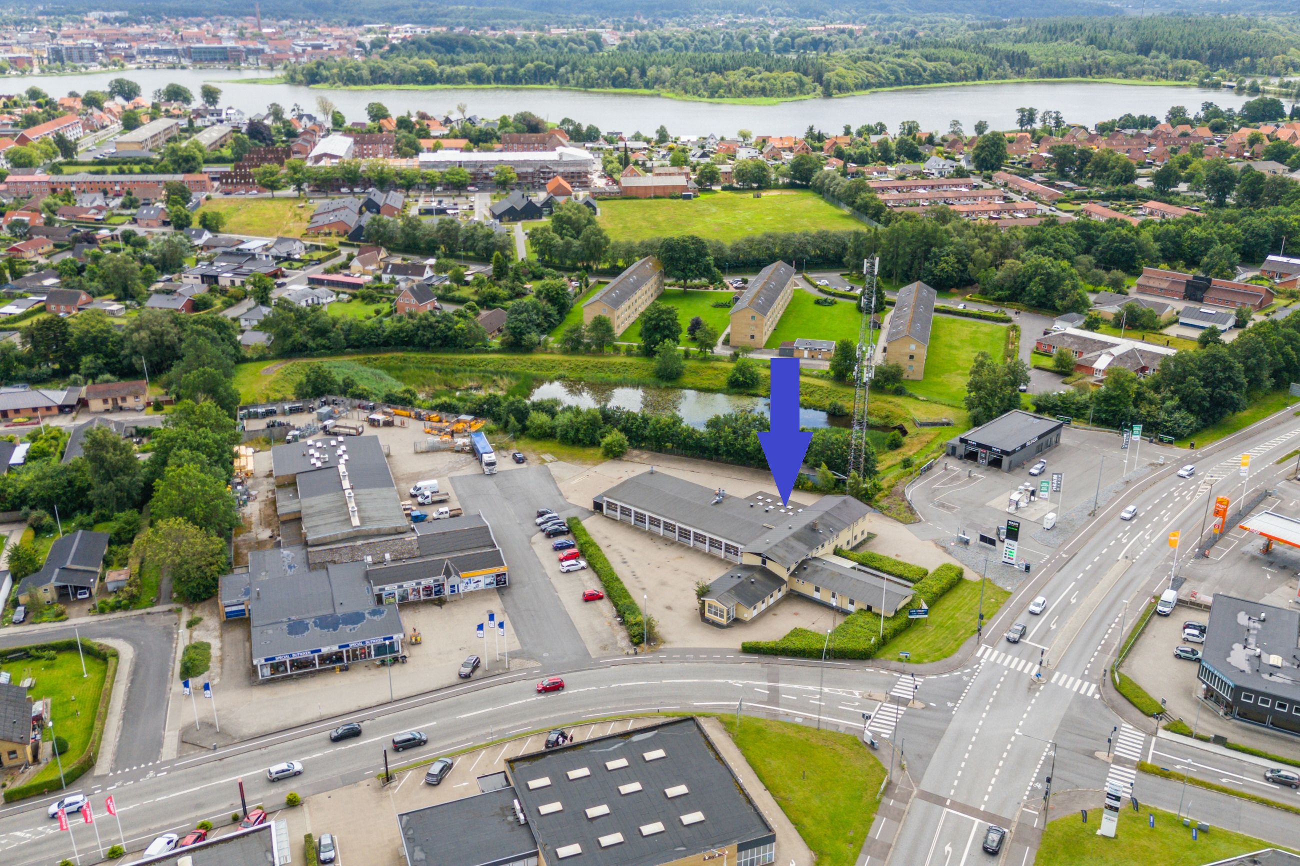 Nørrevænget 2A, 8600 Silkeborg: En ejendom med et markant potentiale - både som brugerejendom og som udviklingscase. Ejendommen, der tidligere fungerede som Falck station, ligger på en 4.864 m² stor grund, hvilket giver fremragende muligheder for nybyggeri, ombygning eller udvidelse. Den synlige placering ved den vestlige indgang til Nørrevænget gør ejendommen attraktiv for virksomheder, der ønsker en fremtrædende og iøjnefaldende placering. Området egner sig særligt til alle slags erhverv, som drager fordel af synlighed og gode tilkørselsforhold - herunder bilforhandlere, håndværk/service, pladskrævende detail, convenience-orienterede koncepter eller liberale erhverv, afhængigt af kommunale tilladelser.