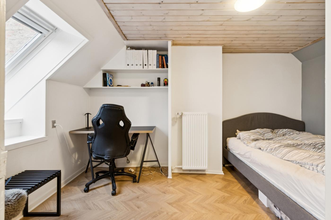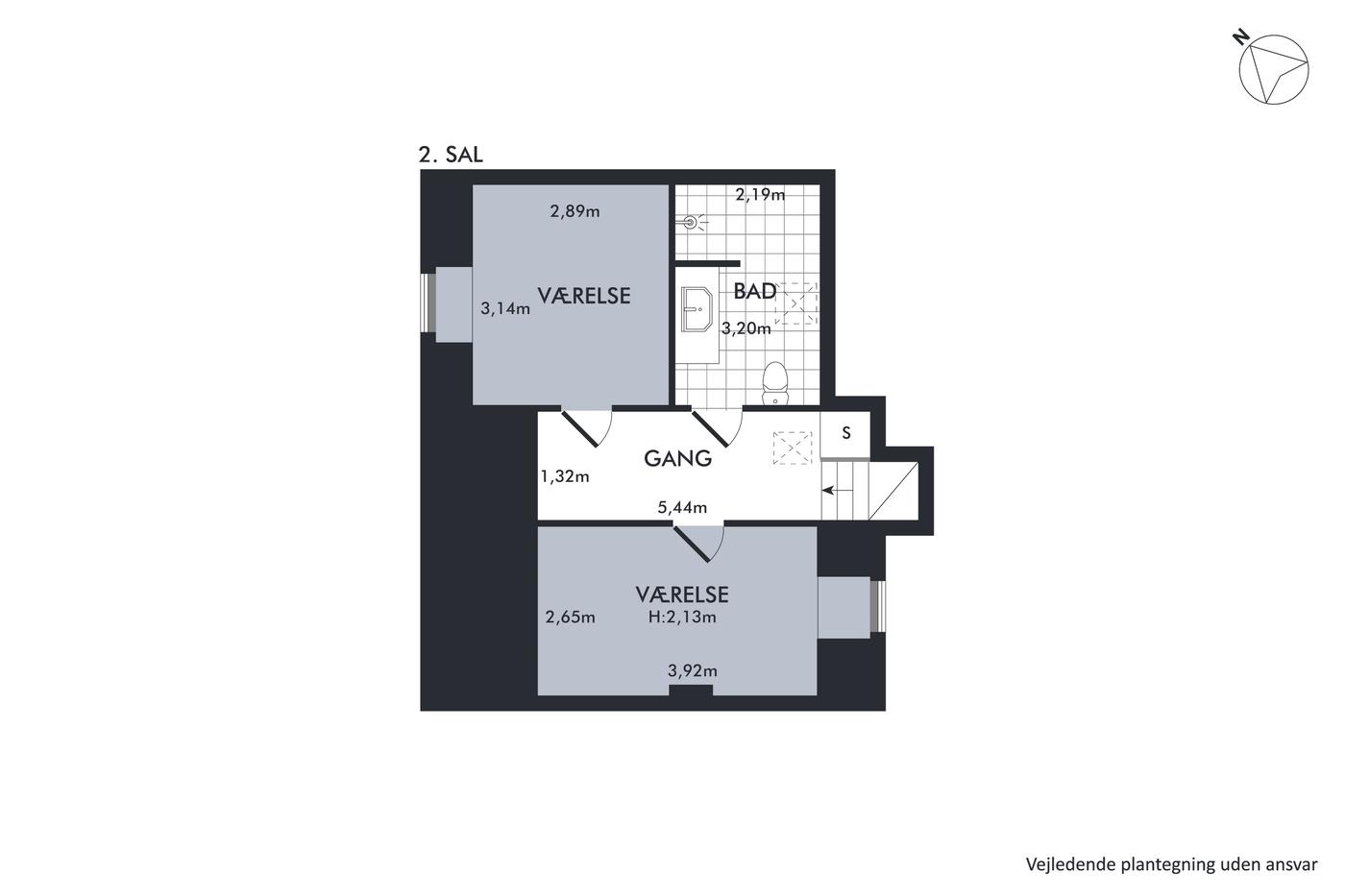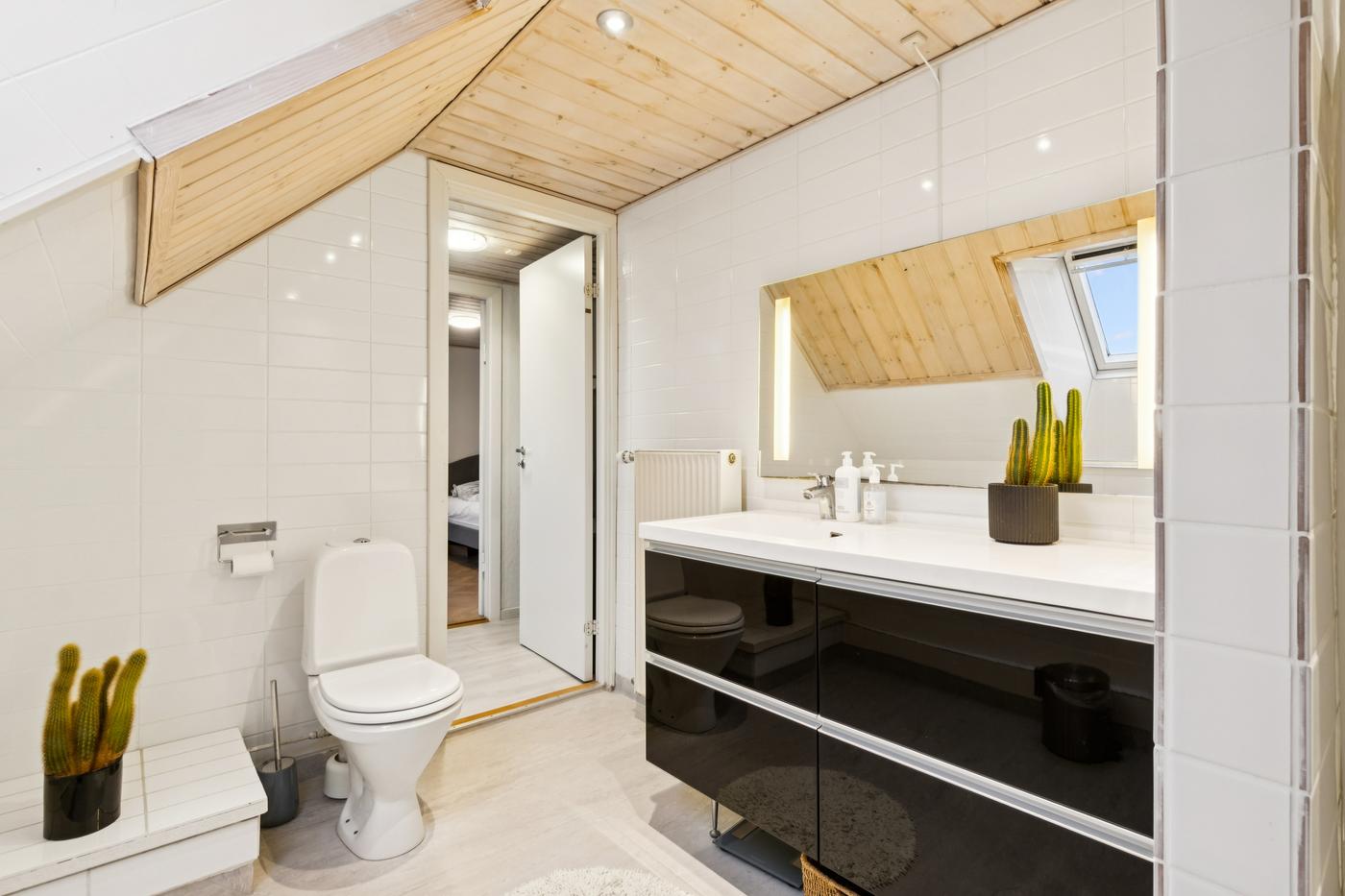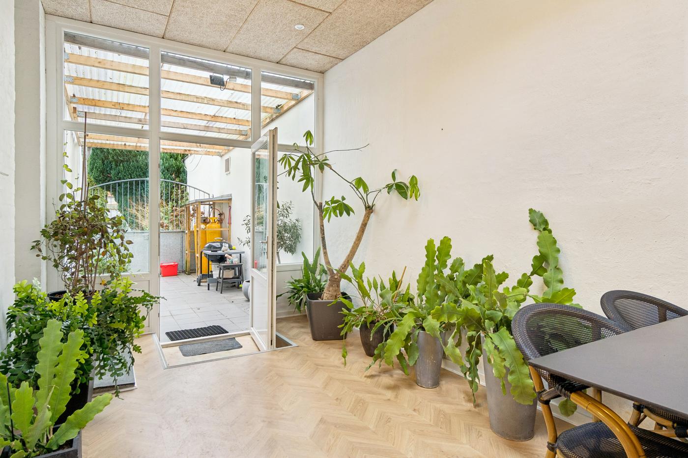 Boligdelen strækker sig over 1. og 2. sal og byder på en charmerende indretning med god plads. På 1. sal finder du entre, køkken, to stuer - den ene med direkte udgang til en sydvendt terrasse, hvor solen kan nydes dagen lang - samt et soveværelse. På 2. sal er der yderligere to værelser og et badeværelse, hvilket giver fleksibilitet til både familieliv og gæsteværelser.