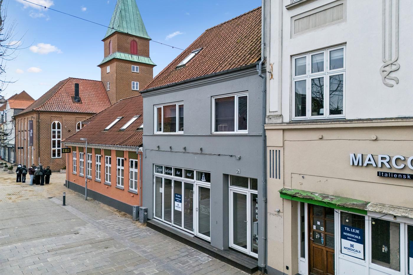 Velkommen til Nygade 21 - en ejendom med flere muligheder, beliggende i Silkeborgs mest charmerende latinerkvarter i midtbyen ved gågaderne. Her får du en unik mulighed for at investere i en ejendom, der kombinerer erhverv i stueplan med en rummelig bolig på de øvre etager. Ejendommen kan både ses som en investeringsejendom, men også til eget brug for den, som selv vil drive erhverv i stueplan og bo i lejligheden ovenpå, ligesom nuværende ejer har gjort.