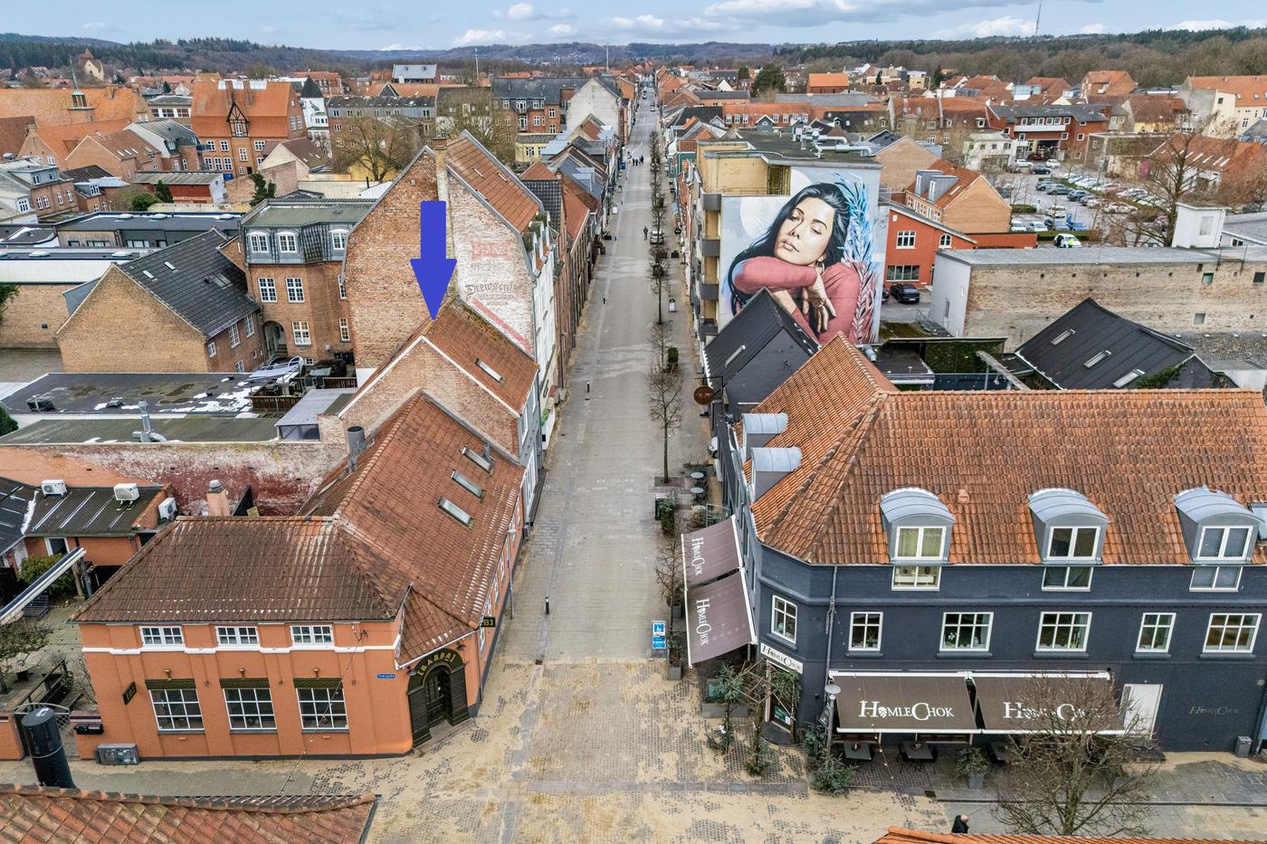 Latinerkvarteret i Silkeborg er kendt for sin hyggelige og stemningsfulde atmosfære. Her finder du et væld af caféer, restauranter og specialbutikker, som tiltrækker både lokale og besøgende året rundt. Ejendommen ligger kun få minutters gang fra torvet og lige op ad gågaden, og med kort afstand til motorvejen er Aarhus og Herning inden for 30-40 minutters kørsel.