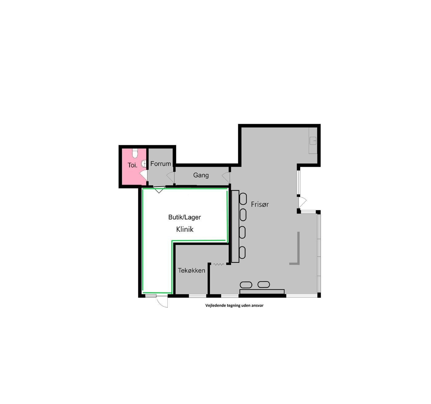Sjældent udbudt butik / kontor / klinik på ca. 20 m² inkl. adgang til fælles toilet