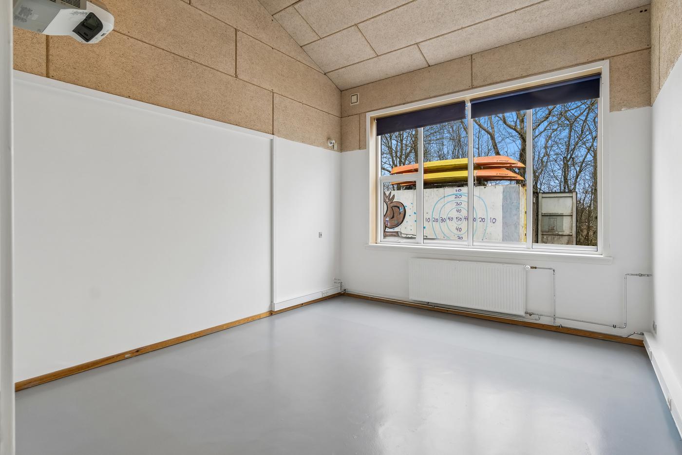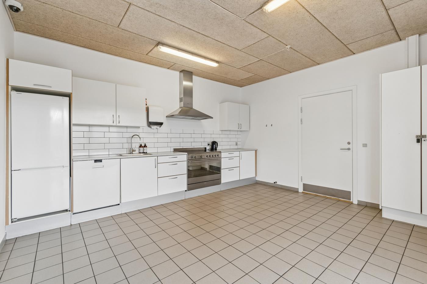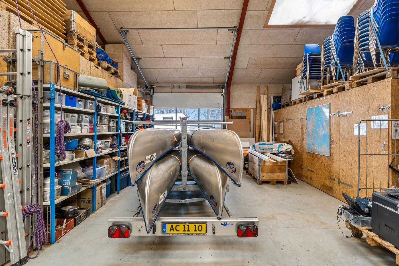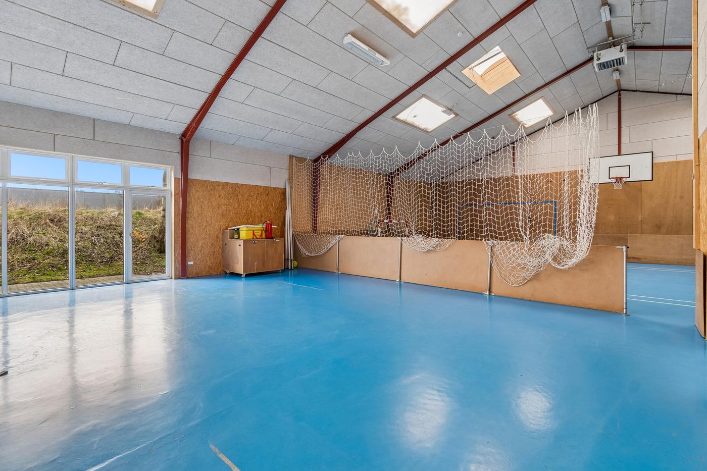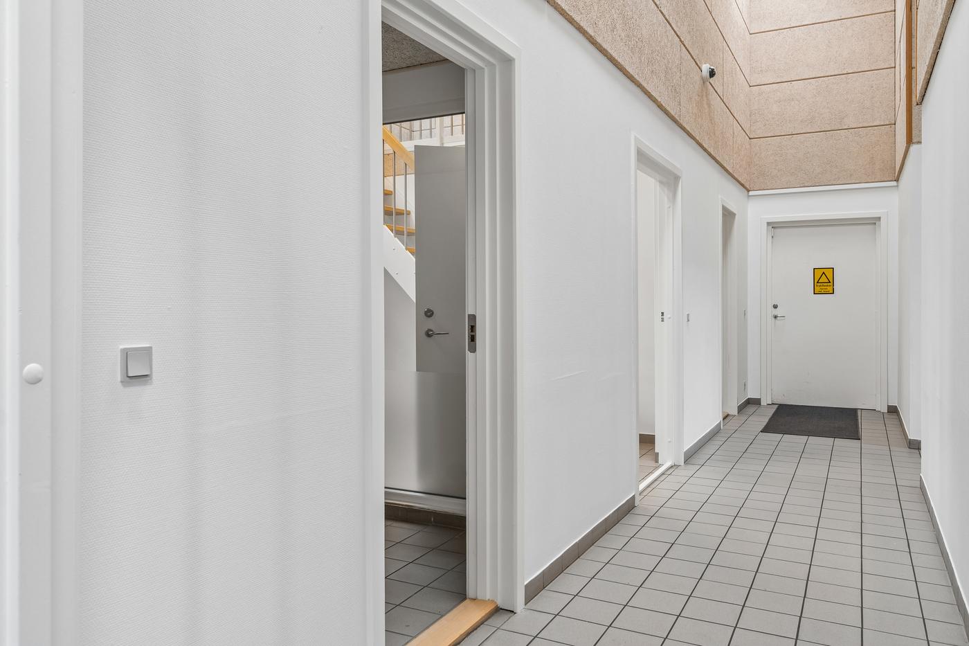 På hver side af kontorafsnittet ligger to gode, højloftede haller på cirka 200 m² og 270 m². Den største hal har senest fungeret som multisal med lounge og aktiviteter som badminton, basket og hockey, hvorfor en kombination af erhvervs- og hobbybrug, nicheerhverv, showroom, lager eller alternative koncepter kan tænkes her.