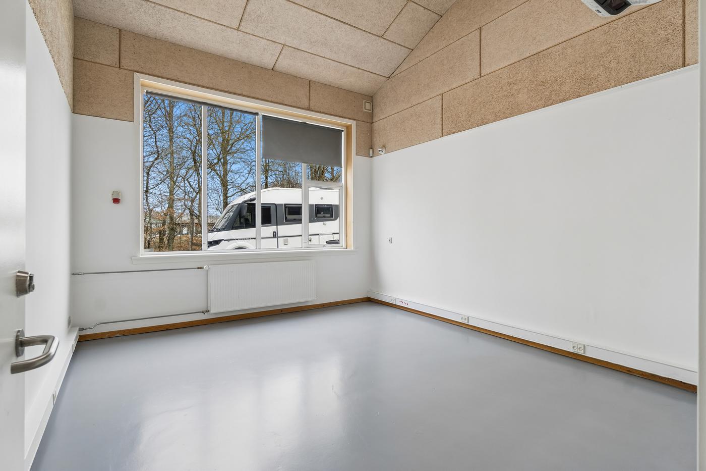 Ejendommen rummer i alt 598 m² i grundplan og er opført i 2009. Den centrale kerne består af et kontor- og velfærdsafsnit med personalefaciliteter, køkken, bad, kontor- og mødelokaler, samt et ca. 30 m² stort ekstra kontor (ikke BBR-registreret) indrettet på 1. sal med vinduer til hallen og ovenlys.