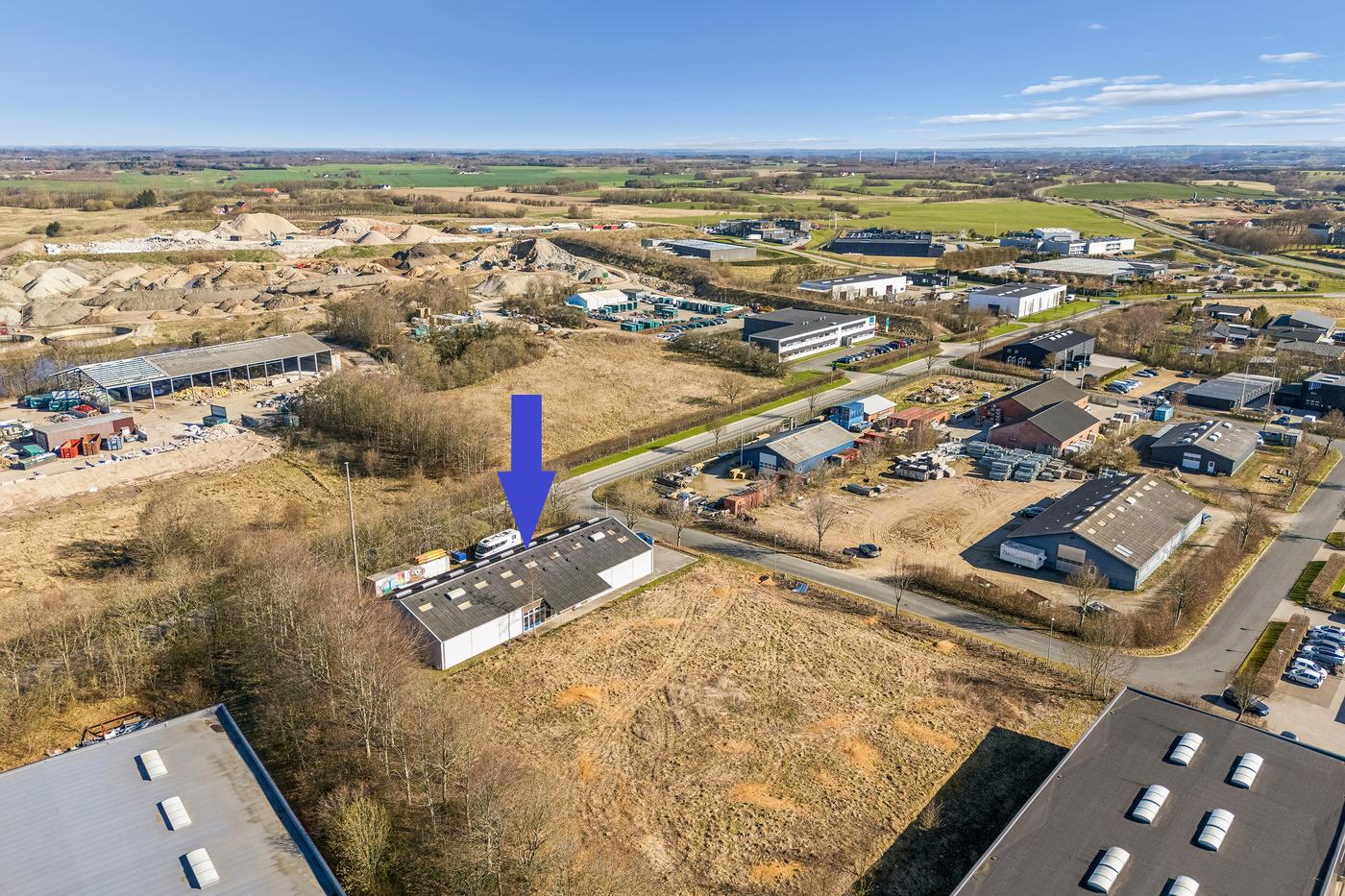 Motorvejstilkørsel mod Aarhus nås på 3 minutter, mens forbindelsen mod Herning ligger tilsvarende tæt — en afgørende fordel for virksomheder med regional eller landsdækkende aktivitet. Området huser en bred vifte af erhvervsdrivende som fx. Kingo, WILA, Birch, Leander, Levehuse, Korsbakkes Planteskole, Kjellerup VVS og Nordic Sense m.fl. som bidrager til et stærkt og levende erhvervsmiljø.