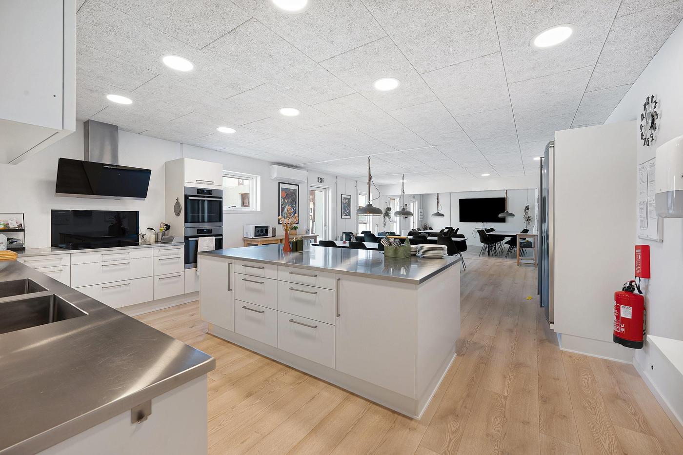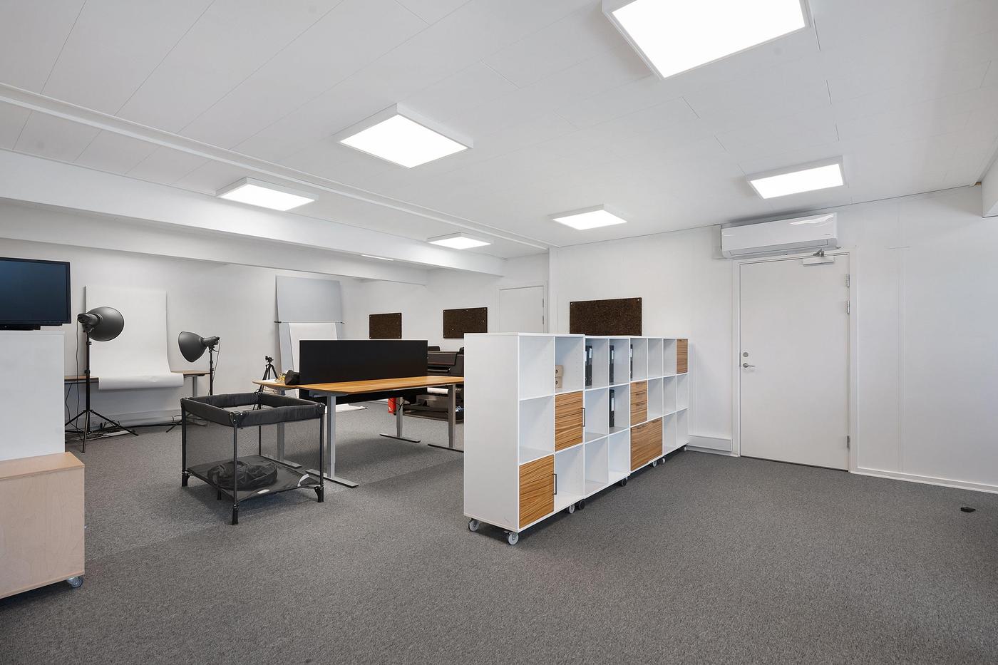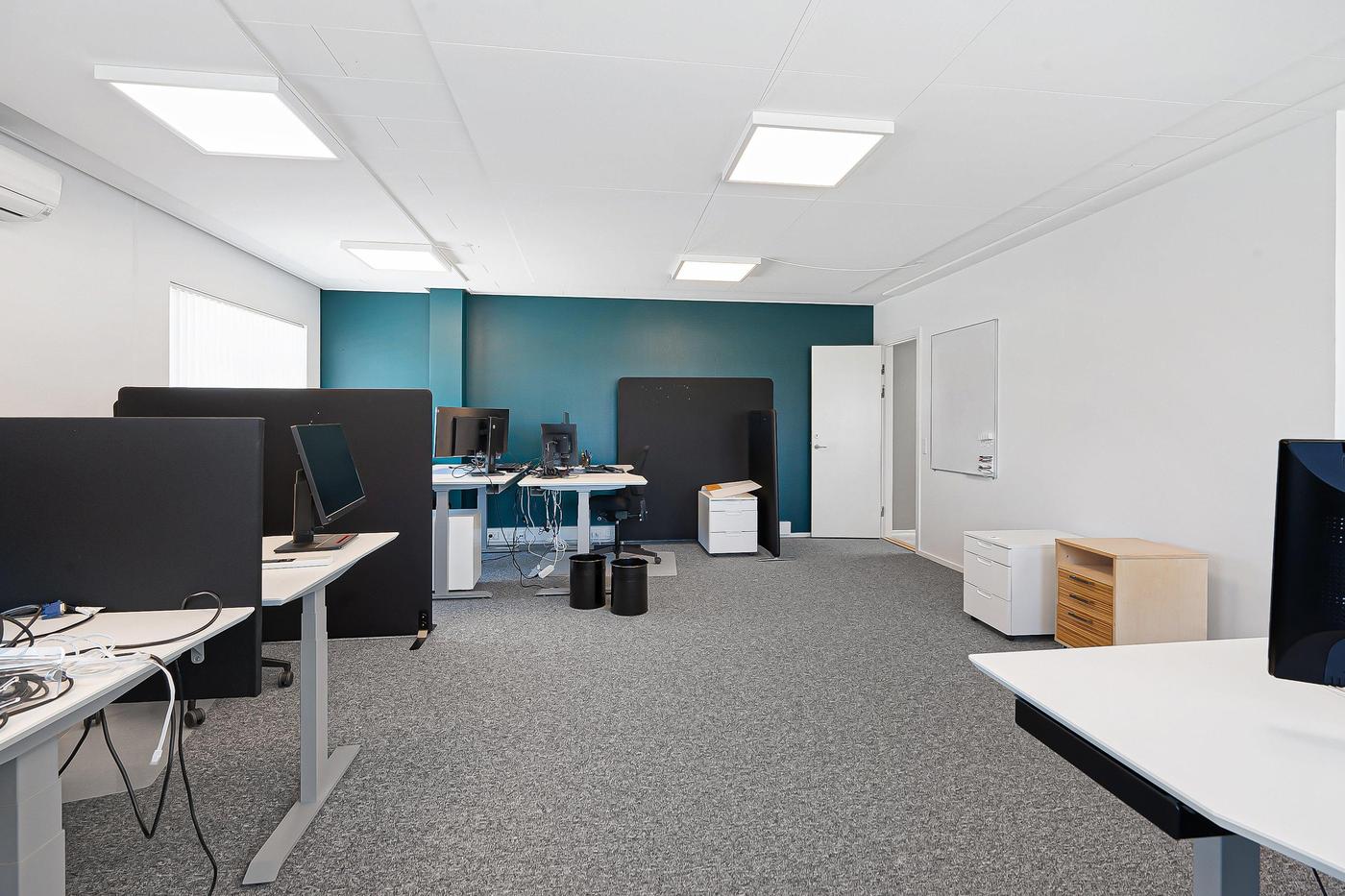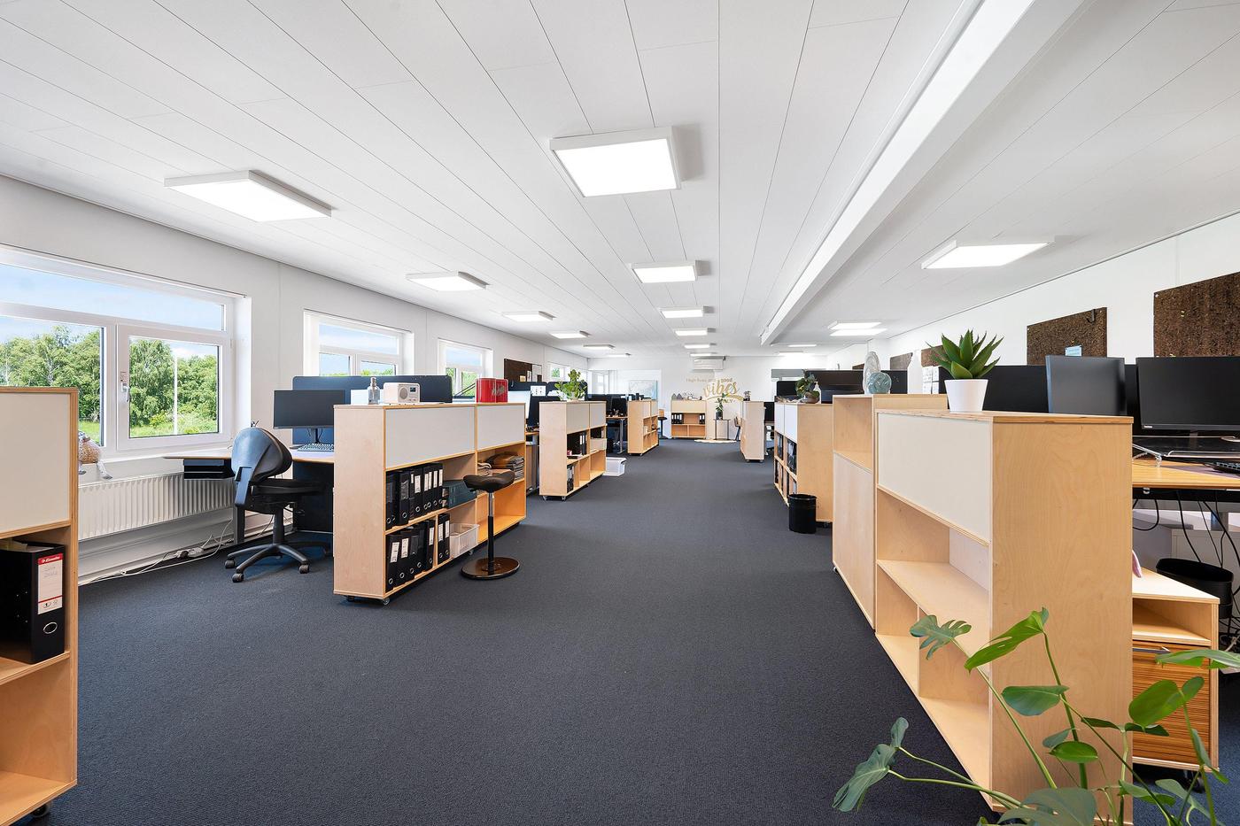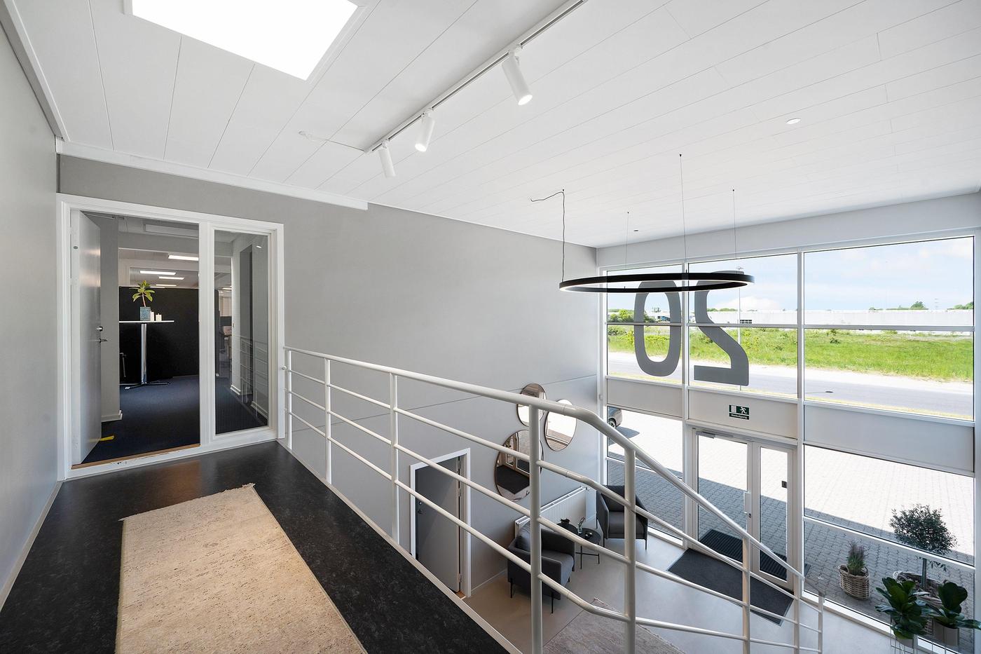 En større del af kontorlokalerne er i dag anvendt til showroom, som også sagtens vil kunne anvendes til kontor og mødelokaler. Anvendelsesmulighederne er således mange, og på mange måder ideel til handelsvirksomhed og webshop, eller en virksomhed som udvikler og tester egne produkter eller med lagersalg heraf. Kontorlokalerne er fordelt på to etager med the-køkken og toiletter på hvert plan, og der er således også gode muligheder for opdeling i flere afdelinger eller evt. fremleje.