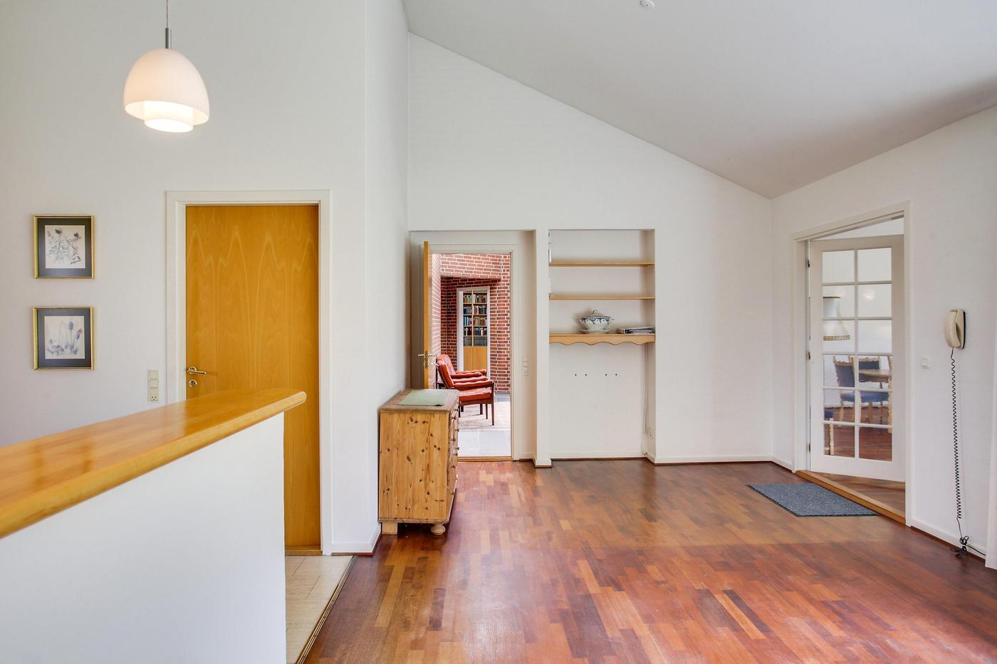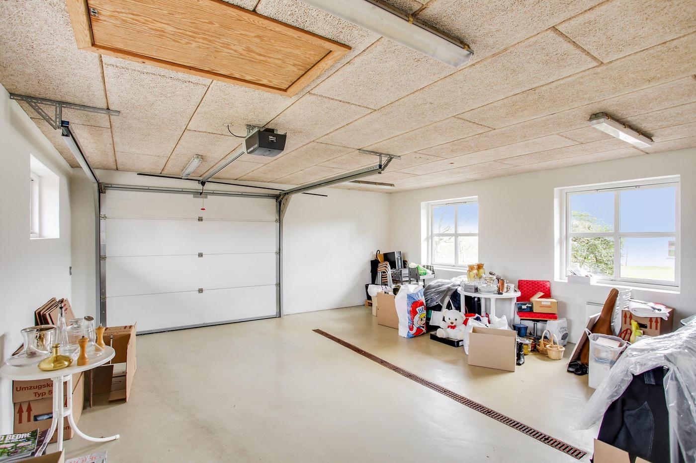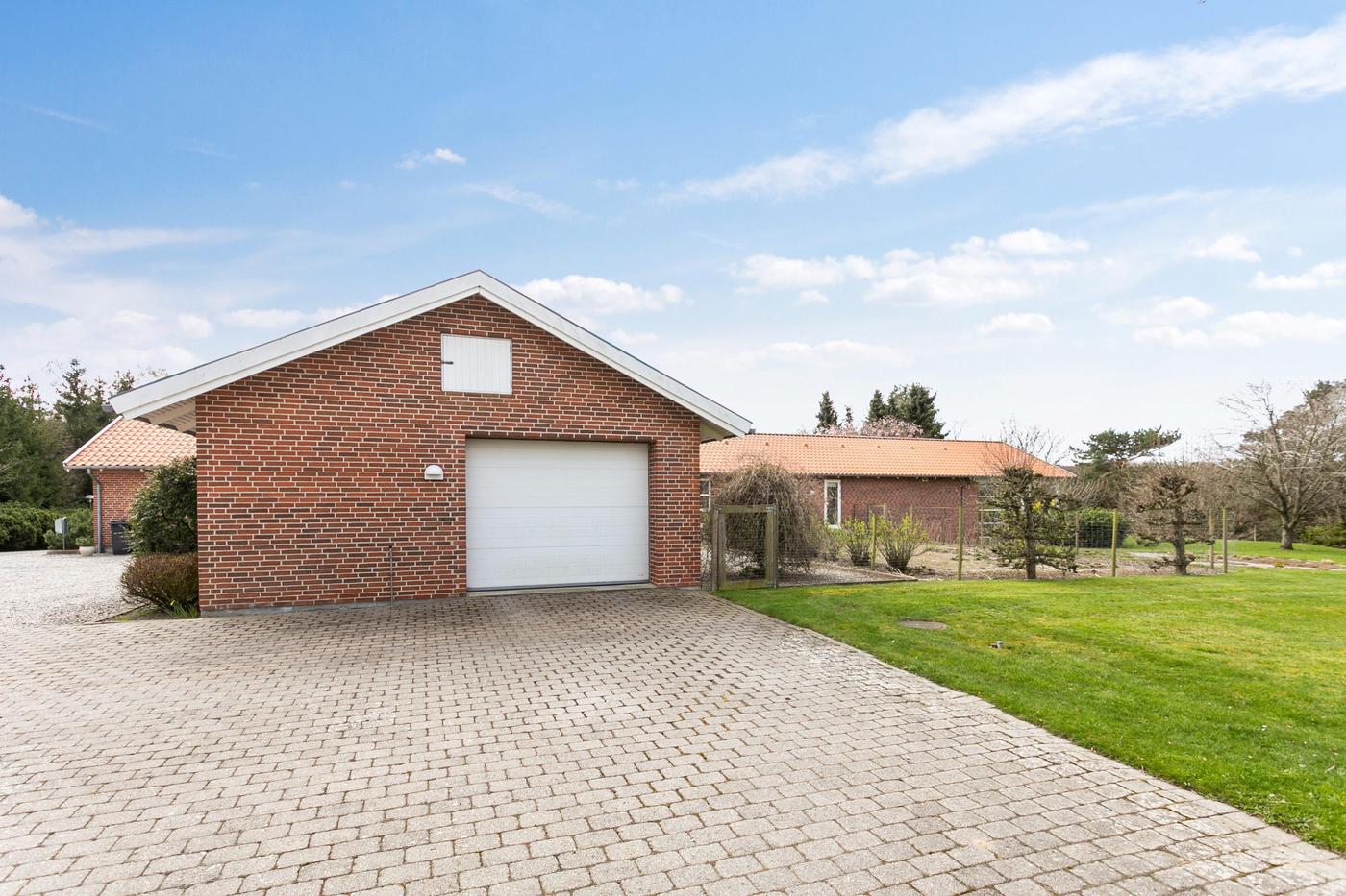 Erhvervsdelen består af hall, tre kontorrum, badeværelse, lager med elporte samt isoleret lager/opbevaring.